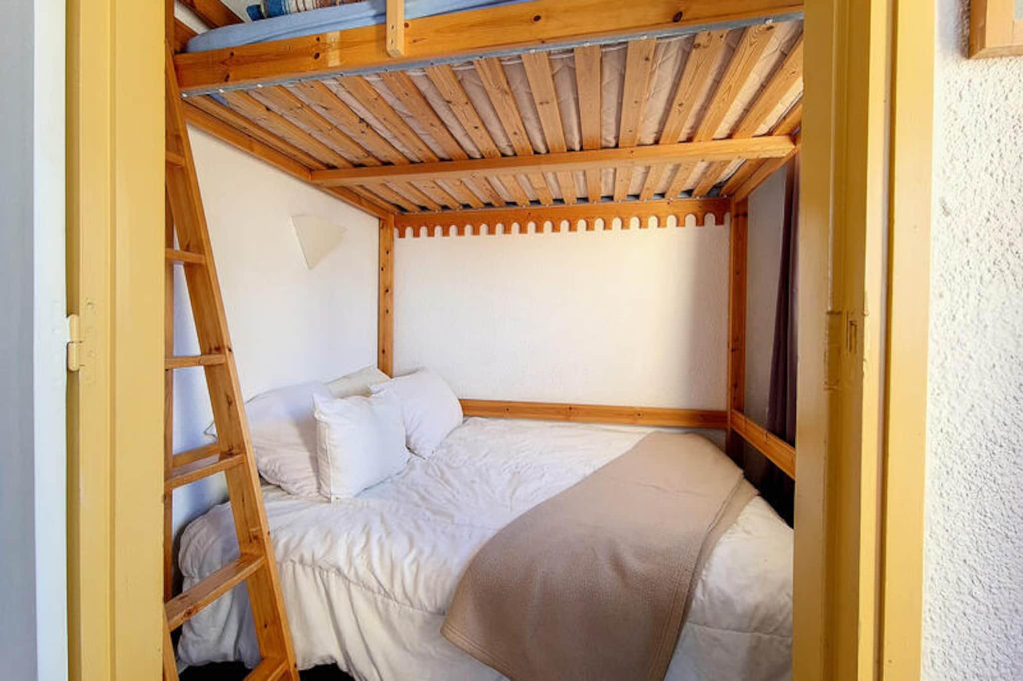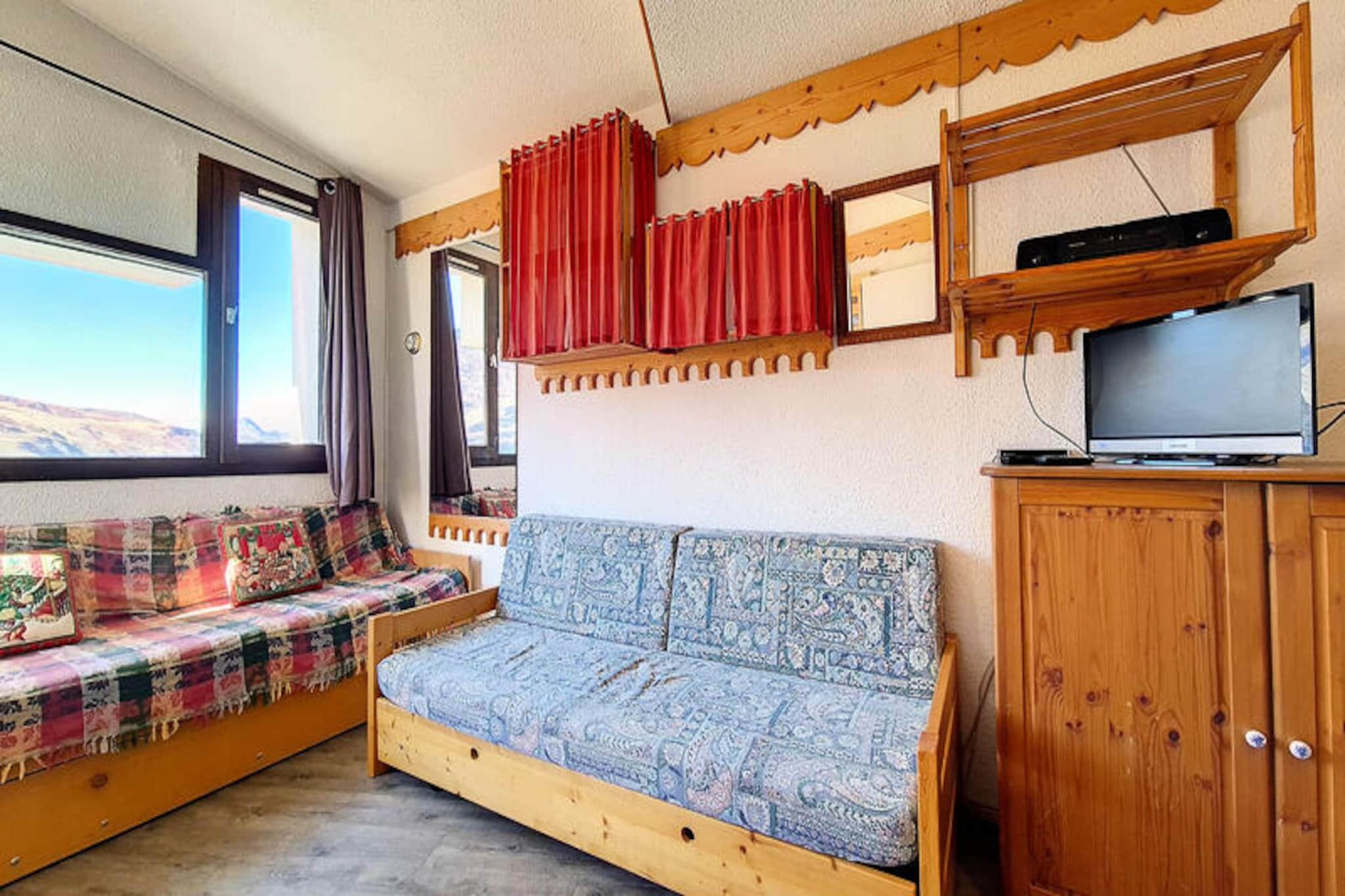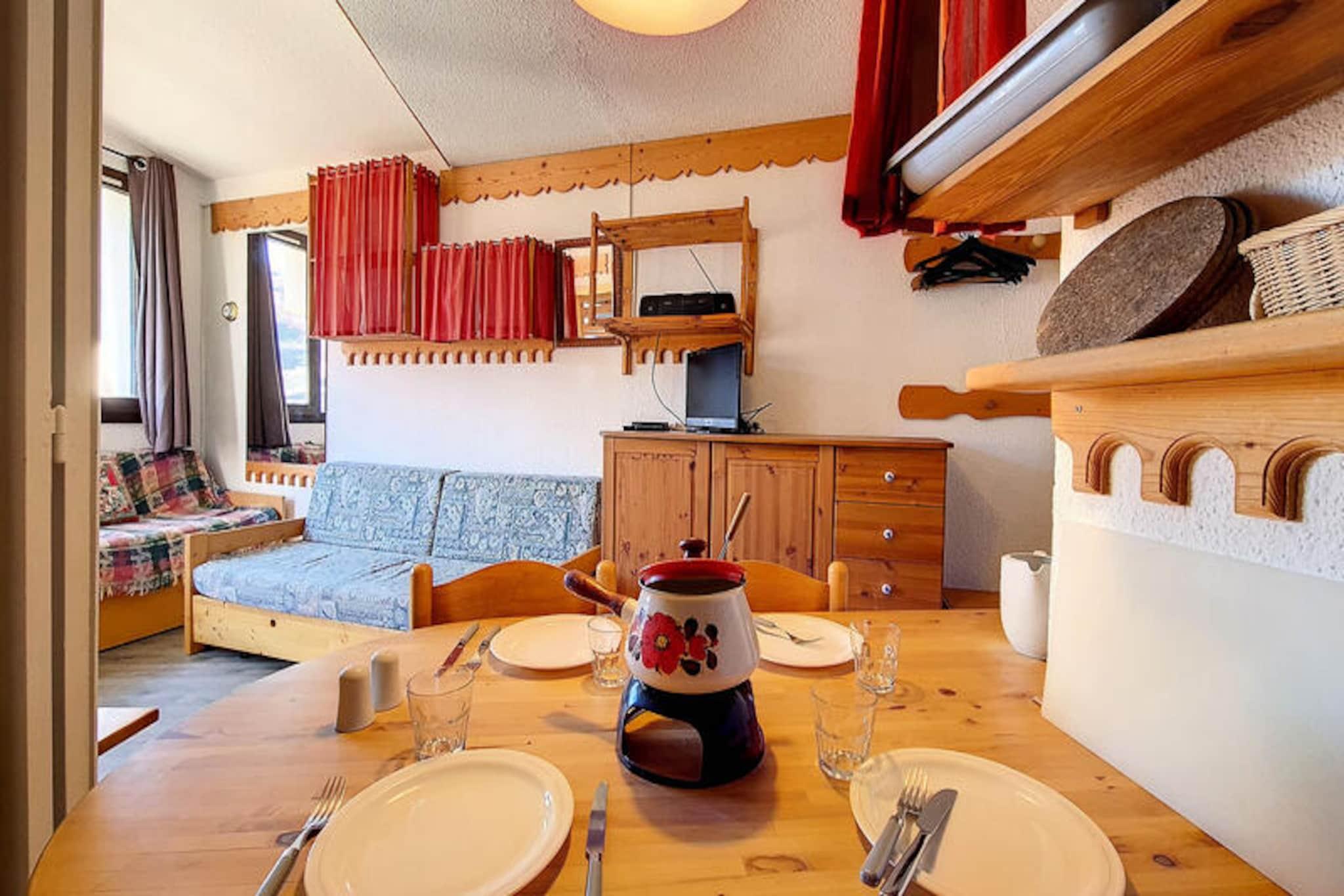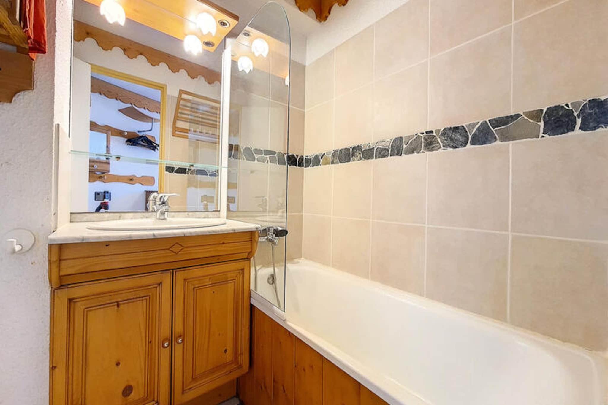 Højt over det charmerende Reberty 1850-distrikt tilbyder dette hyggelige alpine tilflugtssted en rolig oase for dem, der søger den perfekte blanding af komfort og bekvemmelighed. Forestil dig at vågne op til den bløde morgensol på din sydøstvendte balkon med betagende udsigt over de omkringliggende tinder og den friske bjergluft, der forfrisker dine sanser. Uanset om du er her for eventyr eller afslapning, er denne lejlighed din port til en uforglemmelig alpin oplevelse. \n\nDenne kompakte, men gennemtænkte lejlighed med to værelser er på 26 m² og har komfortabel plads til op til fire gæster. Stuen har en enkeltseng og en udtræksseng, mens det separate soveværelse tilbyder en hyggelig dobbeltseng til afslappende nætter. En flytbar skillevæg giver plads til rummet og sikrer privatliv og komfort. Det fuldt udstyrede køkken indeholder alt, hvad du behøver for at tilberede solide måltider efter en dag på pisterne, fra kogeplade og ovn til opvaskemaskine og mikrobølgeovn. Moderne detaljer som et fjernsyn og tæpper sikrer et behageligt ophold, mens ikke-rygerpolitikken og det kæledyrsfri miljø opretholder en ren og rolig atmosfære. \n\nBeliggende kun 250 meter fra pisterne tilbyder residensen nem adgang til skiløb i verdensklasse. Gratis parkering ved foden af ??bygningen og nærhed til butikker og en skiskole gør dette til et ideelt valg for både familier og par. Efter en dag med alpine eventyr kan du vende tilbage til varmen i din lejlighed for at slappe af og lade op. \n\nUanset om du er her for at grave dig gennem frisk puddersne eller blot nyde skønheden i de franske alper, lover denne lejlighed i Médian-residensen et mindeværdigt ophold. Book din ferie i dag, og lad magien fra Reberty 1850 fortrylle dig.