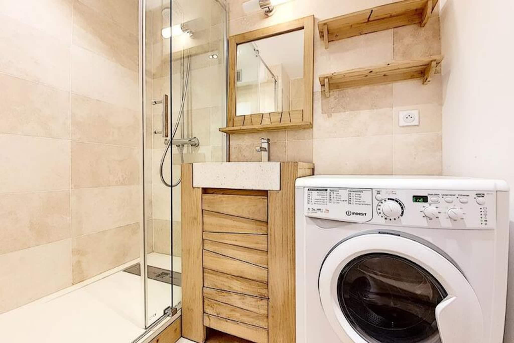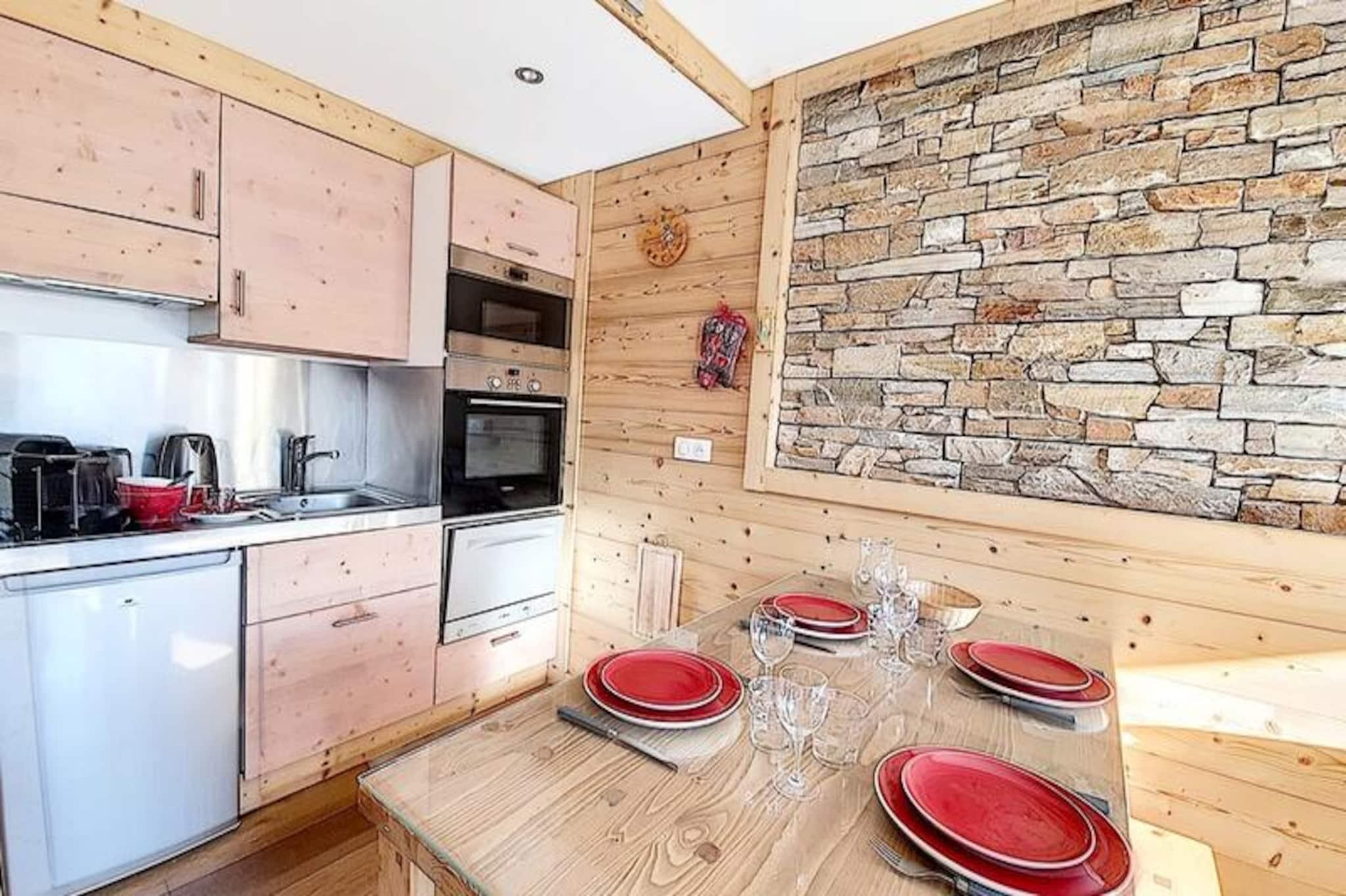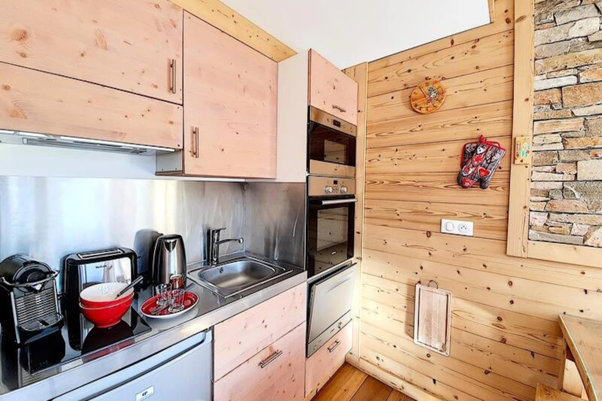 Højt over de travle gader i Les Menuires tilbyder denne charmerende lejlighed i Charmettes-bygningen et hyggeligt tilflugtssted for både skiløbere og bjergentusiaster. Med sin førsteklasses beliggenhed kun 50 meter fra pisterne kan du træde udenfor og fordybe dig i det sneklædte eventyrland i Les Trois Vallées, et af verdens største skisportssteder. Den sydvendte balkon tilbyder en fantastisk udsigt over pisterne og inviterer dig til at nyde den alpine skønhed med en kop kaffe i hånden, mens den nordvendte balkon har udsigt over det pulserende feriested og forbinder dig med dets livlige atmosfære. \n\nIndenfor er lejligheden blevet omhyggeligt renoveret for at kombinere moderne komfort med alpin charme. De 36 m² store rum er ideelt til op til fire gæster og har et soveværelse med en dobbeltseng og en alkove med to enkeltsenge. Stuen er et lyst og indbydende rum, perfekt til at slappe af efter en dag på pisterne. Det fuldt udstyrede køkken indeholder alt, hvad du behøver for at tilberede lækre måltider, fra ovn og mikrobølgeovn til opvaskemaskine og kaffemaskine. Et elegant brusebad med vaskemaskine tilføjer bekvemmelighed, mens elektrisk opvarmning sikrer varme på kølige aftener. Familier vil sætte pris på nærheden til børnepasnings- og snehaven, der ligger lige for foden af ??bygningen. Butiksarkaden La Croisette ligger kun 100 meter væk og byder på butikker, restauranter og afterski-muligheder. Med et busstoppested kun 50 meter fra boligen og busstationen en hurtig to minutters kørsel væk, er det nemt at udforske området. Uanset om du er her for spændende skieventyr eller rolige bjergture, er denne lejlighed din port til uforglemmelige øjeblikke i hjertet af Les Menuires. Lad den betagende udsigt og de praktiske faciliteter gøre din alpine ferie virkelig speciel.