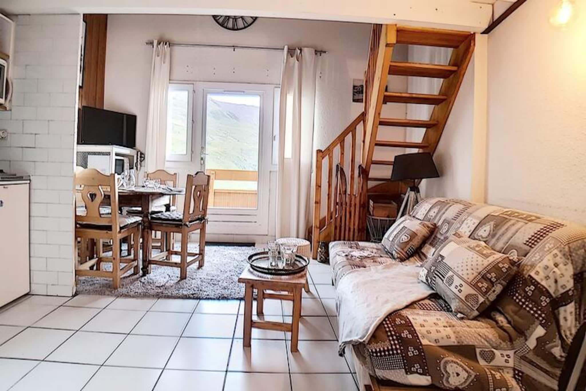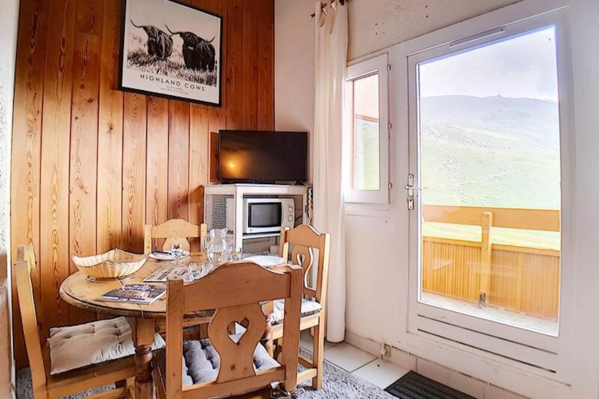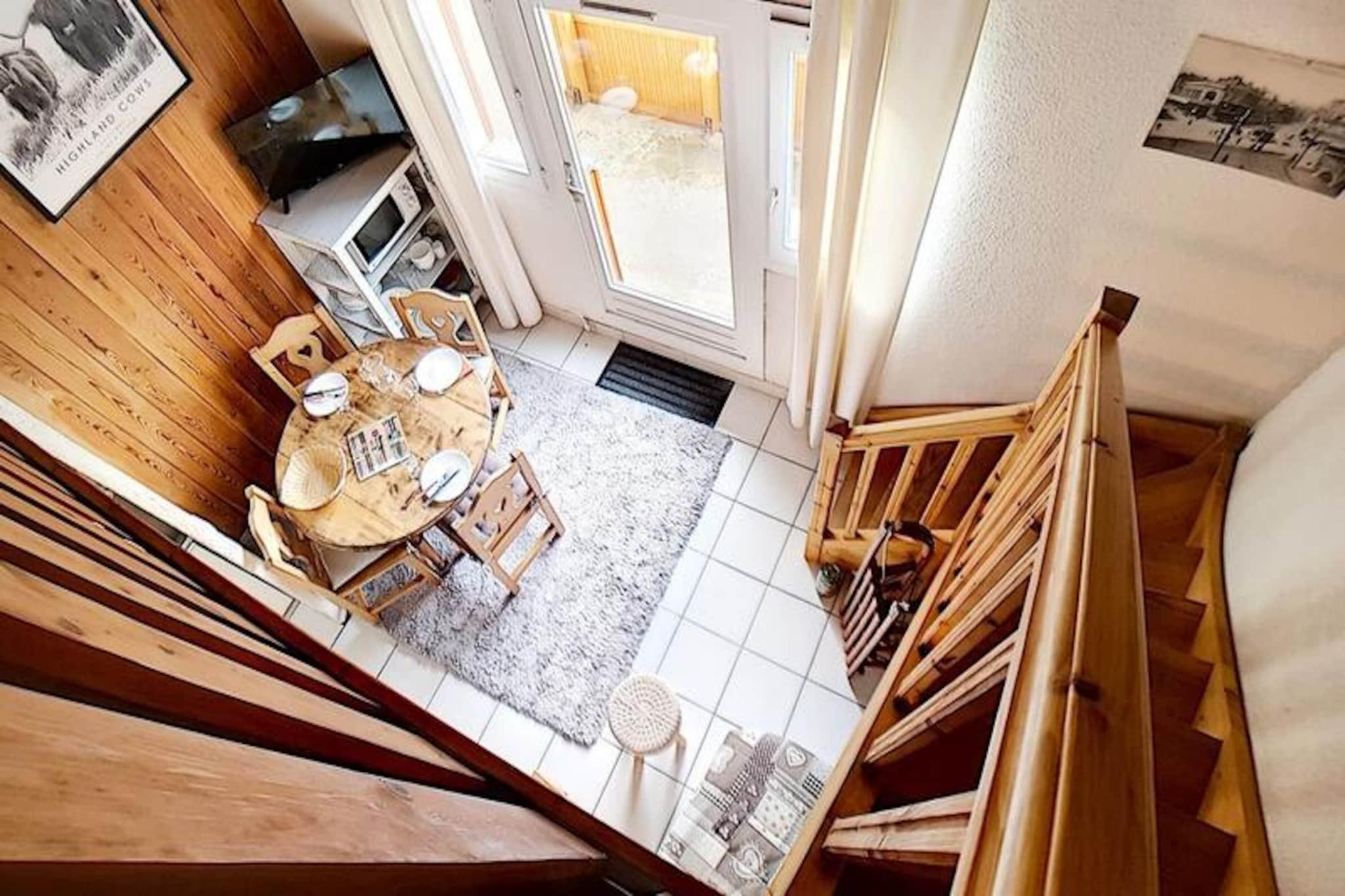 Hvor alpin charme møder moderne bekvemmeligheder, er denne hyggelige studiolejlighed i Carlines II-residensen perfekt beliggende i hjertet af Bruyères-distriktet. Med direkte adgang til ski-in/ski-out er det et ideelt tilflugtssted for dem, der søger ubesværede eventyr på pisterne. Med en vestvendt balkon kan gæsterne slappe af efter en dag på ski og nyde de gyldne nuancer af den nedgående sol over de sneklædte tinder. Selve residensen er udstyret med en elevator og et sikkert adgangssystem, der sikrer både komfort og ro i sindet under dit ophold. \n\nLejligheden er designet til at rumme op til fire gæster og har en mezzanin med skrånende loft med udsigt over opholdsstuen. Sovepladserne inkluderer en dobbelt sovesofa i stuen og to enkeltsenge på mezzaninen, hvilket gør den til et perfekt valg for par eller små familier. Det fuldt udstyrede køkken kan prale af moderne apparater såsom opvaskemaskine, elektrisk ovn, mikrobølgeovn og kaffemaskiner, så du nemt kan tilberede solide måltider. Badeværelset har et badekar til afslappende bad, mens et separat toilet øger bekvemmeligheden. Med flisebelagte og vinylgulve er rummet både praktisk og indbydende. \n\nDet pulserende Bruyères-distrikt tilbyder et væld af faciliteter kun få skridt fra din dør. Fra restauranter og butikker til en biograf, vandland, wellnesscenter, skiskole og endda en kælkebane er der noget for enhver smag. Familier vil sætte pris på den nærliggende legeplads, mens eventyrere kan udforske de naturskønne stier og pister. Om aftenen vågner distriktet til med afterski-aktiviteter, der skaber en livlig atmosfære til socialt samvær og afslapning. \n\nUanset om du er her for at kæmpe dig gennem uberørt sne eller blot sole dig i de franske alpers skønhed, er denne charmerende lejlighed den perfekte base for uforglemmelige minder. Med sin førsteklasses beliggenhed og gennemtænkte faciliteter er det et paradis for både afslapning og eventyr.