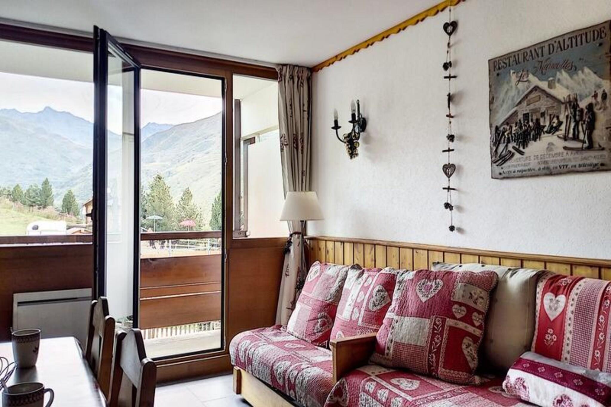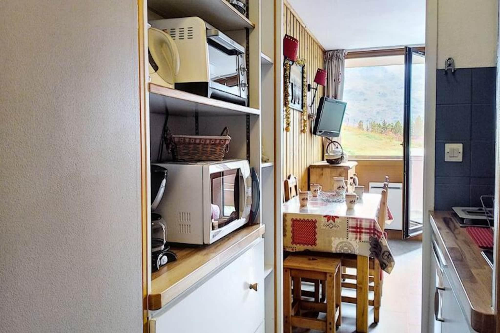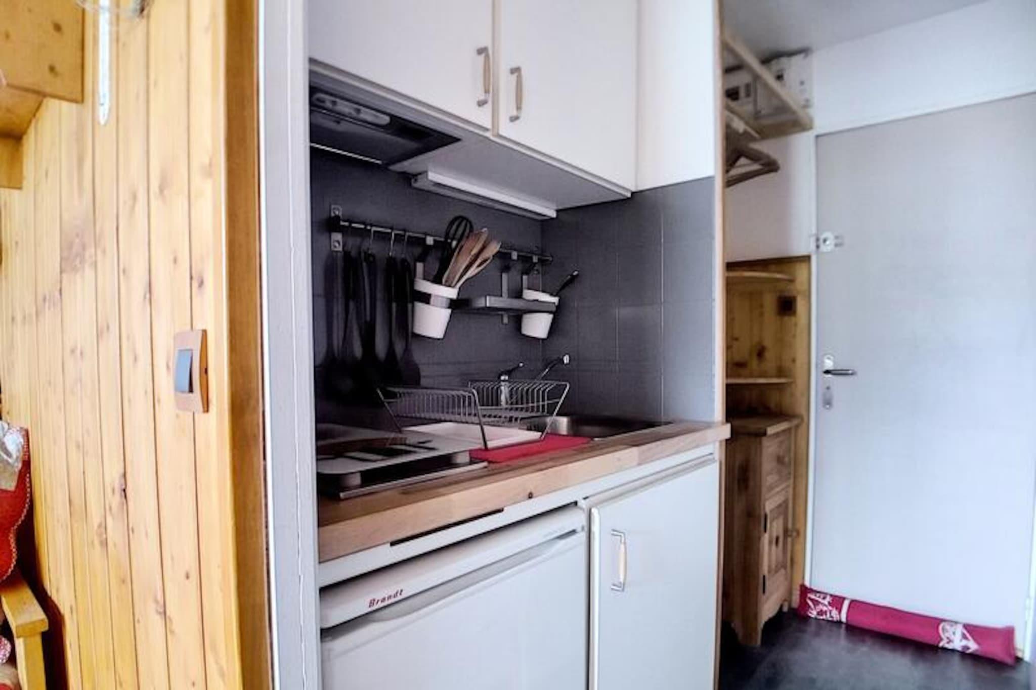 I hjertet af det livlige La Croisette-område tilbyder denne charmerende studiolejlighed det perfekte alpine tilflugtssted for par eller små grupper. Beliggende kun 50 meter fra pisterne og 100 meter fra den travle shoppingarkade, vil du være i centrum for al aktiviteten, mens du stadig nyder en fredelig og hyggelig oase. Den sydvendte balkon inviterer dig til at nyde bjergsolen og den fredfyldte udsigt efter en dag med eventyr i sneen. Med børnepasning og snehave bekvemt placeret ved foden af ??bygningen, er denne bolig ideel for familier, der søger både komfort og tilgængelighed. Dette 18 m² store studio blev renoveret i 2010 og er omhyggeligt designet til at maksimere plads og komfort. Opholdsstuen har en sovesofa og en enkeltseng, der komfortabelt rummer op til tre gæster. Et fladskærms-tv sørger for underholdning til hyggelige aftener derhjemme, mens det fuldt udstyrede køkken inkluderer moderne faciliteter som opvaskemaskine, vaskemaskine og mikrobølgeovn, hvilket sikrer et problemfrit ophold. Badeværelset, komplet med badekar, tilføjer et ekstra strejf af afslapning. Lejligheden er tæppebelagt overalt, hvilket skaber en varm og indbydende atmosfære. Charmettes-bygningen tilbyder praktiske faciliteter såsom skibokse i kælderen og elevator til anden sal. Med et busstoppested kun 50 meter væk og busstationen kun 2 minutters kørsel væk, er det nemt at udforske det bredere område. Under dit ophold kan du nyde bekvemmeligheden ved betalt Wi-Fi (afhængigt af dækning) og elektrisk opvarmning for at holde dig varm. Bemærk venligst, at kæledyr ikke er tilladt, og lejligheden er røgfri. Uanset om du er her for at klatre gennem uberørte skråninger, udforske den charmerende landsby eller blot slappe af i den friske bjergluft, tilbyder denne studiolejlighed en indbydende base for din alpine ferie. Med en vurdering på 3 Guldsnefnug lover den en dejlig blanding af komfort, bekvemmelighed og charme.