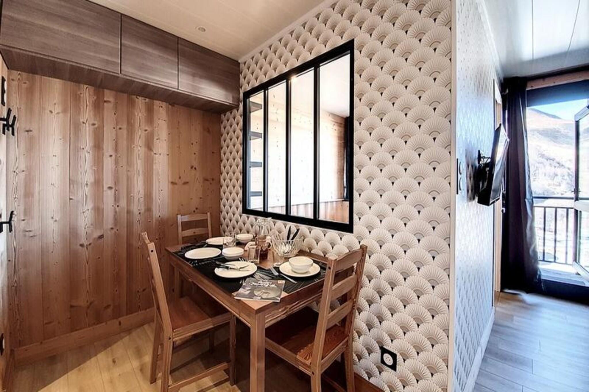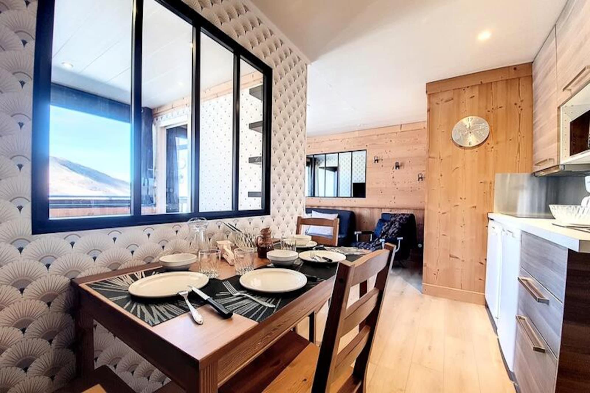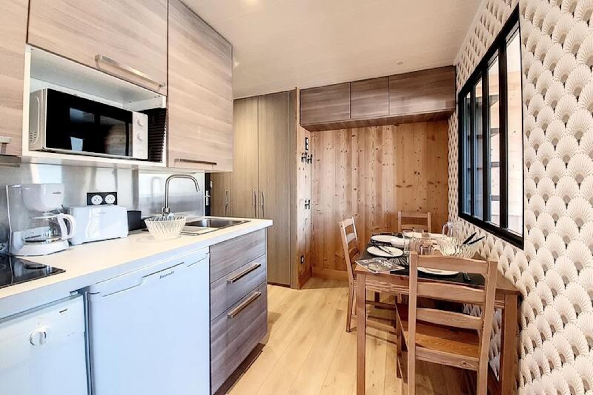 I det fredfyldte Fontanettes-kvarter, hvor alpin ro og moderne bekvemmeligheder mødes, inviterer denne smukt renoverede lejlighed i chalet-stil dig til at opleve magien i de franske Alper. Med sin vestvendte altan, der tilbyder en betagende udsigt over det omkringliggende bjerglandskab, føles hvert øjeblik her som et postkort, der er kommet til live. Uanset om du nyder din morgenkaffe eller slapper af efter en dag på pisterne, vil Alpernes naturlige skønhed være din konstante ledsager. Denne hyggelige lejlighed på 25 m² er omhyggeligt designet til op til fire gæster og blander rustik charme med moderne komfort. Stuen har en komfortabel dobbelt sovesofa og et fladskærms-tv, mens det separate soveværelse har en luksuriøs dobbeltseng med en fantastisk udsigt over bjergene. Det fuldt udstyrede køkken har moderne apparater såsom opvaskemaskine, mikroovn og kaffemaskine, så du har alt, hvad du behøver for at tilberede solide måltider. Et badeværelse med badekar, separat toilet og laminatgulve overalt bidrager til bekvemmeligheden og komforten under dit ophold. Ekstra faciliteter som et skiskab med elektrisk støvletørrer og en privat udendørs parkeringsplads gør denne lejlighed til et praktisk valg for din alpine ferie. Fontanettes-kvarteret er et fredeligt tilflugtssted, men tilbyder alligevel nem adgang til de livlige kvarterer La Croisette og Bruyères via gratis shuttlebus eller en malerisk 10-15 minutters gåtur langs en gangsti. I nærheden finder du en skibutik, et bageri og en restaurant, så alle dine behov kan dækkes på få minutter. Uanset om du er her for at suse ned ad de uberørte pister eller blot nyde den alpine atmosfære, tilbyder denne beliggenhed den perfekte balance mellem ro og tilgængelighed. Vælg dette charmerende fristed til din næste bjergferie og skab uforglemmelige minder omgivet af den majestætiske skønhed i de franske alper. Med sin idylliske beliggenhed, moderne faciliteter og varme chalet-atmosfære lover denne lejlighed en ferieoplevelse som ingen anden.