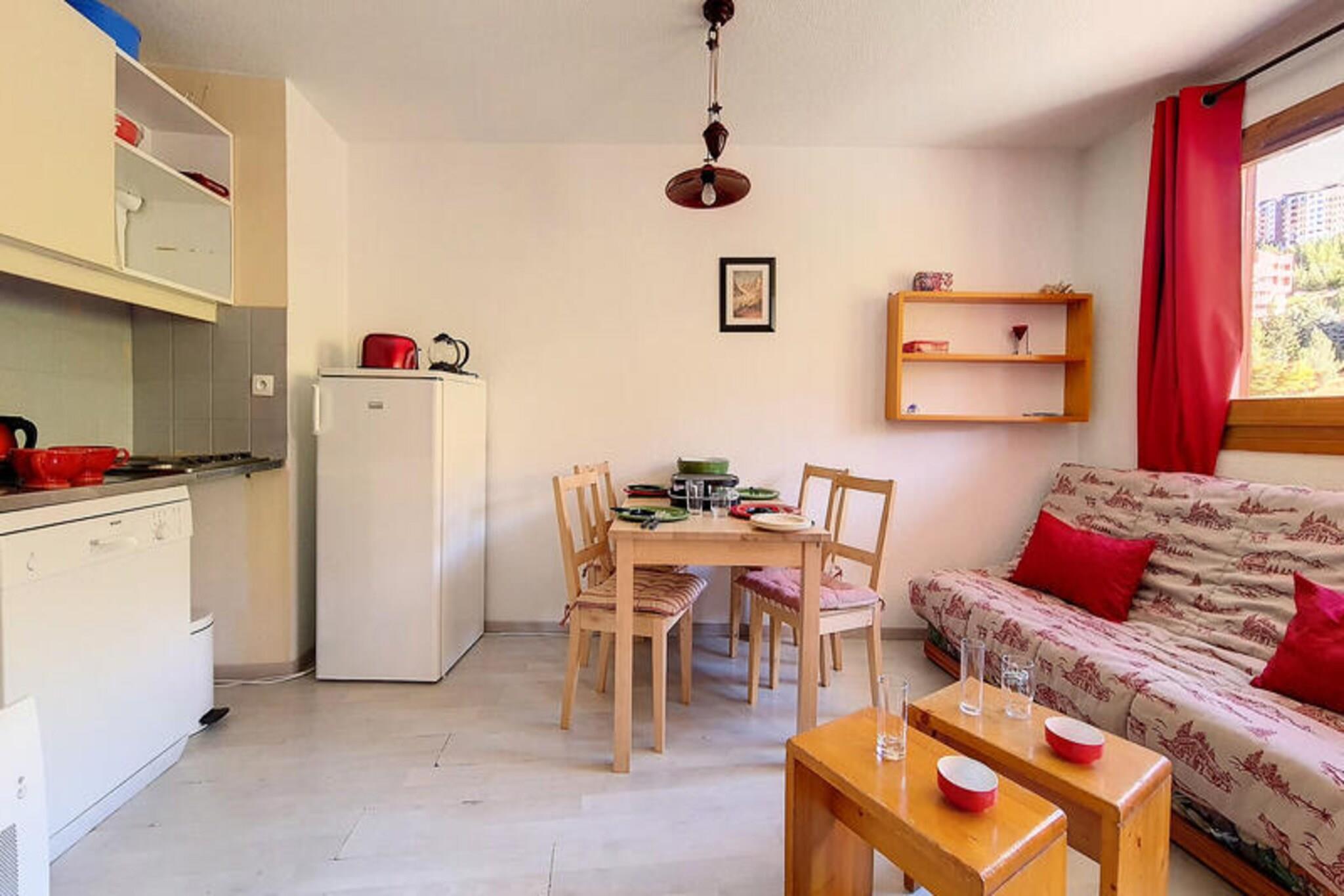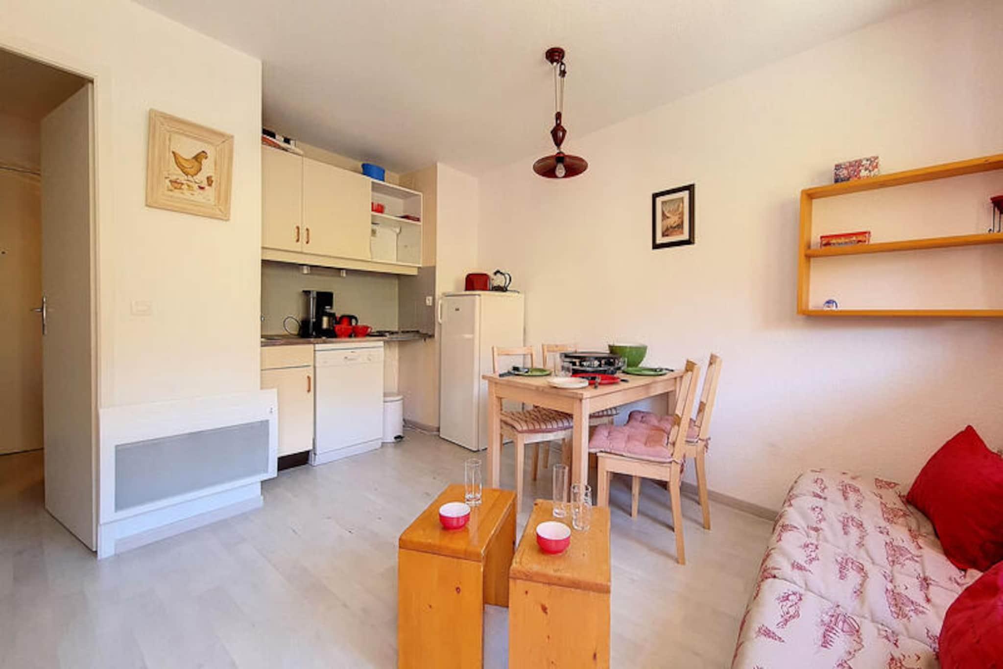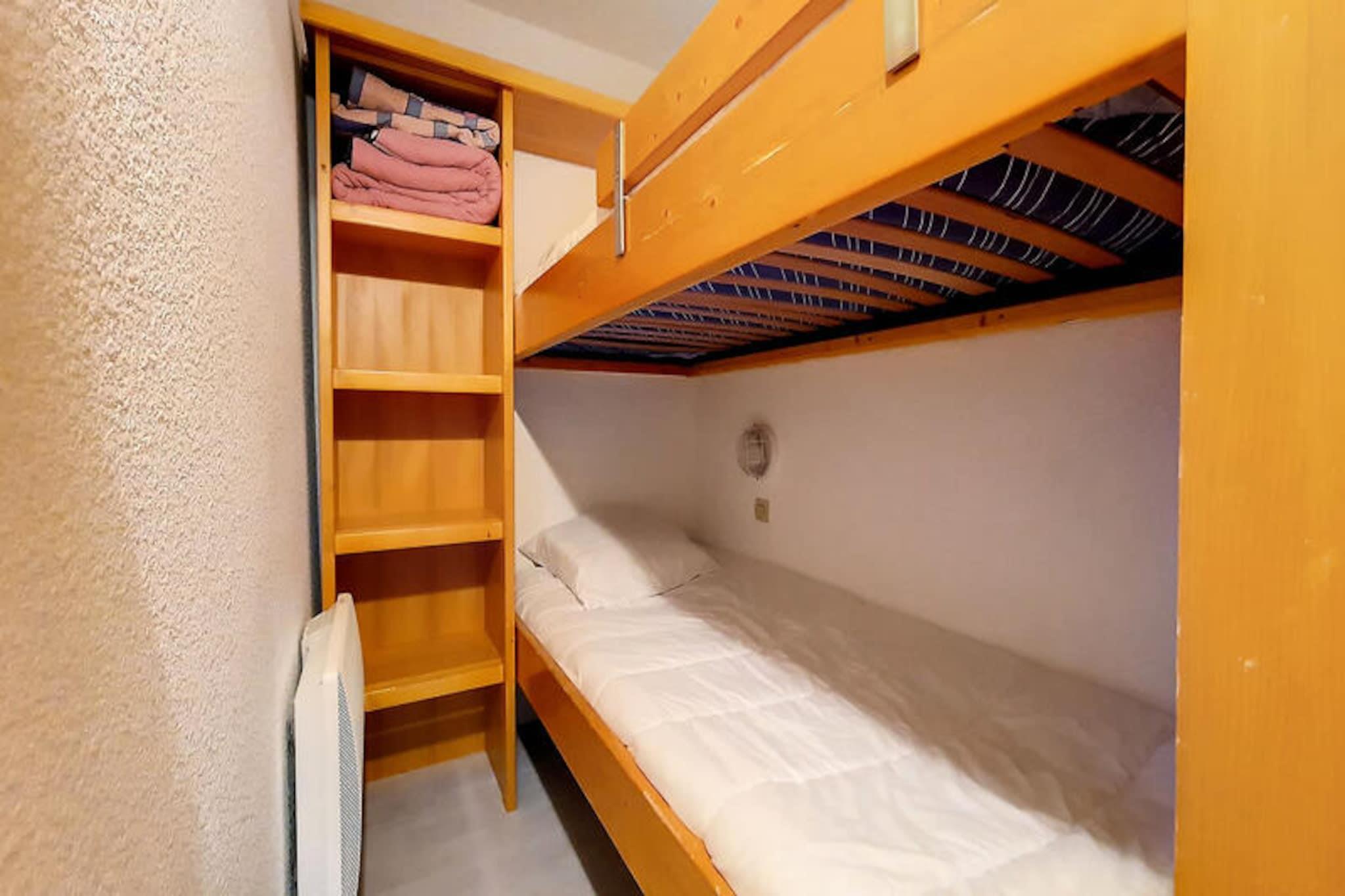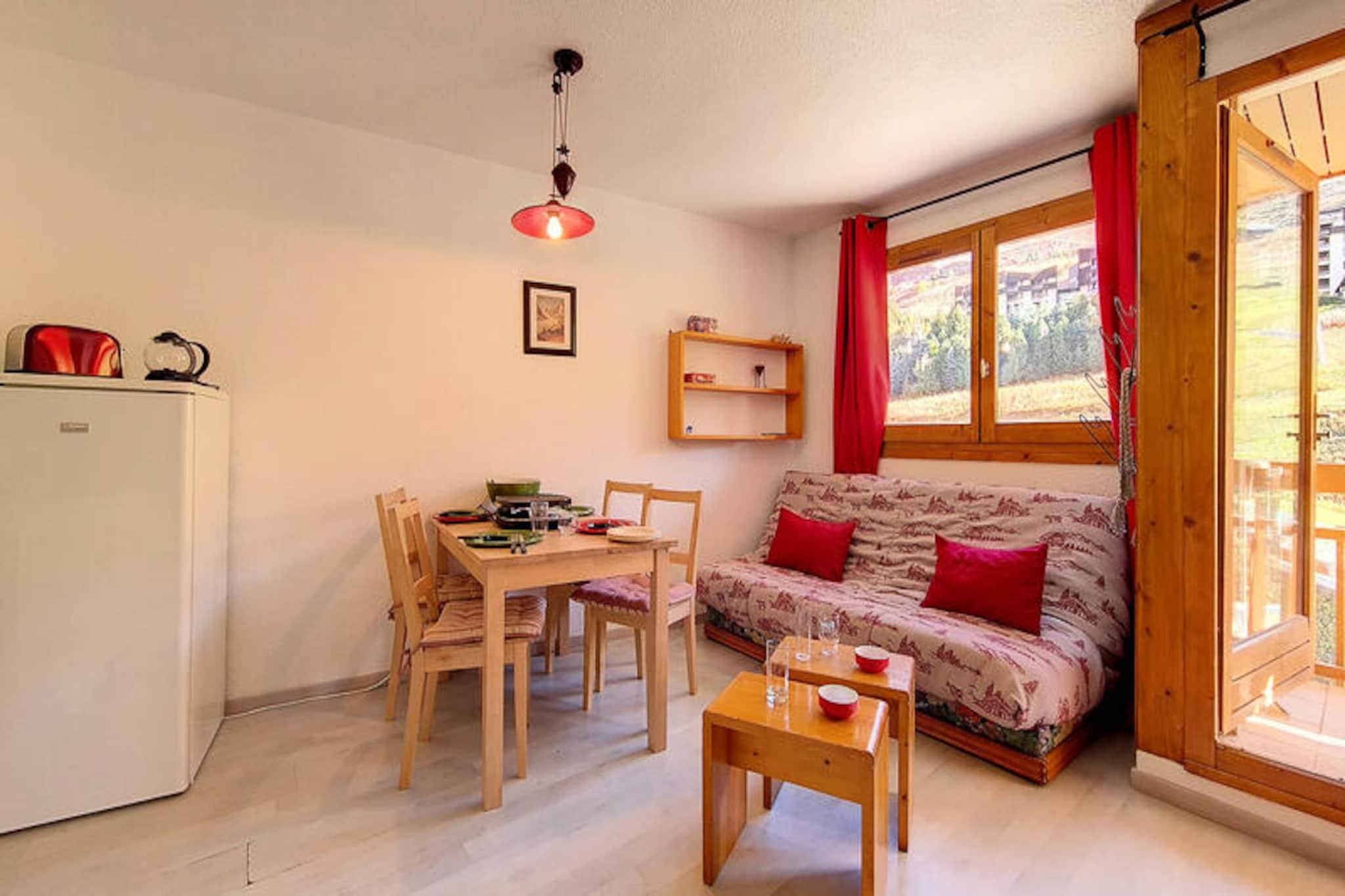 Højt over det charmerende Bruyères-distrikt tilbyder dette hyggelige alpine tilflugtssted en plads på første række til de sneklædte vidundere i Les Menuires. Forestil dig at vågne op til den friske bjergluft og træde direkte ud på pisterne takket være dens uovertrufne ski-in/ski-out-beliggenhed. Carlines II-residensen placerer dig i hjertet af en pulserende landsbyatmosfære, hvor magien i de franske alper kommer til live. Fra din østvendte balkon på 5. sal kan du nyde morgenlyset, mens det danser hen over de snedækkede tinder og sætter den perfekte tone for en dag med eventyr. Denne gennemtænkt designede 2-værelses lejlighed på 30 m² har komfortabel plads til op til fem gæster. Opholdsstuen er et hyggeligt fristed at slappe af med et fjernsyn til rolige aftener. Soveværelset har en dobbeltseng og en enkelt køjeseng, mens en ekstra alkove ved indgangen har yderligere to køjesenge, hvilket gør den ideel til familier eller små grupper. Det fuldt udstyrede køkken inkluderer et 3-blus kogeplade, køleskab, kombineret ovn/mikrobølgeovn, opvaskemaskine og alt det nødvendige for at tilberede solide alpemåltider. Et badeværelse med badekar og et separat toilet bidrager til bekvemmeligheden og sikrer et behageligt ophold. Bemærk venligst, at dette er en ikke-ryger, kæledyrsfri lejlighed udstyret med dyner for ekstra varme. Træd udenfor, og du vil finde dig selv fordybet i det livlige Bruyères-distrikt, hjemsted for en række restauranter, butikker og underholdningsmuligheder. Uanset om det er et afslappende besøg i wellnesscentret, en spændende tur ned ad kælkebanen eller en familietur til legepladsen, er der noget for enhver smag. Den nærliggende skiskole og vandland gør det til en perfekt destination for både begyndere og erfarne eventyrere. Efter en dag på pisterne kan du nyde en film i biografen eller forkæle dig selv med lokalt Savoyard-køkken på en af ??de nærliggende spisesteder. Med sin førsteklasses beliggenhed, moderne faciliteter og charmen ved skiområdet Les Trois Vallées lige uden for døren er denne lejlighed din port til en uforglemmelig alpin flugt. Uanset om du er her for spændingen ved skiløb eller charmen ved livet i en bjerglandsby, lover Carlines II et ophold fyldt med komfort, bekvemmelighed og betagende udsigt.