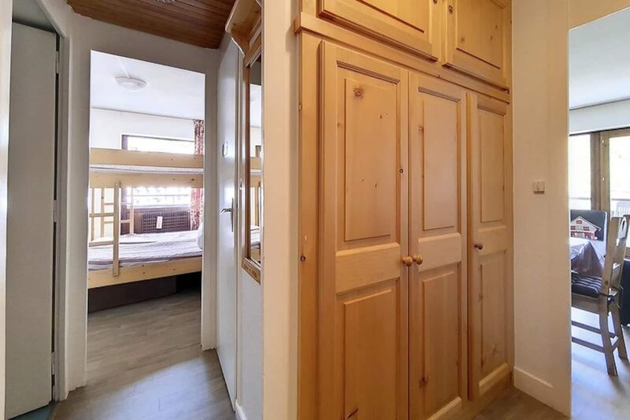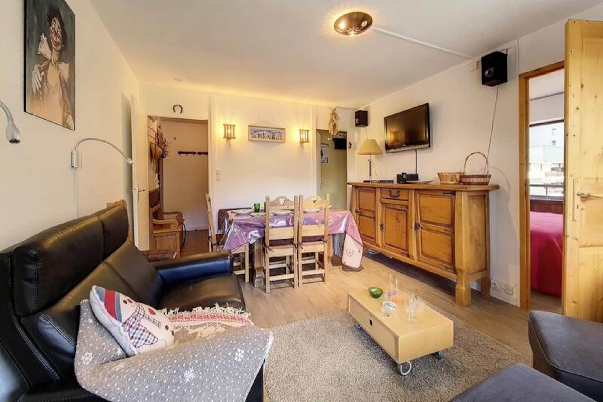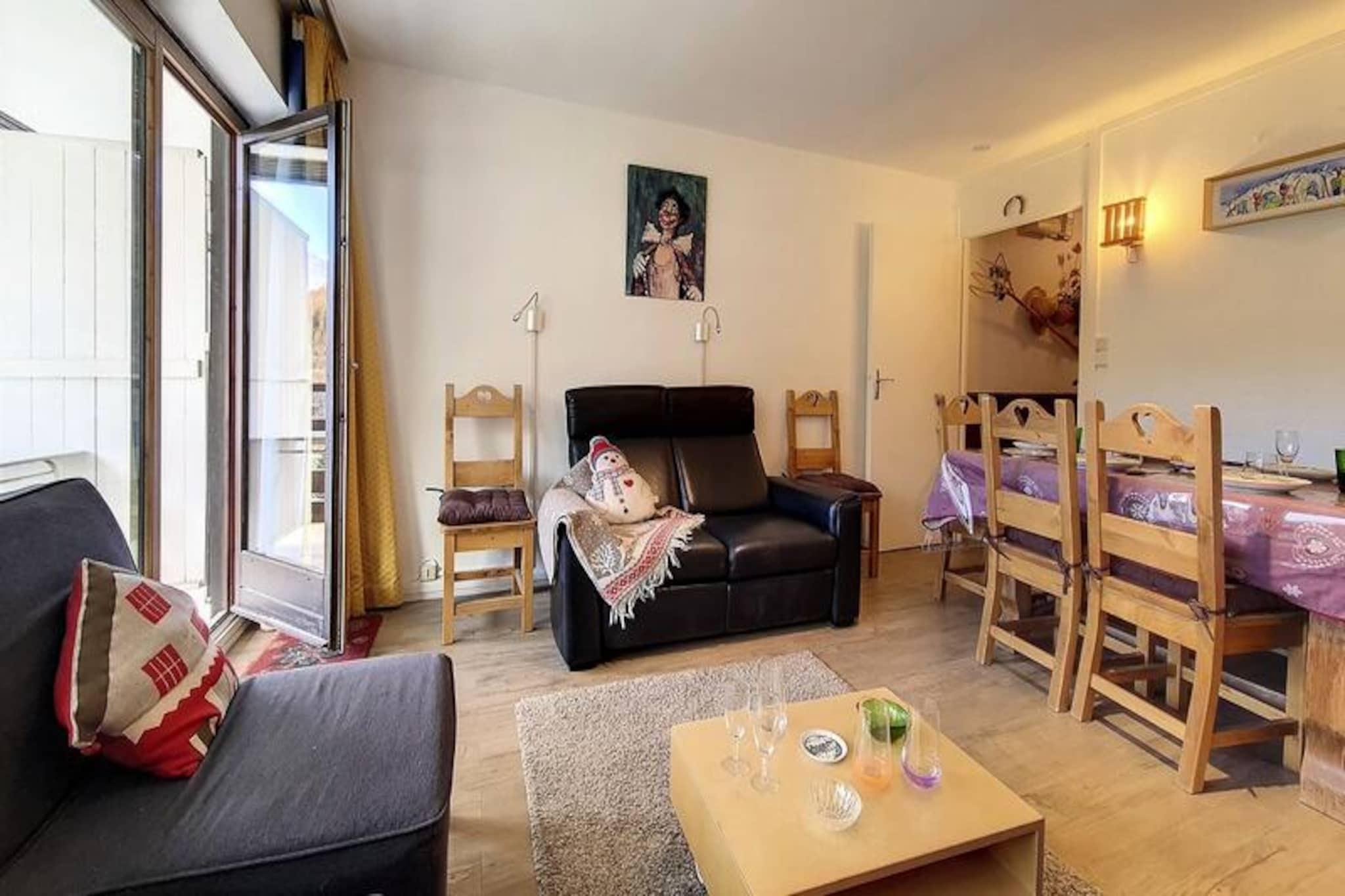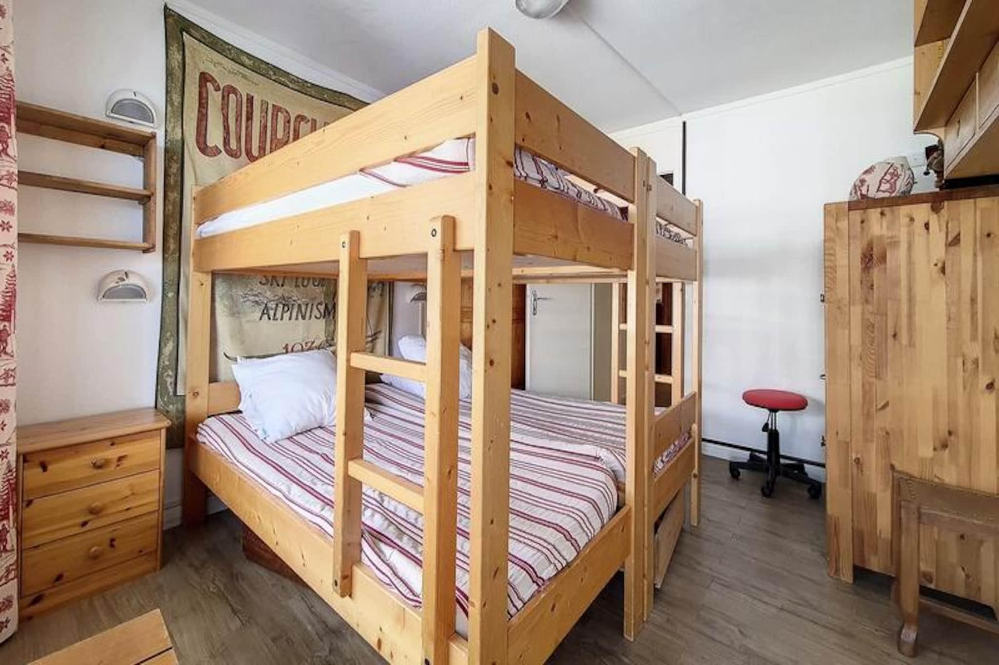 Højt over det travle La Croisette-distrikt inviterer denne charmerende lejlighed på øverste etage dig til at opleve magien i de franske alper. Badet i sollys fra sin rummelige sydøstvendte hjørnebalkon tilbyder den en betagende udsigt over de omkringliggende tinder og skråninger. Uanset om du er her for vintereventyr eller sommerferier, lover den rolige atmosfære i denne bolig et mindeværdigt ophold. Træd ud af bygningen og find dig selv direkte ved indkøbscenteret, med alt hvad du behøver kun få øjeblikke væk. Pisterne er lige uden for døren, hvilket gør det til et ideelt valg for skientusiaster, der søger bekvemmelighed og komfort. \n\nIndenfor kan lejligheden prale af en hyggelig, men funktionel indretning, perfekt til familier eller grupper på op til seks personer. Stuen, udstyret med et fladskærms-tv, tilbyder et indbydende sted at slappe af efter en dag med udforskning. Soveværelset har en komfortabel dobbeltseng, mens det andet soveværelse har to sæt køjesenge, hvilket gør det ideelt til børn eller venner, der rejser sammen. Det separate køkken er fuldt udstyret med moderne apparater, herunder køleskab, ovn, mikrobølgeovn, opvaskemaskine og kaffemaskine, hvilket sikrer, at du har alt det nødvendige for at tilberede solide måltider. Et brusebad og separat toilet bidrager til bekvemmeligheden, mens PVC- og flisebelagte gulve overalt skaber et rent og praktisk miljø.\n\nResidensens beliggenhed er uovertruffen. Der er gratis udendørs parkering lige over for bygningen, og børnehaven ligger en kort gåtur på 300 meter væk. For dem, der søger internetforbindelse, er der betalt Wi-Fi-adgang tilgængelig, afhængigt af netværksdækning. Ud over de umiddelbare faciliteter tilbyder La Croisette-distriktet en livlig atmosfære med butikker, restauranter og afterski-muligheder for at forbedre dit ophold.\n\nUanset om du er her for at grave dig gennem uberørt sne eller udforske alpine stier under sommersolen, kombinerer denne lejlighed komfort, praktisk anvendelighed og en uovertruffen beliggenhed for at skabe den perfekte base for dine bjergeventyr. Lad Alpernes skønhed inspirere din næste uforglemmelige ferie.