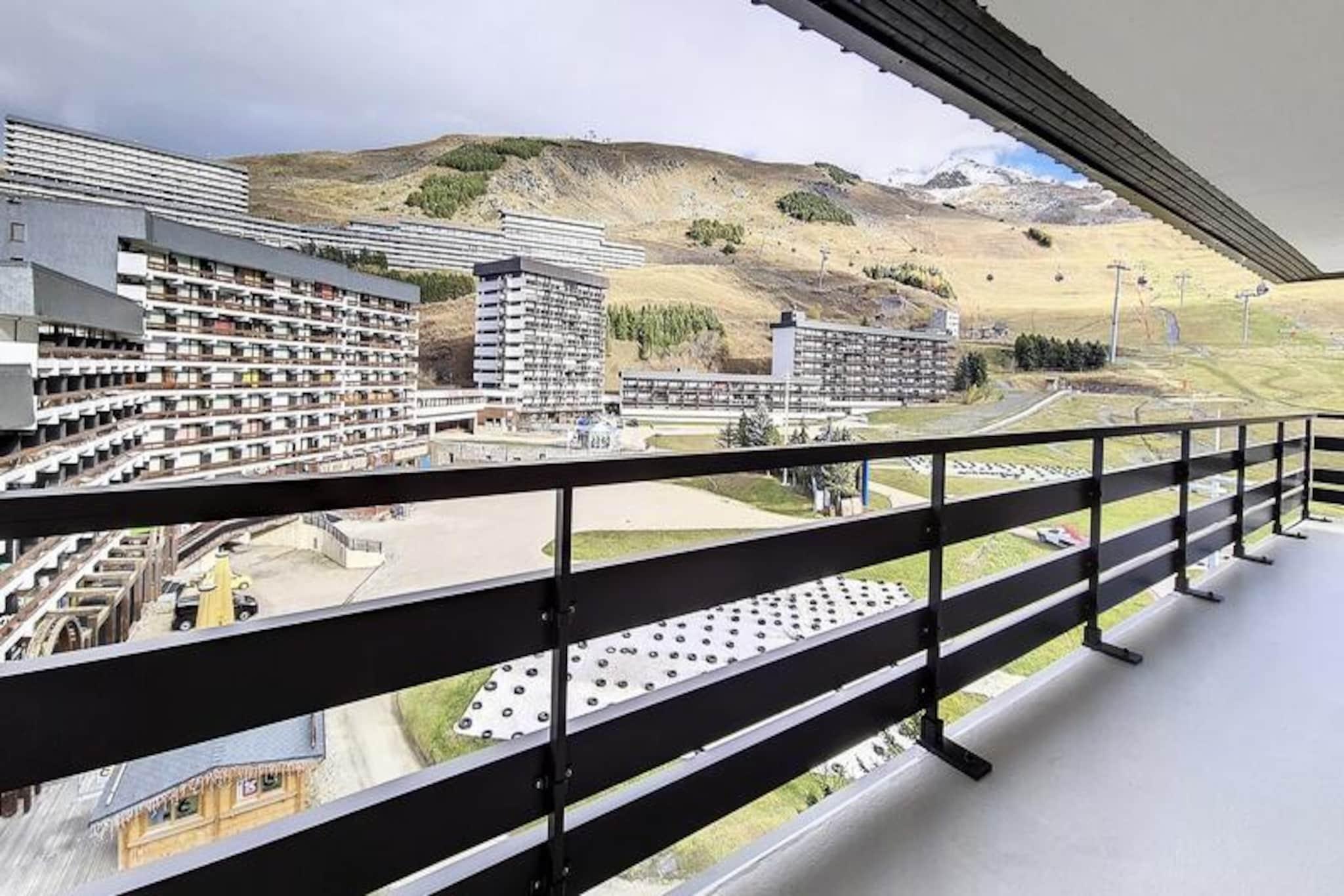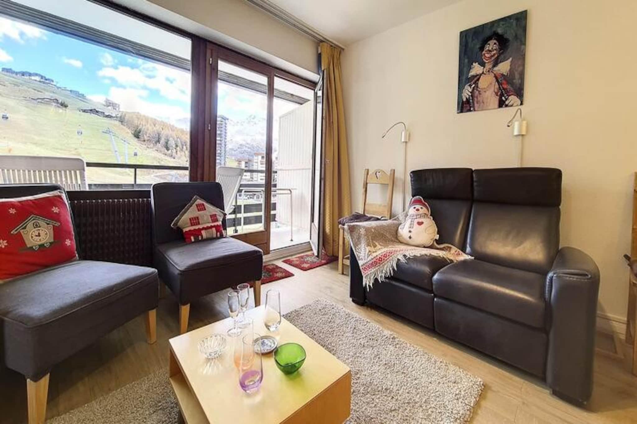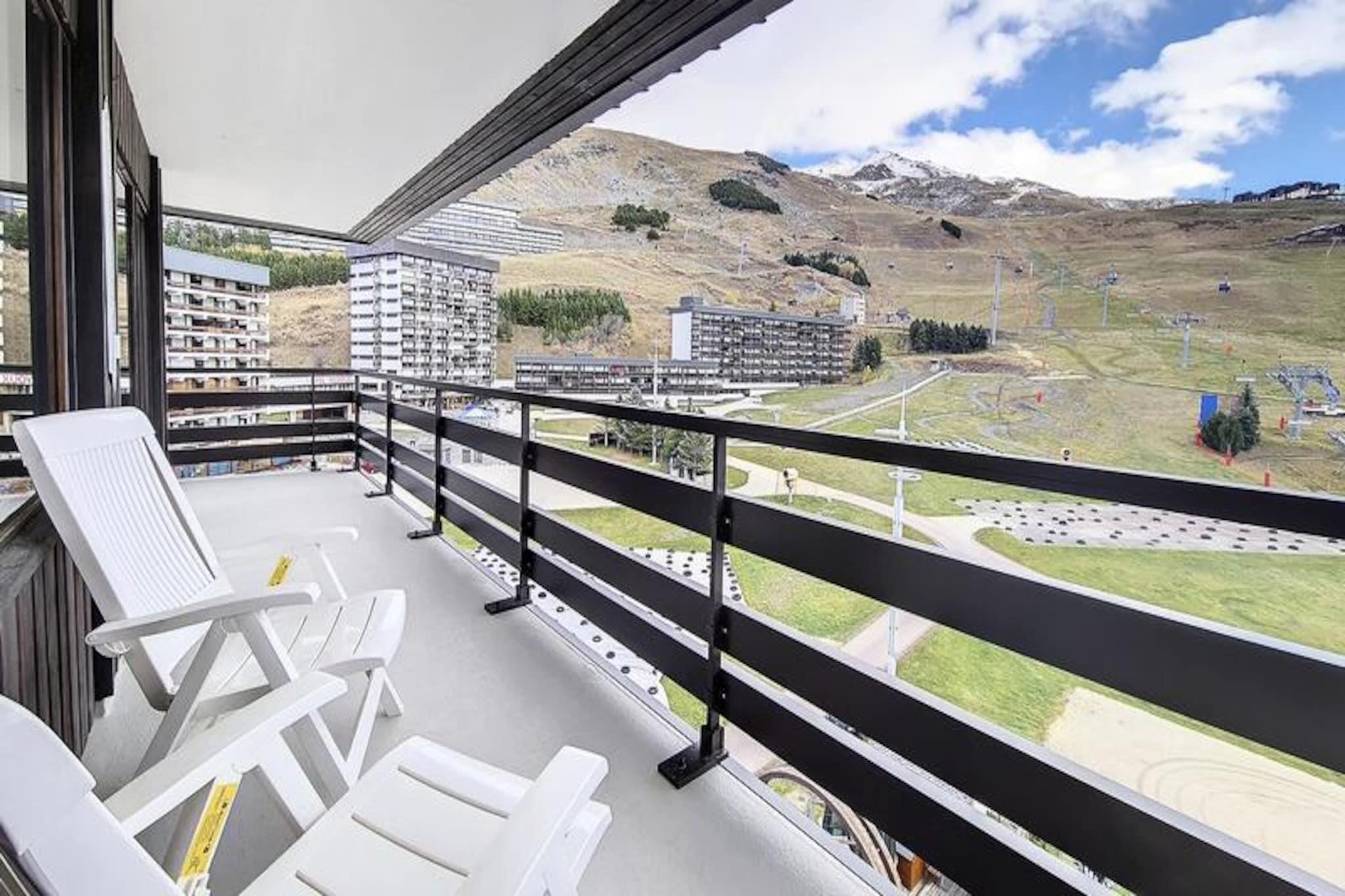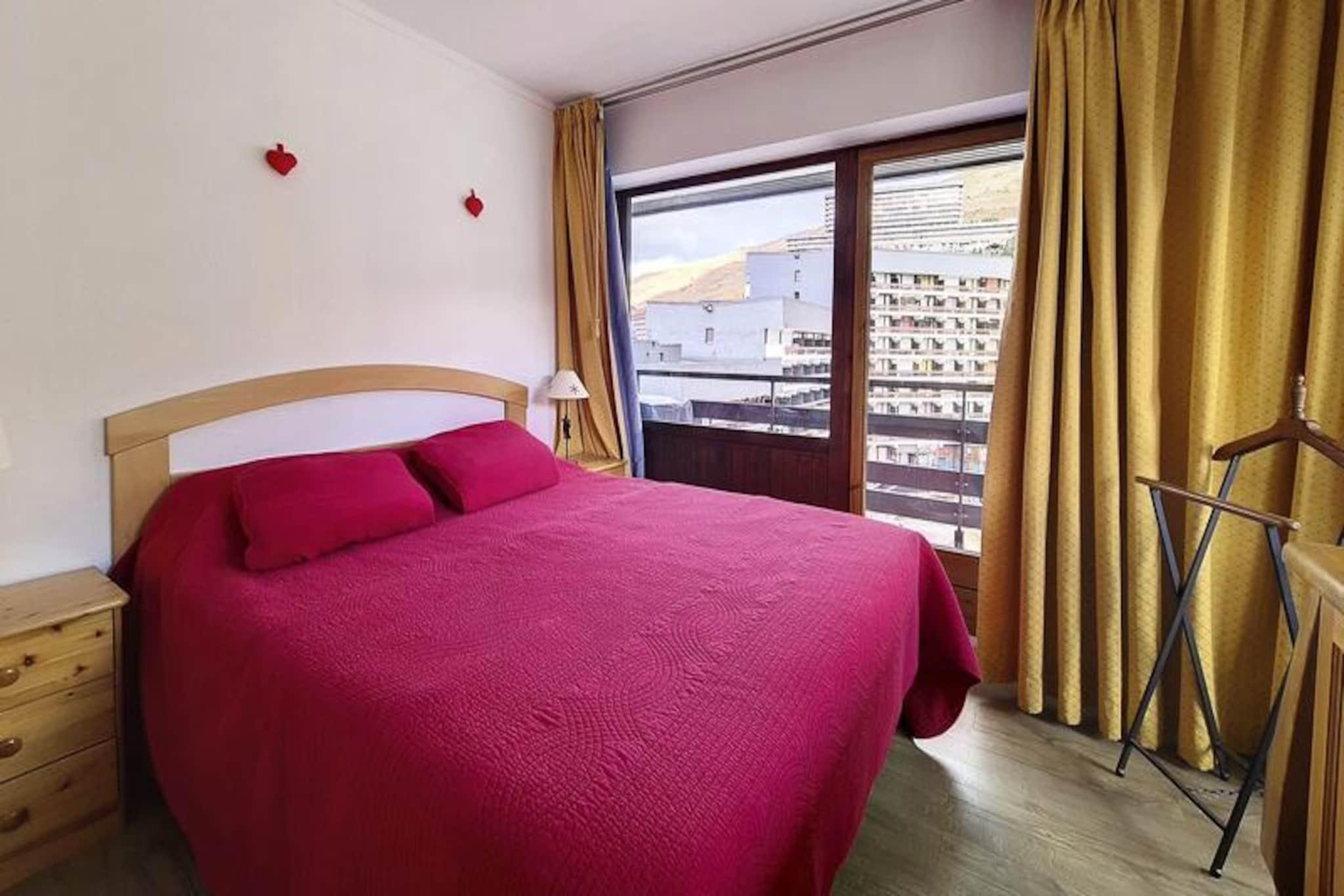 Højt over det travle La Croisette-distrikt inviterer denne charmerende lejlighed på øverste etage dig til at opleve magien i de franske alper. Badet i sollys fra sin rummelige sydøstvendte hjørnebalkon tilbyder den en betagende udsigt over de omkringliggende tinder og skråninger. Uanset om du er her for vintereventyr eller sommerferier, lover den rolige atmosfære i denne bolig et mindeværdigt ophold. Træd ud af bygningen og find dig selv direkte ved indkøbscenteret, med alt hvad du behøver kun få øjeblikke væk. Pisterne er lige uden for døren, hvilket gør det til et ideelt valg for skientusiaster, der søger bekvemmelighed og komfort. \n\nIndenfor kan lejligheden prale af en hyggelig, men funktionel indretning, perfekt til familier eller grupper på op til seks personer. Stuen, udstyret med et fladskærms-tv, tilbyder et indbydende sted at slappe af efter en dag med udforskning. Soveværelset har en komfortabel dobbeltseng, mens det andet soveværelse har to sæt køjesenge, hvilket gør det ideelt til børn eller venner, der rejser sammen. Det separate køkken er fuldt udstyret med moderne apparater, herunder køleskab, ovn, mikrobølgeovn, opvaskemaskine og kaffemaskine, hvilket sikrer, at du har alt det nødvendige for at tilberede solide måltider. Et brusebad og separat toilet bidrager til bekvemmeligheden, mens PVC- og flisebelagte gulve overalt skaber et rent og praktisk miljø.\n\nResidensens beliggenhed er uovertruffen. Der er gratis udendørs parkering lige over for bygningen, og børnehaven ligger en kort gåtur på 300 meter væk. For dem, der søger internetforbindelse, er der betalt Wi-Fi-adgang tilgængelig, afhængigt af netværksdækning. Ud over de umiddelbare faciliteter tilbyder La Croisette-distriktet en livlig atmosfære med butikker, restauranter og afterski-muligheder for at forbedre dit ophold.\n\nUanset om du er her for at grave dig gennem uberørt sne eller udforske alpine stier under sommersolen, kombinerer denne lejlighed komfort, praktisk anvendelighed og en uovertruffen beliggenhed for at skabe den perfekte base for dine bjergeventyr. Lad Alpernes skønhed inspirere din næste uforglemmelige ferie.