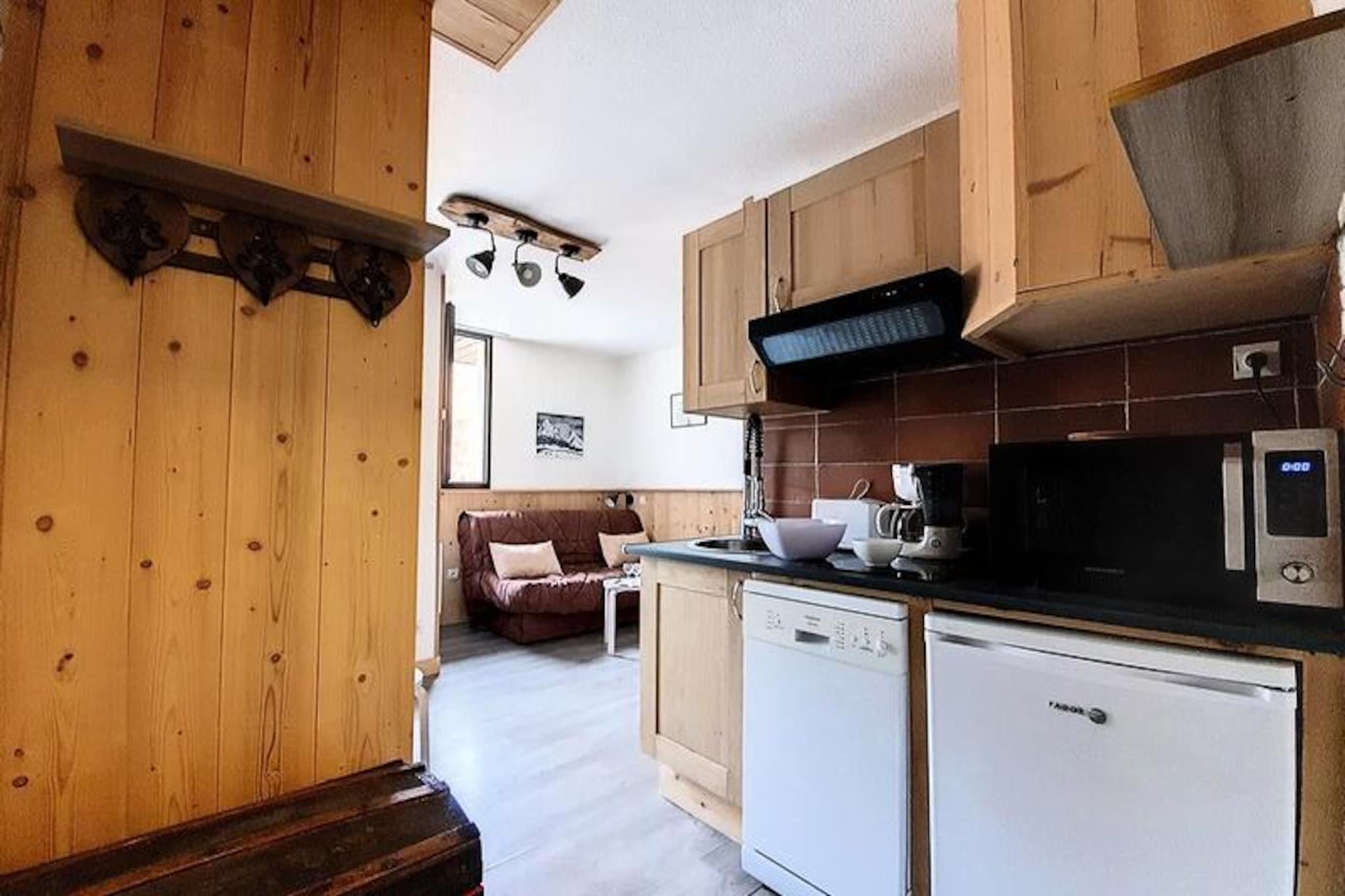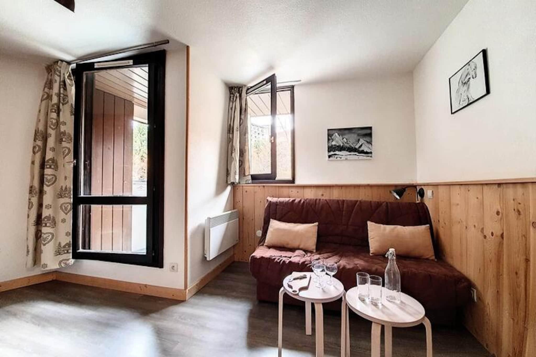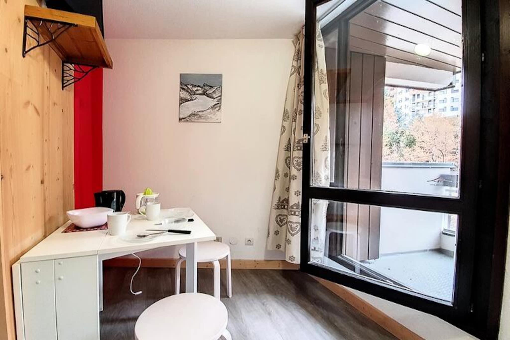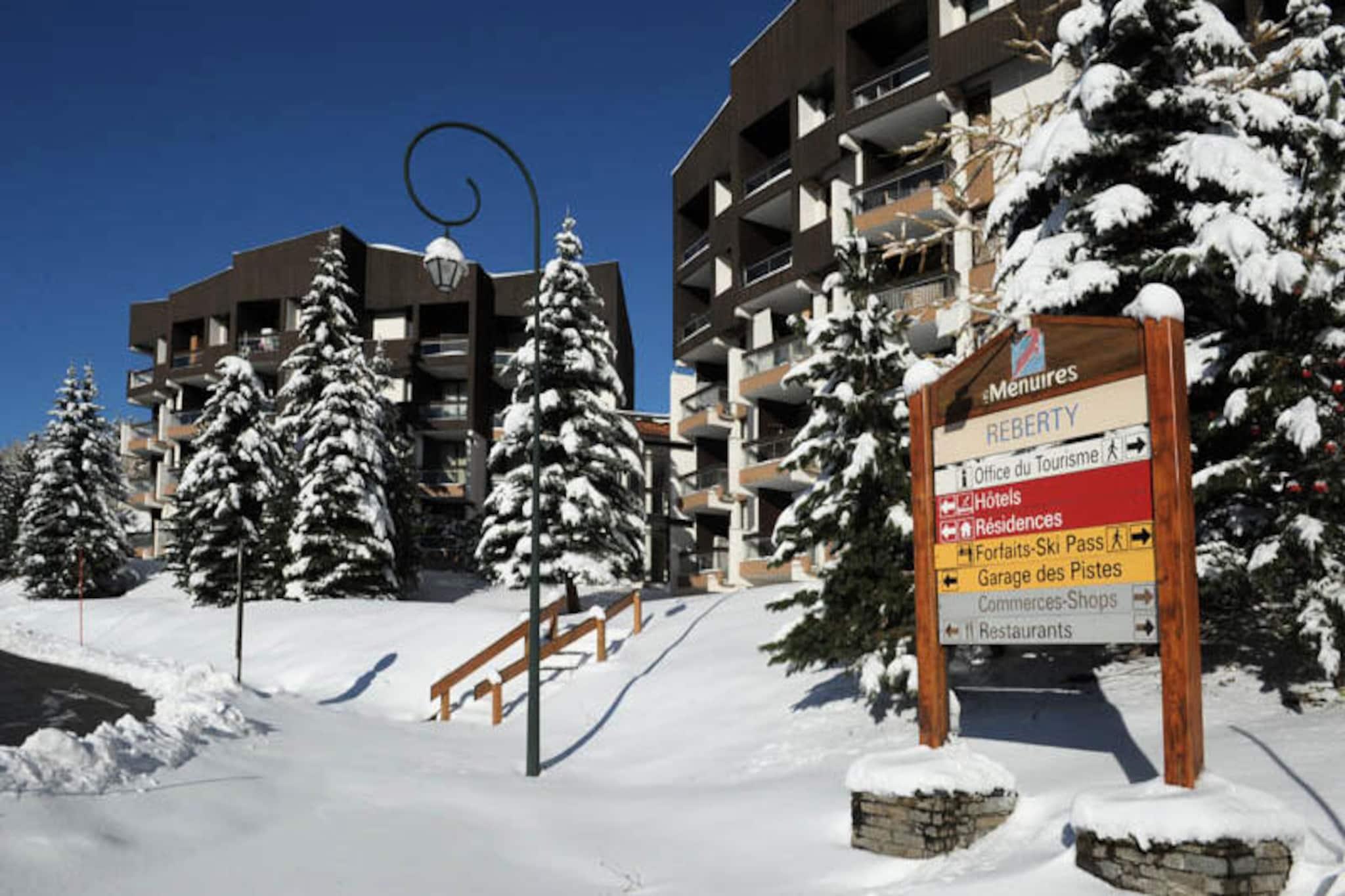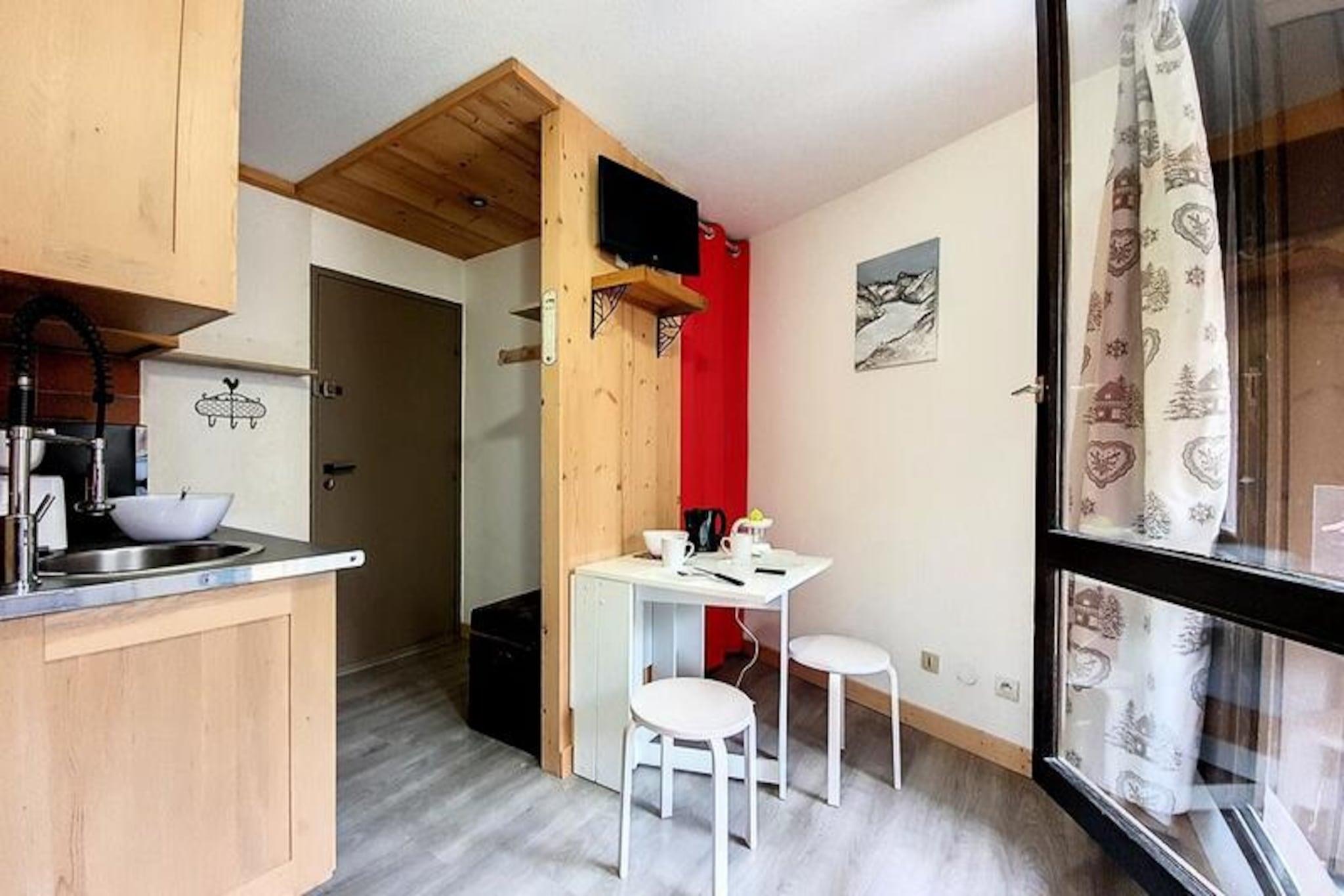 Højt over det travle Reberty 1850-distrikt tilbyder denne charmerende studiolejlighed et hyggeligt tilflugtssted for par, der søger en rolig alpin ferie. Med sin nordøstvendte balkon kan du vågne op til en betagende udsigt over de omkringliggende tinder og nyde den friske bjergluft, mens du nipper til din morgenkaffe. Uanset om du er her for at stå på ski, vandre eller blot slappe af, er denne bolig den perfekte base for dine eventyr i hjertet af Les Trois Vallées. Det nyrenoverede 17 m² store studio er omhyggeligt designet til at maksimere komfort og bekvemmelighed. Stuen har en dobbelt sovesofa og et fladskærms-tv, hvilket skaber et varmt og indbydende rum at slappe af efter en dag på pisterne. Køkkenet er fuldt udstyret med moderne apparater, herunder induktionskogeplader, opvaskemaskine, køleskab, kaffemaskine, brødrister og elkedel, hvilket sikrer, at du har alt, hvad du behøver for at tilberede lækre måltider. Det elegante badeværelse har brusekabine og toilet, mens laminatparketgulvet tilføjer et strejf af elegance i hele lejligheden. Mélèzes-boligen ligger tæt på skiløjper, butikker og restauranter og tilbyder nem adgang til alle de faciliteter, du har brug for. Gratis shuttlebusser forbinder dig med det livlige Croisette-område, mens Bruyères-distriktet kun ligger en kort gåtur væk via en offentlig elevator og gangbro. Uanset om du udforsker det pulserende feriested eller nyder roen på din balkon, er denne studiolejlighed perfekt placeret til at få mest muligt ud af dit ophold. Med sin hyggelige atmosfære, moderne faciliteter og uovertrufne beliggenhed inviterer denne lejlighed dig til at opleve magien i de franske alper med stil. Book dit ophold i dag og skab uforglemmelige minder i en af ??verdens mest ikoniske skisportssteder.