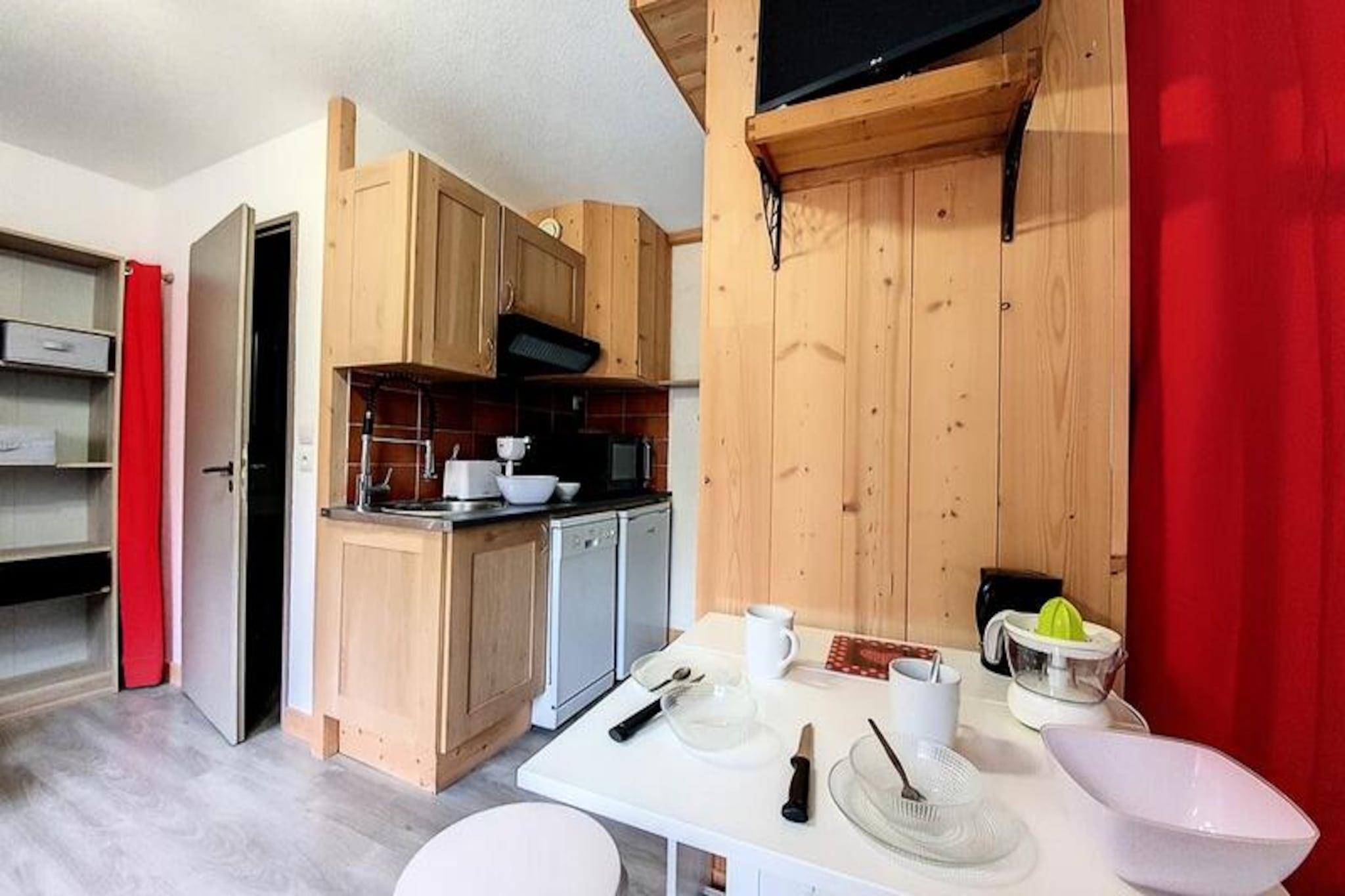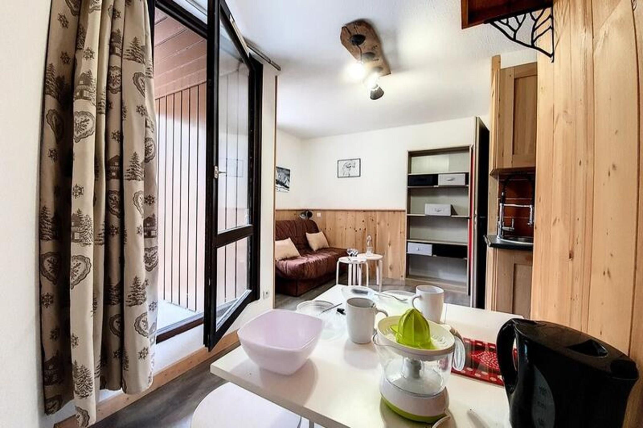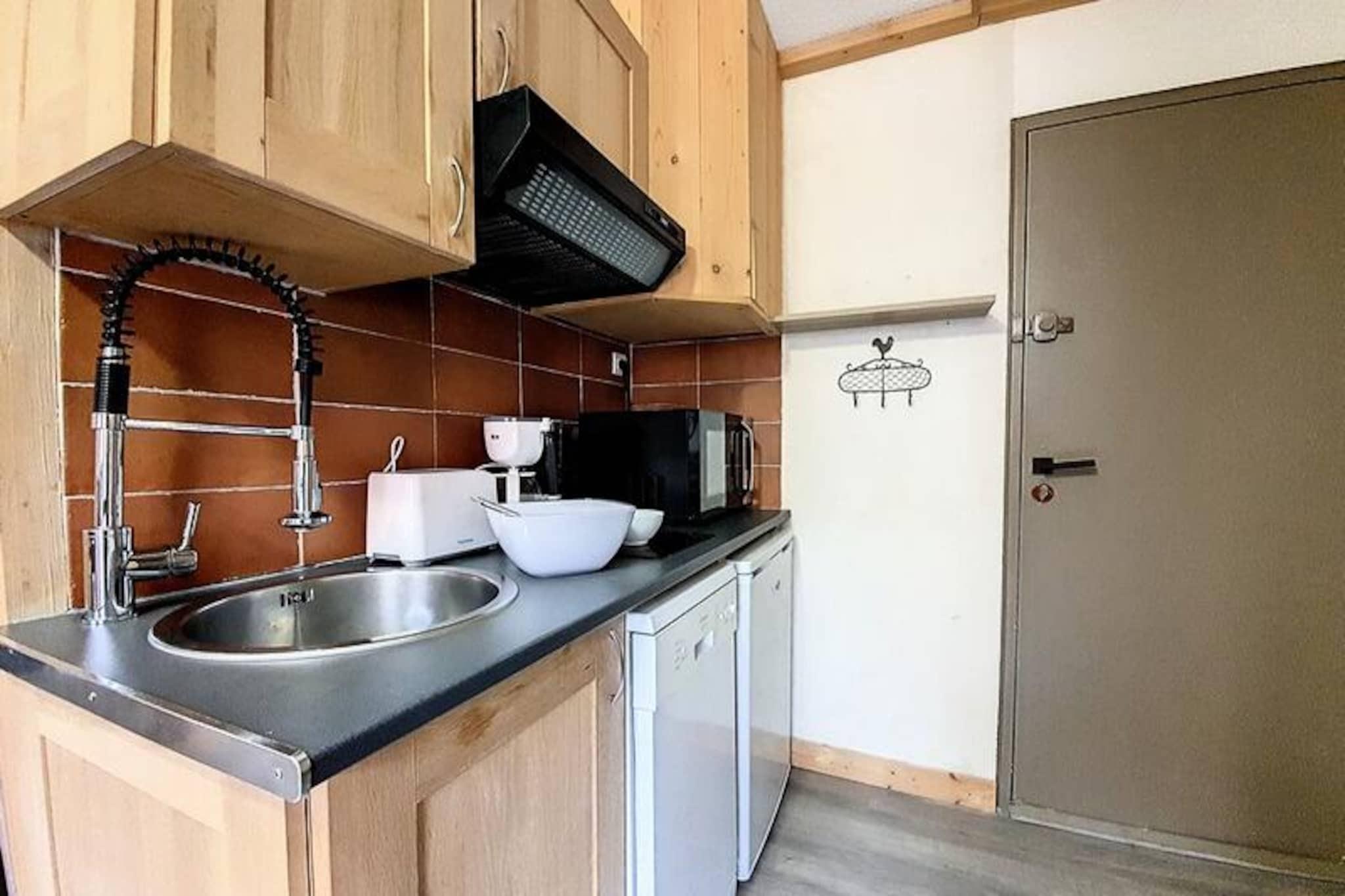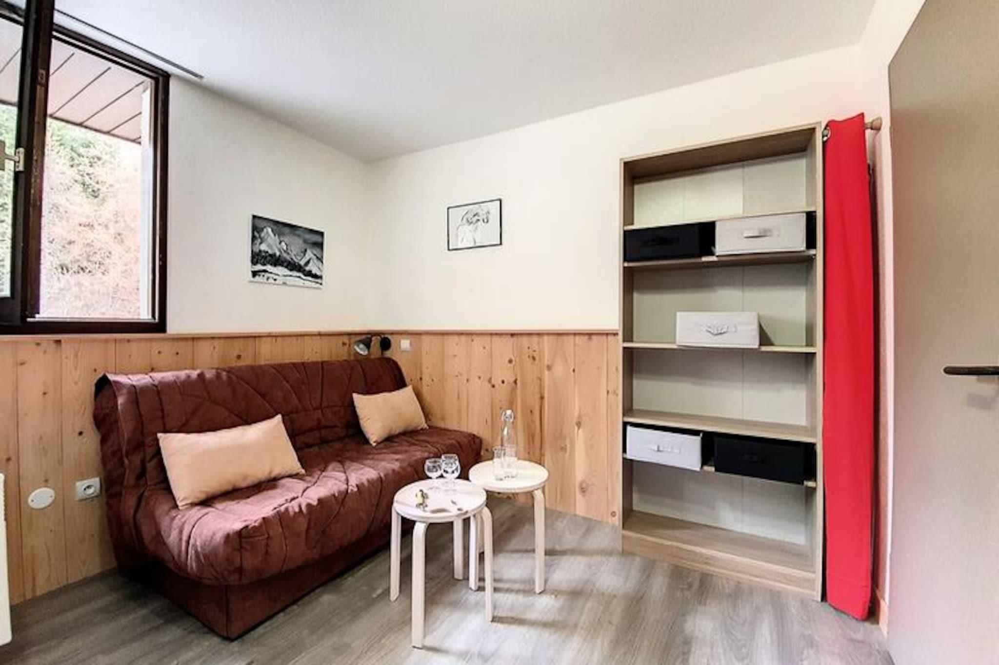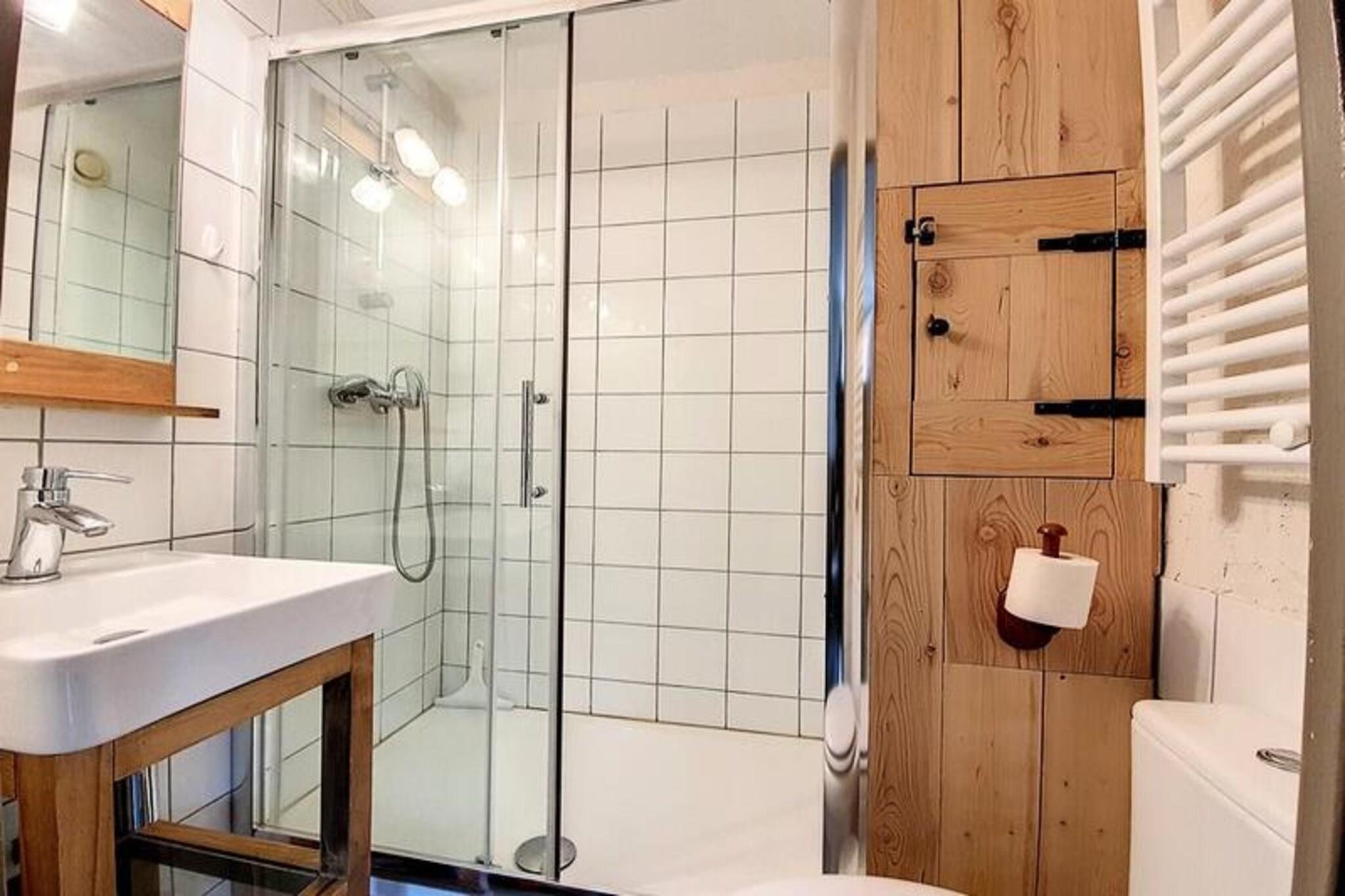 Højt over det travle Reberty 1850-distrikt tilbyder denne charmerende studiolejlighed et hyggeligt tilflugtssted for par, der søger en rolig alpin ferie. Med sin nordøstvendte balkon kan du vågne op til en betagende udsigt over de omkringliggende tinder og nyde den friske bjergluft, mens du nipper til din morgenkaffe. Uanset om du er her for at stå på ski, vandre eller blot slappe af, er denne bolig den perfekte base for dine eventyr i hjertet af Les Trois Vallées. Det nyrenoverede 17 m² store studio er omhyggeligt designet til at maksimere komfort og bekvemmelighed. Stuen har en dobbelt sovesofa og et fladskærms-tv, hvilket skaber et varmt og indbydende rum at slappe af efter en dag på pisterne. Køkkenet er fuldt udstyret med moderne apparater, herunder induktionskogeplader, opvaskemaskine, køleskab, kaffemaskine, brødrister og elkedel, hvilket sikrer, at du har alt, hvad du behøver for at tilberede lækre måltider. Det elegante badeværelse har brusekabine og toilet, mens laminatparketgulvet tilføjer et strejf af elegance i hele lejligheden. Mélèzes-boligen ligger tæt på skiløjper, butikker og restauranter og tilbyder nem adgang til alle de faciliteter, du har brug for. Gratis shuttlebusser forbinder dig med det livlige Croisette-område, mens Bruyères-distriktet kun ligger en kort gåtur væk via en offentlig elevator og gangbro. Uanset om du udforsker det pulserende feriested eller nyder roen på din balkon, er denne studiolejlighed perfekt placeret til at få mest muligt ud af dit ophold. Med sin hyggelige atmosfære, moderne faciliteter og uovertrufne beliggenhed inviterer denne lejlighed dig til at opleve magien i de franske alper med stil. Book dit ophold i dag og skab uforglemmelige minder i en af ??verdens mest ikoniske skisportssteder.