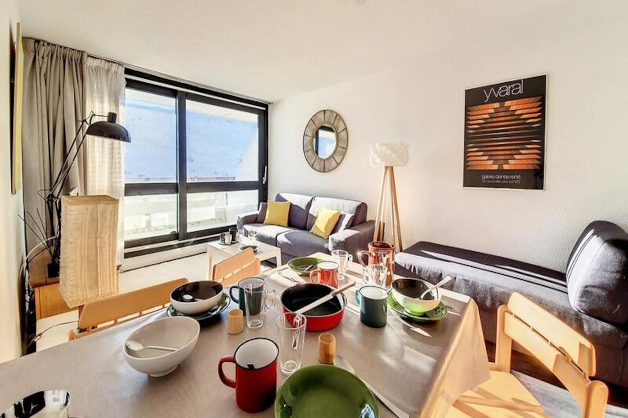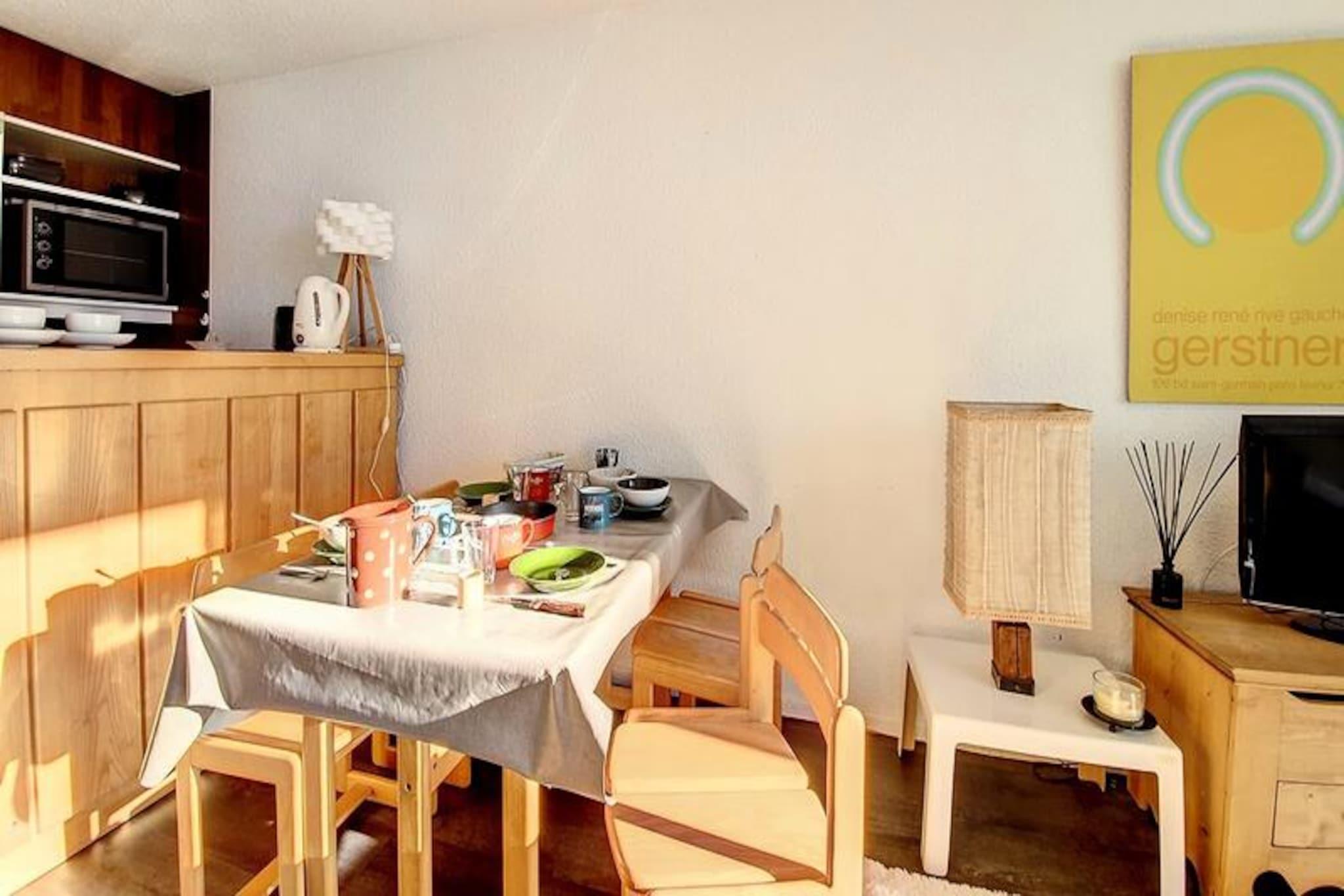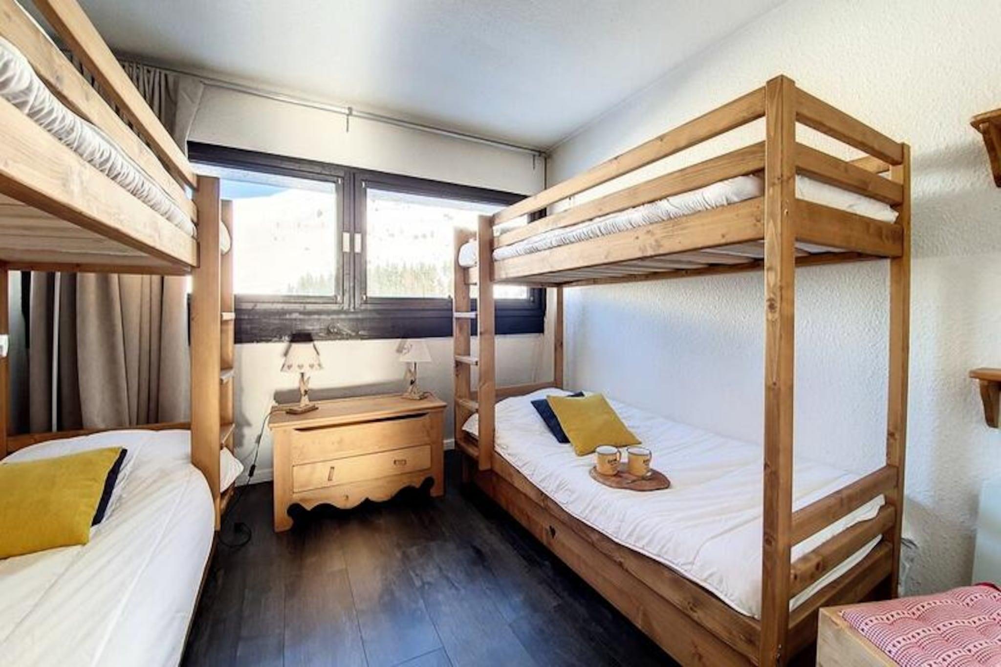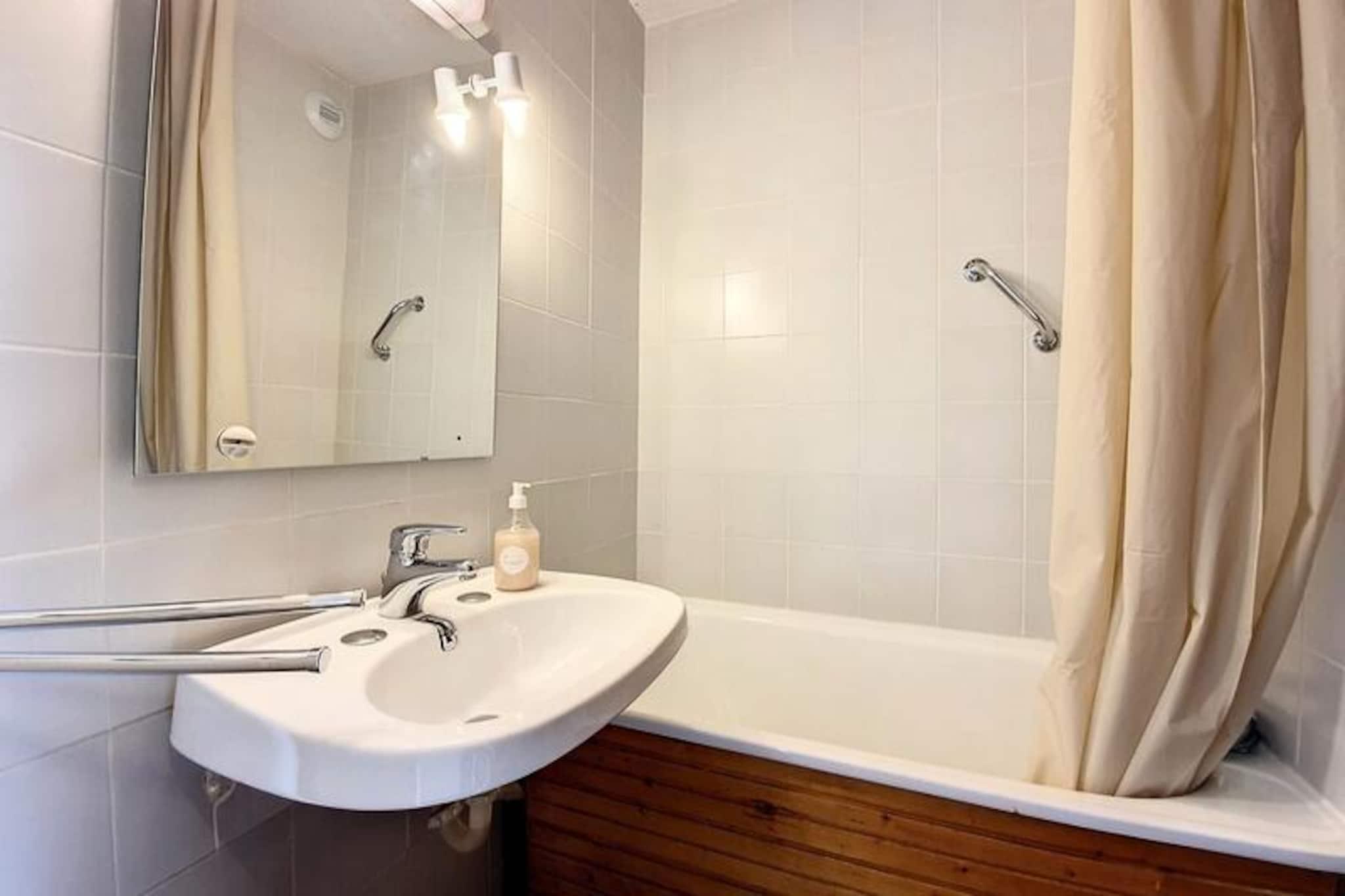 Højt over det pulserende Les Menuires-resort tilbyder Brelin-bygningen en unik alpin oplevelse med en betagende udsigt over Masse-bjergkæden og den ikoniske Cime Caron-top. Fra sit udsigtspunkt på 14. sal inviterer denne hyggelige toværelseslejlighed dig til at fordybe dig i de franske alpers skønhed med en sydvendt balkon, der bader i sollys hele dagen. Uanset om du er her for at stå på ski eller blot for at slappe af, vil den panoramiske udsigt efterlade dig inspireret. Med bekvem forbindelse til La Croisette-distriktet via offentlige elevatorer, der kører døgnet rundt, har du nem adgang til hjertet af resortet. \n\nLejligheden er designet til at rumme op til seks gæster og har en komfortabel stue med en sovesofa, et veludstyret køkken med moderne apparater og et soveværelse med to sæt køjesenge. Badeværelset har et badekar til afslappende afslapning efter skiløb, mens det separate toilet sikrer ekstra bekvemmelighed. Skibokse i stueetagen gør det nemt at komme i gang med pisterne, og lejligheden er udstyret med dyner og tæpper til hyggelige aftener. Bemærk venligst, at den øverste køjeseng ikke er egnet til børn under seks år, og kæledyr er ikke tilladt. Der er betalt Wi-Fi for din bekvemmelighed. \n\nBrelin-bygningen huser butikker og skiliftbilletkontorer i sin arkade, og Tougnette-liften tilbyder gratis parkering lige ved foden af ??bygningen. Uanset om du er en erfaren skiløber eller en førstegangsbesøgende, sikrer nærheden til disse faciliteter en problemfri ferieoplevelse. Udforsk pisterne, nyd afterskiing-aktiviteter, eller nyd blot den alpine charme i Les Menuires. \n\nDenne lejlighed er perfekt til familier eller små grupper og kombinerer praktisk anvendelighed med en fantastisk udsigt, hvilket gør den til en ideel base for din bjergferie. Lad Alpernes fredfyldte skønhed og Brelin-bygningens bekvemmelighed skabe uforglemmelige minder under dit ophold.