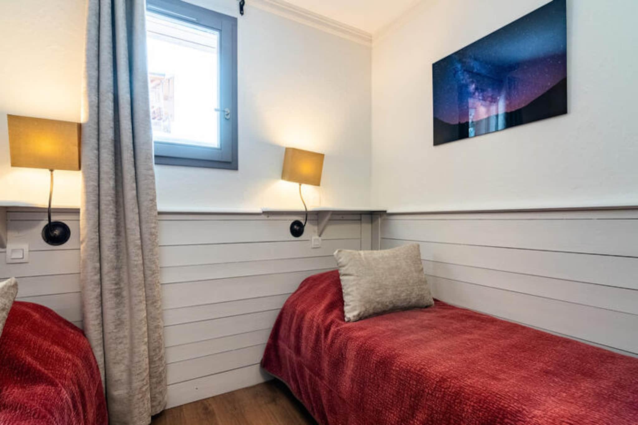 Højt over det travle feriested Val Thorens tilbyder Chalet Chamois et roligt tilflugtssted i det maleriske Balcons-distrikt. Med sin sydvendte beliggenhed inviterer dette charmerende chalet dig til at vågne op til uforstyrret udsigt over de majestætiske alpetoppe og sole dig i det varme sollys, der fylder rummet hele dagen. Uanset om du rejser med familie eller venner, giver chaletens rolige omgivelser den perfekte balance mellem eventyr og afslapning. Denne 4-værelses lejlighed, der ligger på første sal i en førsteklasses ski-in/ski-out-residens, strækker sig over 66 m² og har komfortabel plads til op til seks gæster. Opholdsstuen udstråler varme med sin hyggelige sofa, pejs og træpaneler, hvilket skaber et indbydende rum at slappe af efter en dag på pisterne. Det åbne køkken, fuldt udstyret med moderne apparater, flyder problemfrit over i spisestuen, hvilket gør det nemt at dele måltider og skabe varige minder. Lejligheden har tre gennemtænkt designede soveværelser, herunder en master suite med eget brusebad, to soveværelser med to enkeltsenge, et andet brusebad og et separat toilet, hvilket sikrer komfort og privatliv for alle. Efter en spændende dag med udforskning af Val Thorens' verdensberømte pister kan du trække dig tilbage til residensens wellness-område, der har en opvarmet indendørs pool, sauna og hammam. Et privat skirum med støvletørrer gør det endnu nemmere og sikrer, at dit udstyr er klar til det næste eventyr. Chalet Chamois ligger kun 10 minutters gang fra centrum af feriestedet og er tæt på butikker, restauranter og livlige afterski-aktiviteter, samtidig med at det tilbyder en fredelig oase at vende tilbage til hver aften. Med sin blanding af moderne bekvemmeligheder, traditionel alpin charme og en uovertruffen beliggenhed lover Chalet Chamois en uforglemmelig bjergferie i hjertet af Les Trois Vallées.