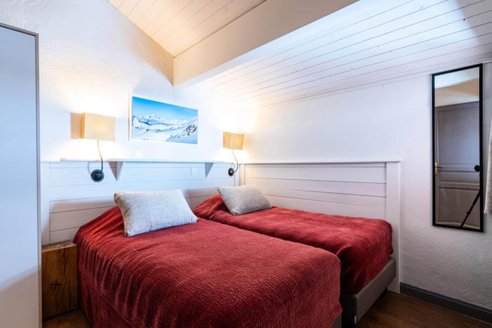Højt over Val Thorens' glitrende tinder tilbyder Chalet Chamois et fredfyldt tilflugtssted i det rolige Balcons-distrikt. Med en storslået sydvendt udsigt over de majestætiske Alper er dette chalet et paradis for dem, der søger både eventyr og afslapning. Uanset om du rejser med familie eller venner, sikrer muligheden for at leje op til fem lejligheder i samme bygning privatliv, samtidig med at det fremmer fælles øjeblikke i en hyggelig alpin atmosfære. Kun 10 minutters gang fra det livlige hjerte af feriestedet finder du dig selv perfekt placeret til at udforske de pulserende butikker, restauranter og verdensklasses skiløjper i Val Thorens. Efter en spændende dag kan du vende tilbage til roen i Balcons-distriktet, hvor chaletens fredelige omgivelser lover en genoprettende flugt. Den 90 m² store duplexlejlighed, der ligger på 2. og 3. sal i en premium-residens, har komfortabel plads til op til otte gæster. Den solrige sydvendte balkon tilbyder en betagende udsigt over bjergene, mens residensens wellness-område - inklusive en opvarmet indendørs pool, sauna og hammam - giver de perfekte rammer for afslapning efter en dag på pisterne. Stueetagen byder på en lys opholdsstue med pejs, tv og et fuldt udstyret åbent køkken, ideelt til hyggelige aftener. To dobbeltværelser, hver med eget brusebad, er også placeret på denne etage, sammen med et separat gæstetoilet. Ovenpå kan øverste etage prale af to soveværelser med to enkeltsenge, hver med eget brusebad, og et ekstra separat toilet. Chalet Chamois kombinerer moderne bjergstil med gennemtænkte faciliteter, herunder et privat skirum med støvletørrer og Wi-Fi overalt. Dens førsteklasses beliggenhed og luksuriøse faciliteter gør det til et exceptionelt valg for dem, der ønsker at opleve det bedste af Val Thorens. Uanset om du står på ski ned ad uberørte pister eller slapper af i wellness-området, lover denne chalet uforglemmelige alpine minder.