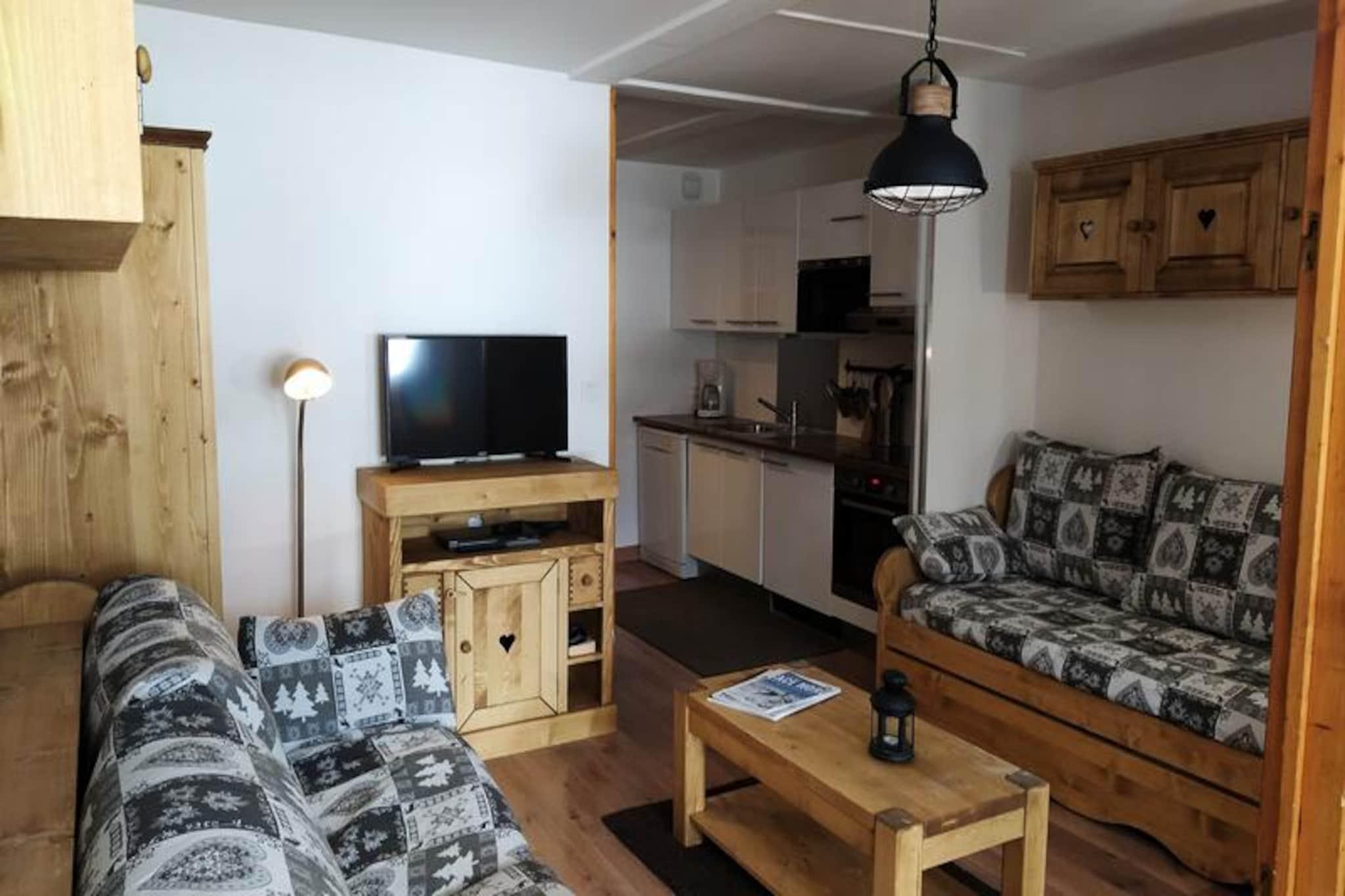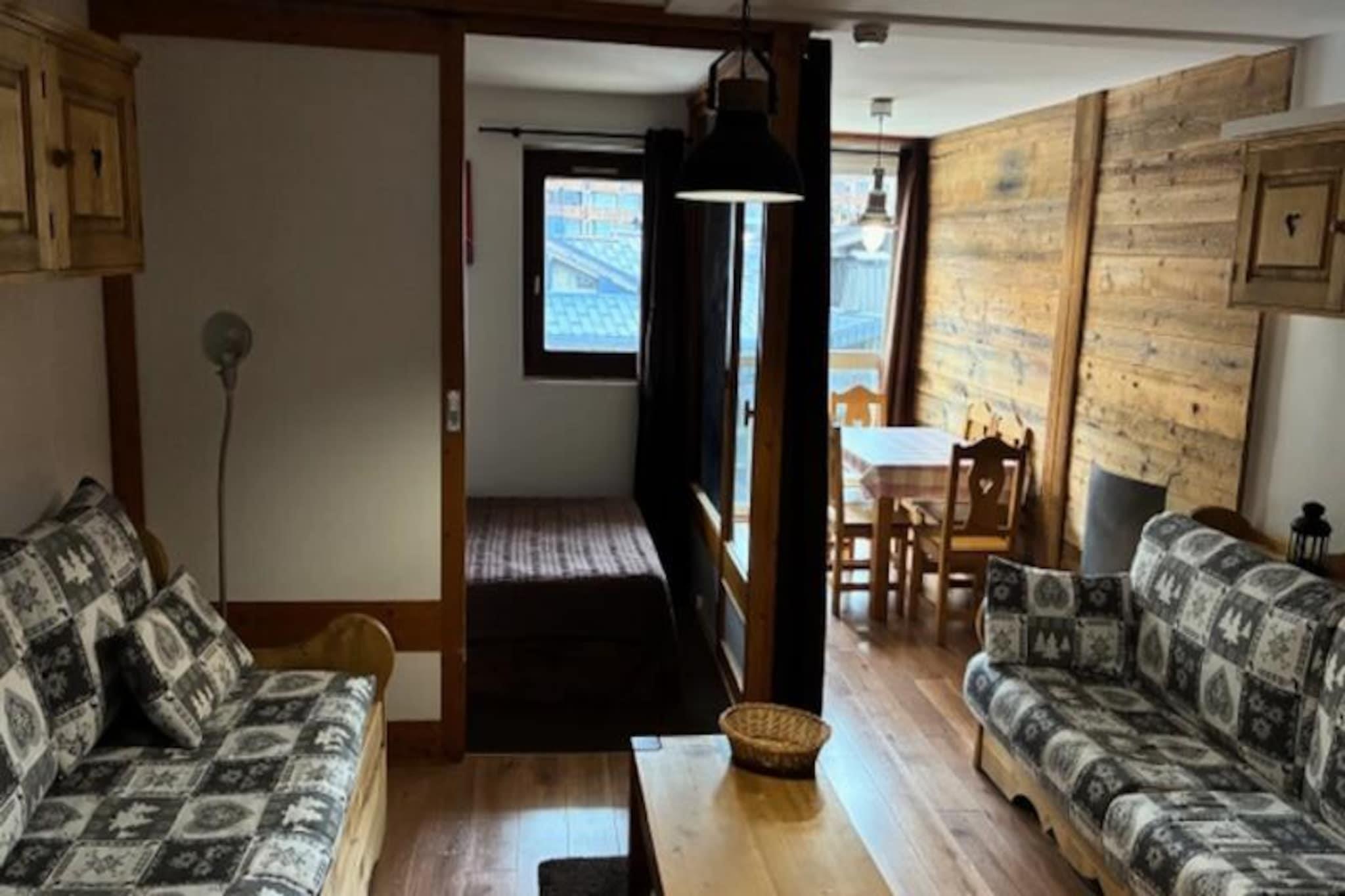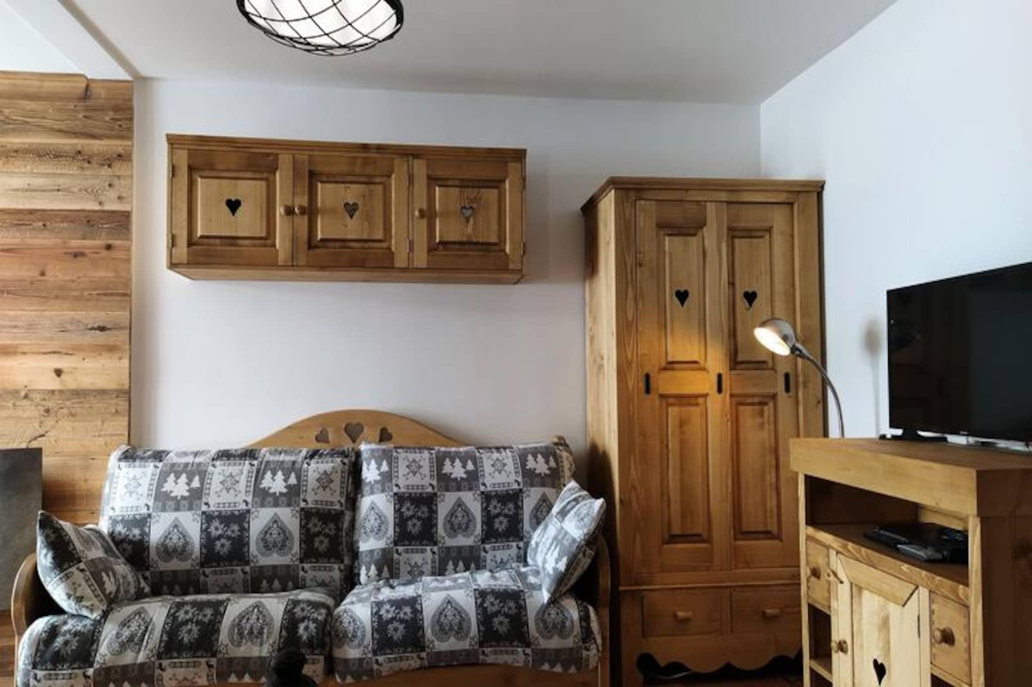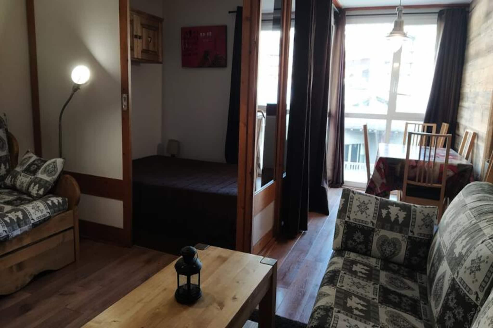 I det pulserende Caron-distrikt i Val Thorens tilbyder denne charmerende lejlighed en perfekt blanding af bekvemmelighed og alpin charme. Beliggende på 5. sal i Eskival-residensen tilbyder den en betagende udsigt fra den østvendte balkon og veranda, der inviterer dig til at starte dine morgener med den friske bjergluft og en fantastisk solopgang over pisterne. Med direkte adgang til pisterne er denne ejendom en drøm for skientusiaster, der ønsker at maksimere deres tid i sneen. Lejligheden på 35 m² er designet til at rumme op til fire gæster og har en hyggelig stue med parketgulv, en sovesofa, der kan laves om til to enkeltsenge, og et fjernsyn til afslappende aftener. Det separate soveværelse med en dobbeltseng, opdelt af en skydedør, sikrer privatliv og komfort. Det fuldt udstyrede køkken inkluderer en ovn, keramisk kogeplade, mikrobølgeovn, køleskab, opvaskemaskine og emhætte, hvilket gør det nemt at tilberede solide måltider efter en dag med eventyr. Det moderne badeværelse med bruser og håndvask samt et separat toilet bidrager til bekvemmeligheden under dit ophold. Residensen er omgivet af en række butikker, restauranter og essentielle resortfaciliteter såsom turistkontoret, skiskole og kælkebaner for børn. En Skiset/Goistchel GS2 sportsbutik er bekvemt placeret i stueetagen, og der kan lejes en garageplads i bygningen. Udover skiløb kan gæsterne nyde nærliggende attraktioner som bowlingbanen og livlige afterski-steder. Uanset om du er her for spændende vintersport eller blot for at nyde det majestætiske alpine landskab, tilbyder denne lejlighed i hjertet af Val Thorens en uforglemmelig bjergferie. Med en perfekt beliggenhed til både eventyr og afslapning er det den ideelle base for at skabe dyrebare minder i de franske alper.
