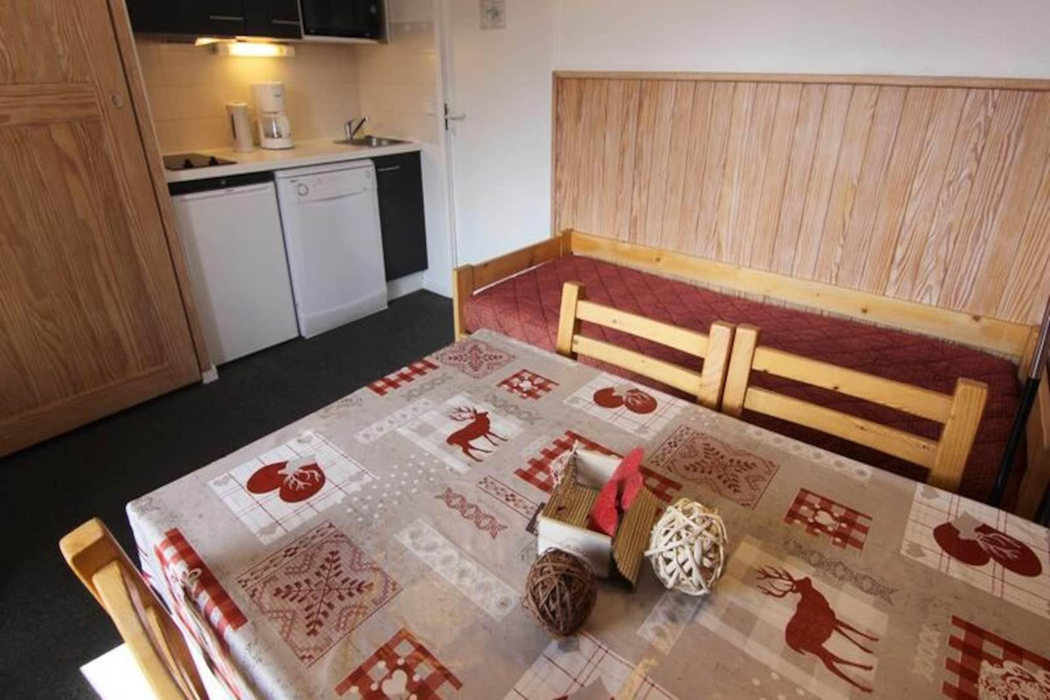 I det rolige Arolles-distrikt i Val Thorens tilbyder denne charmerende lejlighed et roligt tilflugtssted med direkte adgang til pisterne. Den er perfekt placeret ved indgangen til resortet og kombinerer en fredelig atmosfære med bekvemmeligheden ved kun at være 200 meter fra Caron indkøbscenter og Val Thorens sportscenter, hvor du finder en swimmingpool og et wellness-område, hvor du kan slappe af efter en dag med alpine eventyr. Den sydvendte balkon inviterer dig til at nyde solen, mens du nyder den betagende udsigt over bjergene. Denne hyggelige lejlighed på 29 m² på anden sal i La Reine Blanche-residensen er designet til op til fire gæster og er ideel til familier eller små grupper. Det veludstyrede tekøkken har ovn, keramisk kogeplade, køleskab, opvaskemaskine og emhætte, hvilket gør madlavning til en leg. Stuen har en komfortabel sofa og tv, hvilket skaber et indbydende rum at slappe af. Sovepladserne inkluderer en dobbeltseng i soveværelset og køjesenge i en separat kahyt, hvilket sikrer et afslappende ophold for alle. Badeværelset har badekar og håndvask, med et separat toilet for ekstra bekvemmelighed. Beliggenheden er uovertruffen for skientusiaster, med skiudlejningen SKISET/GOITSCHEL SPORT GS4 kun 200 meter væk og pisterne lige uden for døren. Udover skiløb tilbyder det pulserende Caron-indkøbscenter adgang til lokale butikker, restauranter og afterski-aktiviteter. Uanset om du søger spændende dage på pisterne eller rolige aftener med alpelandskab, tilbyder denne lejlighed den perfekte base for din Val Thorens-ferie.