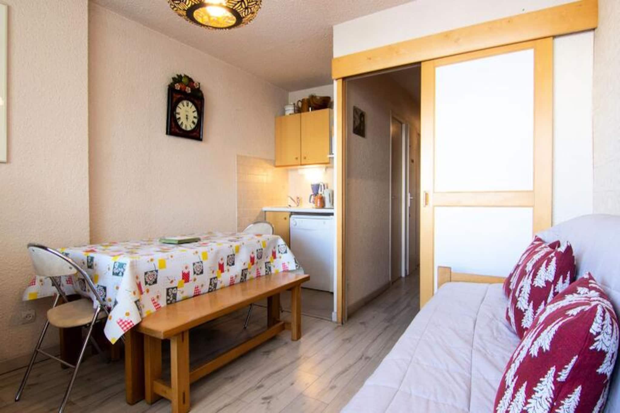Midt i det pulserende Caron-distrikt tilbyder Le Lac du Lou et hyggeligt alpint tilflugtssted, perfekt til familier og små grupper. Med sin førsteklasses beliggenhed i hjertet af feriestedet, befinder du dig kun få skridt fra en række faciliteter, herunder en bowlingbane, butikker, restauranter og essentielle tjenester såsom turistkontor, posthus, bank og den berømte ESF-skiskole. Uanset om du er her for vinterspænding eller sommerafslapning, placerer denne ejendom dig i centrum af det hele. Denne charmerende 2-værelses lejlighed er på 35 m² og har komfortabel plads til op til seks gæster. Beliggende på tredje sal i boligen har den en sydvendt balkon, der inviterer dig til at nyde bjergsolen og den fantastiske udsigt. Indenfor er tekøkkenet udstyret med moderne bekvemmeligheder som ovn, køleskab, keramisk kogeplade og opvaskemaskine, hvilket gør madlavning til en leg. Stuen tilbyder et hyggeligt sted at slappe af, komplet med et tv og en sovesofa, der kan laves om til to enkeltsenge. Soveværelset har en komfortabel dobbeltseng, mens en separat krog med køjesenge er perfekt til børn eller ekstra gæster. Et badeværelse med badekar og et separat toilet bidrager til lejlighedens praktiske og komfortable egenskaber. Skientusiaster vil sætte pris på den direkte adgang til pisterne via skiboksene, hvilket sikrer en problemfri start på jeres alpine eventyr. Efter en dag på pisterne kan I udforske det livlige Caron-distrikt, hvor der er masser af afterski-muligheder. I de varmere måneder forvandles området til et paradis for vandrere og naturelskere med stier, der snor sig gennem betagende alpine landskaber. Med sin uovertrufne beliggenhed og gennemtænkte faciliteter er Le Lac du Lou jeres indgang til en uforglemmelig bjergflugt.