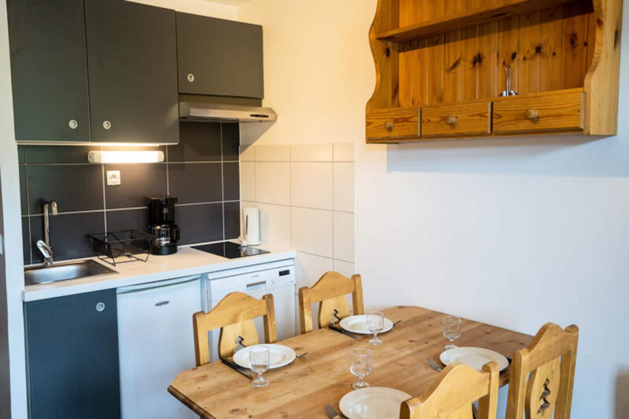 I det fredfyldte Arolles-distrikt i Val Thorens tilbyder denne hyggelige studiohytte et perfekt tilflugtssted for familier og små grupper, der søger en balance mellem ro og eventyr. Med sin sydøstvendte balkon kan du starte dine morgener med at sole dig i det alpine sollys, mens du nyder den betagende udsigt over bjergene. Beliggende ved indgangen til resortet kombinerer denne bolig fredelige omgivelser med exceptionel bekvemmelighed. Studioet på 25 m² er omhyggeligt designet til at rumme op til fire gæster. Stuen har en udtrækssovesofa, der kan laves om til to enkeltsenge, mens hytteområdet tilbyder en komfortabel køjeseng. Tekøkkenet er veludstyret med moderne apparater, herunder keramisk kogeplade, ovn, mikrobølgeovn, køleskab, opvaskemaskine og emhætte, hvilket gør det nemt at tilberede måltider efter en dag på pisterne. Et separat badeværelse med bruser og håndvask samt et separat toilet sikrer ekstra komfort under dit ophold. Beliggende kun 200 meter fra Caron indkøbscenter har du nem adgang til lokale butikker, restauranter og Val Thorens sportscenter, som kan prale af en swimmingpool og wellness-område. Skiudlejningen SKISET/GOITSCHEL SPORT GS4 ligger også bekvemt i nærheden, hvilket gør det nemt at gøre sig klar til dine alpine eventyr. Bedst af alt tilbyder boligen direkte adgang til pisterne, så du kan træde udenfor og fordybe dig i den verdensklasse skiløb, som Val Thorens er kendt for. Uanset om du er her for at grave dig gennem uberørt sne, udforske den pulserende afterski-scene eller blot slappe af i bjergenes fredelige atmosfære, er denne charmerende studiohytte en ideel base for uforglemmelige alpine minder.