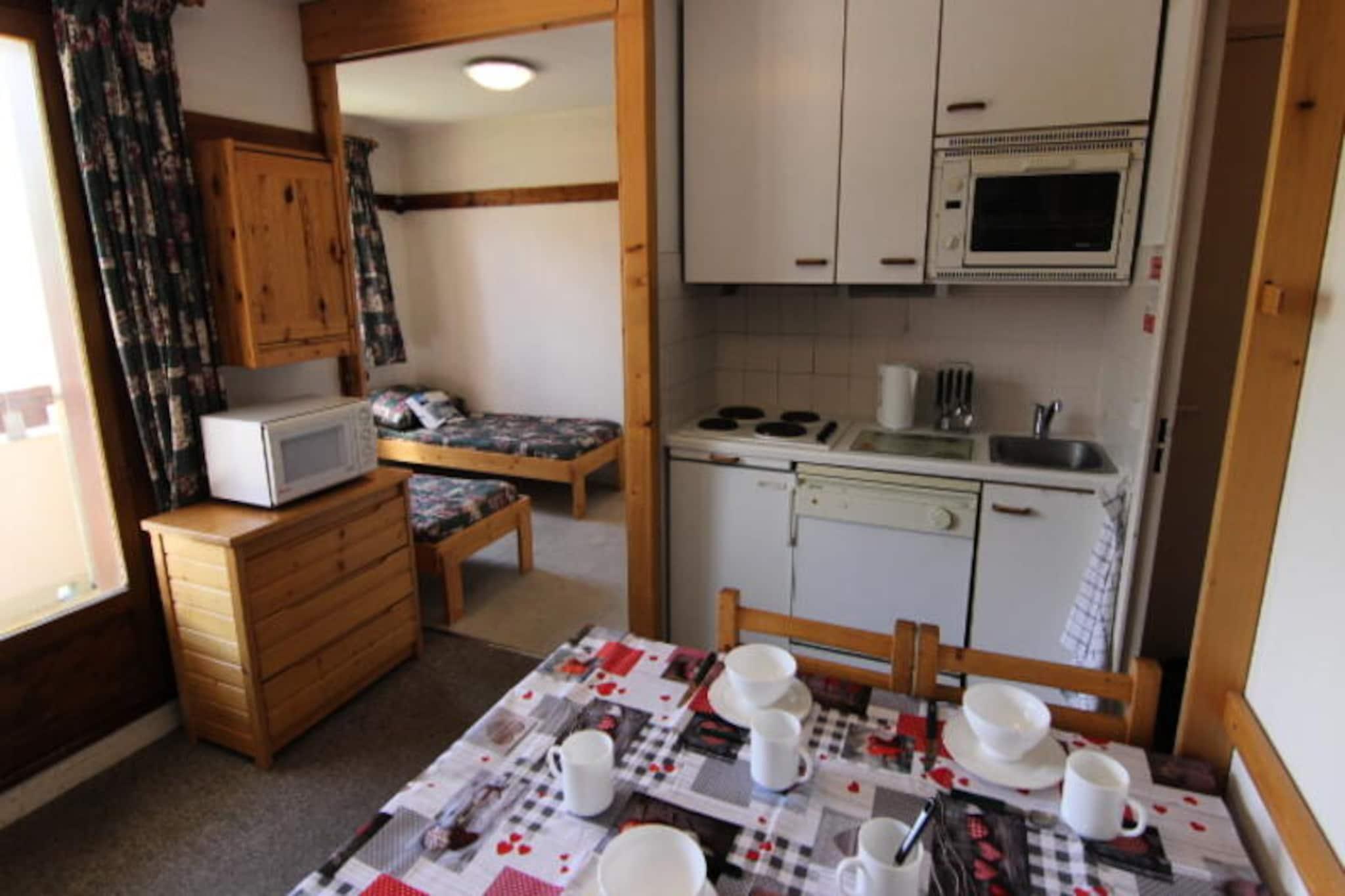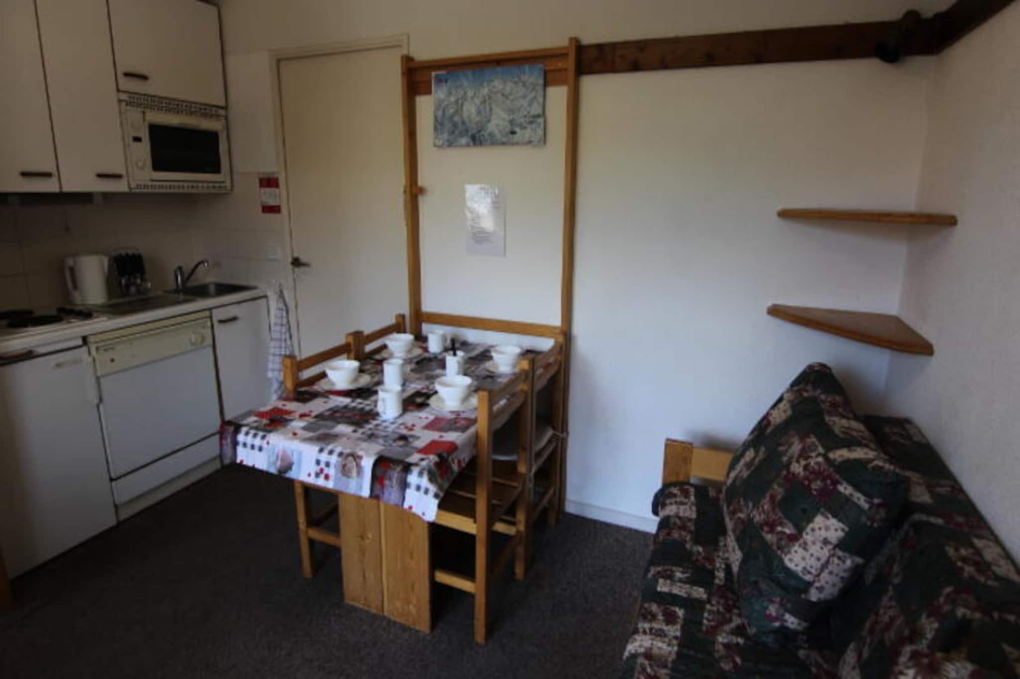 I det fredfyldte Arolles-distrikt i Val Thorens tilbyder denne charmerende lejlighed en perfekt blanding af ro og bekvemmelighed til din alpine ferie. Med sin sydvendte balkon kan du nyde den betagende udsigt over bjergene og sole dig efter en dag med eventyr. Residensen La Reine Blanche er en favorit blandt familier og tilbyder et fredeligt tilflugtssted ved indgangen til resortet, samtidig med at den er tæt på alt, hvad der sker. Denne hyggelige lejlighed på 29 m² er omhyggeligt designet til at rumme op til fire gæster. Stuen indbyder til afslapning med sin komfortable sofa og spiseplads, mens tekøkkenet er fuldt udstyret med ovn, mikrobølgeovn, elektrisk komfur, køleskab og opvaskemaskine, hvilket gør madlavning til en leg. Sovepladserne omfatter et soveværelse med to enkeltsenge og en hyggelig kahyt med køjesenge, der sikrer en afslappende nat for alle. Badeværelset har badekar og håndvask samt separat toilet for ekstra bekvemmelighed. Beliggende kun 200 meter fra Caron indkøbscenter har du nem adgang til lokale butikker, restauranter og Val Thorens sportscenter, som kan prale af en swimmingpool og et wellness-område. Skientusiaster vil sætte pris på den direkte adgang til pisterne og den nærliggende SKISET/GOITSCHEL SPORT GS4 skiudlejningsbutik, der også ligger kun 200 meter væk. Uanset om du er her for at stå på ski, snowboarde eller blot nyde den alpine charme, er alt hvad du behøver inden for rækkevidde. Vælg denne dejlige lejlighed til et mindeværdigt ophold i Val Thorens, hvor de franske alpers skønhed og komforten i et veludstyret hjem forenes for at skabe den ultimative bjergflugt.