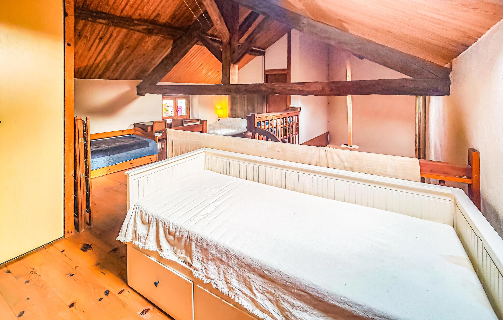 Med masser af træ og en varm, hyggelig atmosfære emmer dette kærligt restaurerede landsbyhus fra det 17. århundrede af charme. Det er det ideelle udgangspunkt for utallige udflugter i Pyrenæernes maleriske landskab. Slå jer løs i det rustikke, fuldt udstyrede køkken, og slap af på den rummelige sofa foran pejsen efter lange ture i området. Gå på opdagelse efter en spændende bog i den lille bibliotekssamling, eller arranger hyggelige spilleaftener i den behagelige opholdsstue.