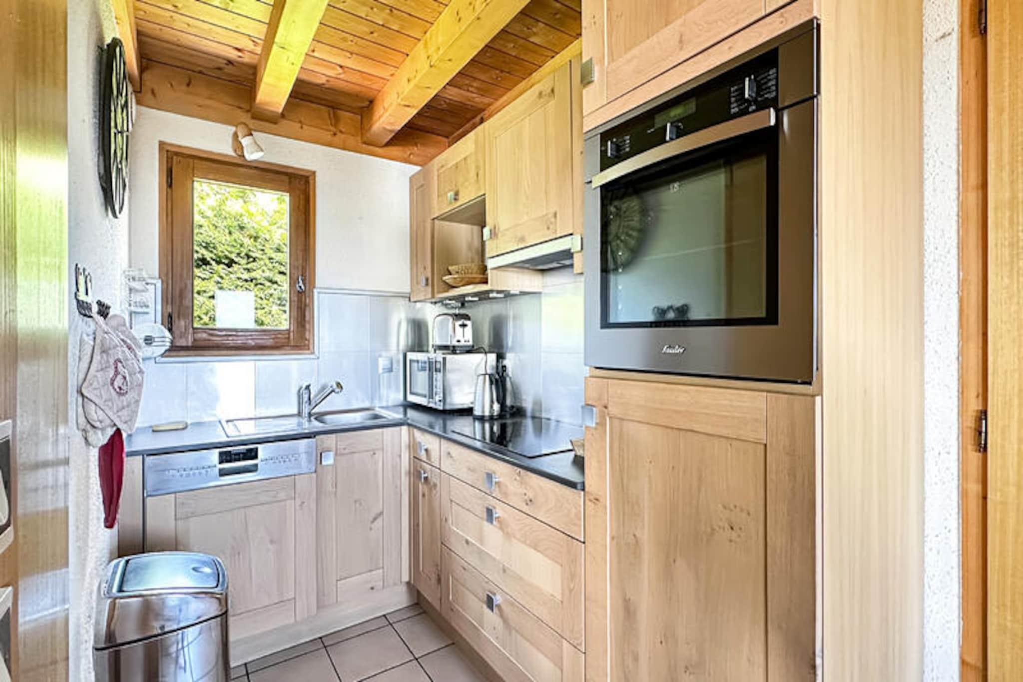 Omgivet af de franske alpers fredfyldte skønhed tilbyder denne charmerende fritliggende hytte i Domaine du Clos-området et varmt og indbydende tilflugtssted for din bjergferie. Kun 750 meter fra Kédeuse-svævebanen og 1 kilometer fra landsbyens centrum kombinerer den bekvemmelighed med ro, hvilket gør den til den perfekte base for at udforske regionens naturlige vidundere og skiløjper. Hyttens rustikke, men elegante indretning skaber en hyggelig atmosfære, ideel til afslapning efter en dag med alpine eventyr. Hytten er på 80 kvadratmeter og har komfortabel plads til op til seks gæster fordelt på sine tre gennemtænkt designede soveværelser. Stueetagen har et soveværelse med køjesenge, mens du ovenpå finder et værelse med to enkeltsenge og et soveværelse med en luksuriøs queensize-seng. Opholds- og spisestuen, komplet med en brændeovn, inviterer dig til at slappe af foran dens varme glød. To store glasdøre oversvømmer rummet med naturligt lys og tilbyder en betagende udsigt over de omkringliggende bjerge. Det fuldt udstyrede køkken med moderne apparater, herunder keramisk kogeplade, ovn, mikrobølgeovn og opvaskemaskine, sikrer, at du har alt, hvad du behøver for at tilberede lækre måltider. Hytten kan også prale af praktiske faciliteter såsom et skistativ og to private parkeringspladser, hvilket gør den til et fremragende valg for vintersportsentusiaster. Beliggenheden giver nem adgang til Kédeuse-svævebanen til skiløb og snowboarding, mens den nærliggende landsby byder på charmerende butikker, restauranter og afterski-aktiviteter. Om sommeren forvandles området til et paradis for vandrere og naturelskere med stier, der fører til fantastiske alpine udsigter. Uanset om du søger eventyr på pisterne eller fredelige øjeblikke omgivet af natur, lover denne hytte et uforglemmeligt ophold i hjertet af Alperne. Med sin blanding af komfort, stil og førsteklasses beliggenhed er det det perfekte valg for familier eller venner, der ønsker at skabe varige minder sammen.