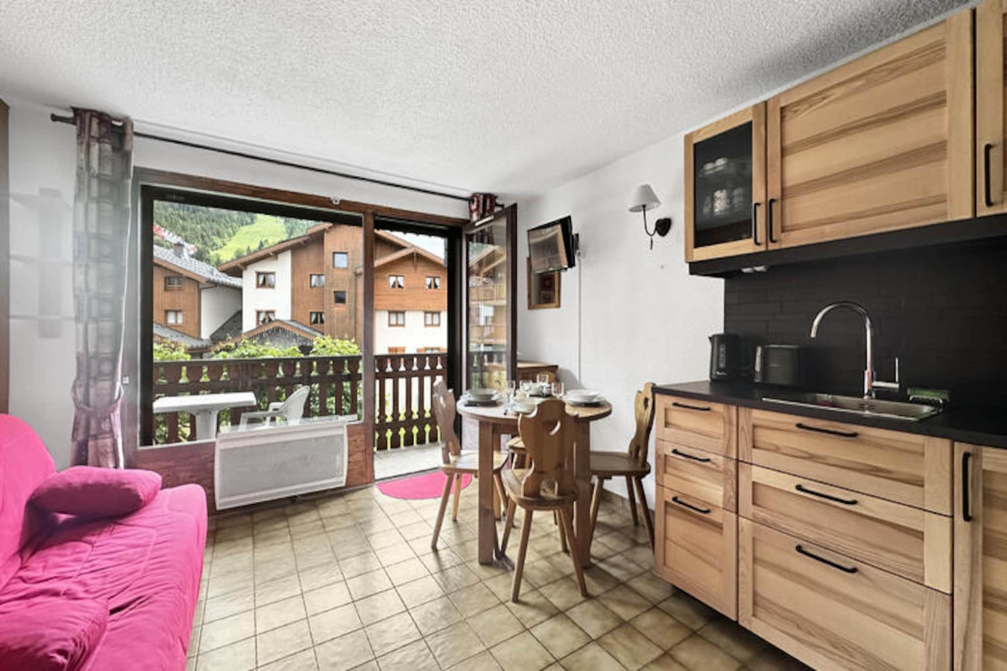 I hjertet af den maleriske landsby Les Carroz tilbyder denne hyggelige studiolejlighed et dejligt tilflugtssted for dem, der søger en blanding af alpin charme og moderne bekvemmeligheder. Kun 50 meter fra det pulserende landsbycentrum er du omgivet af varmen fra lokale bagerier, indbydende restauranter og den bekvemme beliggenhed ved et nærliggende skibusstoppested, hvilket gør det til en ideel base for at udforske skiområdet Grand Massif eller nyde den rolige bjergatmosfære. Uanset om du er her for vintersport eller sommervandreture, lover denne ejendom et mindeværdigt ophold. \n\nLejligheden er designet til at rumme op til fire gæster og har en gennemtænkt sovealkove med køjesenge og en komfortabel sovesofa i opholdsstuen. Det åbne køkken og opholdsstue fører ud til en privat balkon, hvor du kan nyde din morgenkaffe, mens du nyder den friske alpine luft. Køkkenet er udstyret med essentielle faciliteter såsom ovn, mikrobølgeovn og køleskab, hvilket gør det nemt at tilberede solide måltider efter en dag med eventyr. Der er også et skiskab, der sikrer, at dit udstyr er sikkert opbevaret og klar til pisterne. \n\nLes Carroz tilbyder et væld af aktiviteter og attraktioner, lige fra spændende skiløjper til naturskønne vandrestier. Landsbyens centrum er fyldt med charme, med traditionel arkitektur og en indbydende atmosfære, der inviterer dig til at udforske dens butikker og caféer. I nærheden kan skiområdet Grand Massif prale af pister i verdensklasse og en betagende udsigt, mens sommergæster kan nyde cykling, paragliding og naturture gennem frodige alpine enge. \n\nUanset om du søger adrenalinfyldte dage eller rolige aftener, er denne studiolejlighed perfekt placeret til at give dig det bedste af Les Carroz. Med sin bekvemme beliggenhed og hyggelige design er det det perfekte valg for par, små familier eller venner, der ønsker at opleve magien i de franske alper.