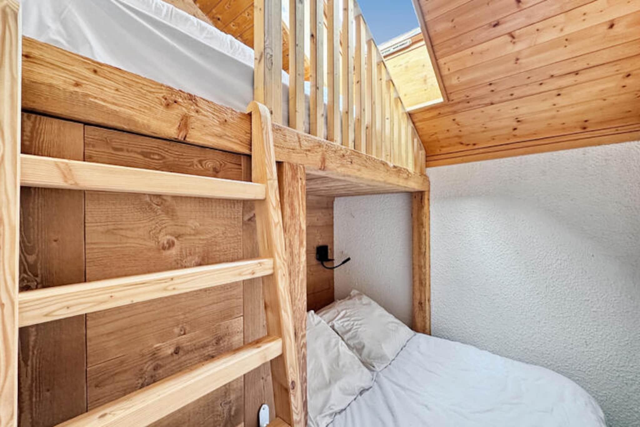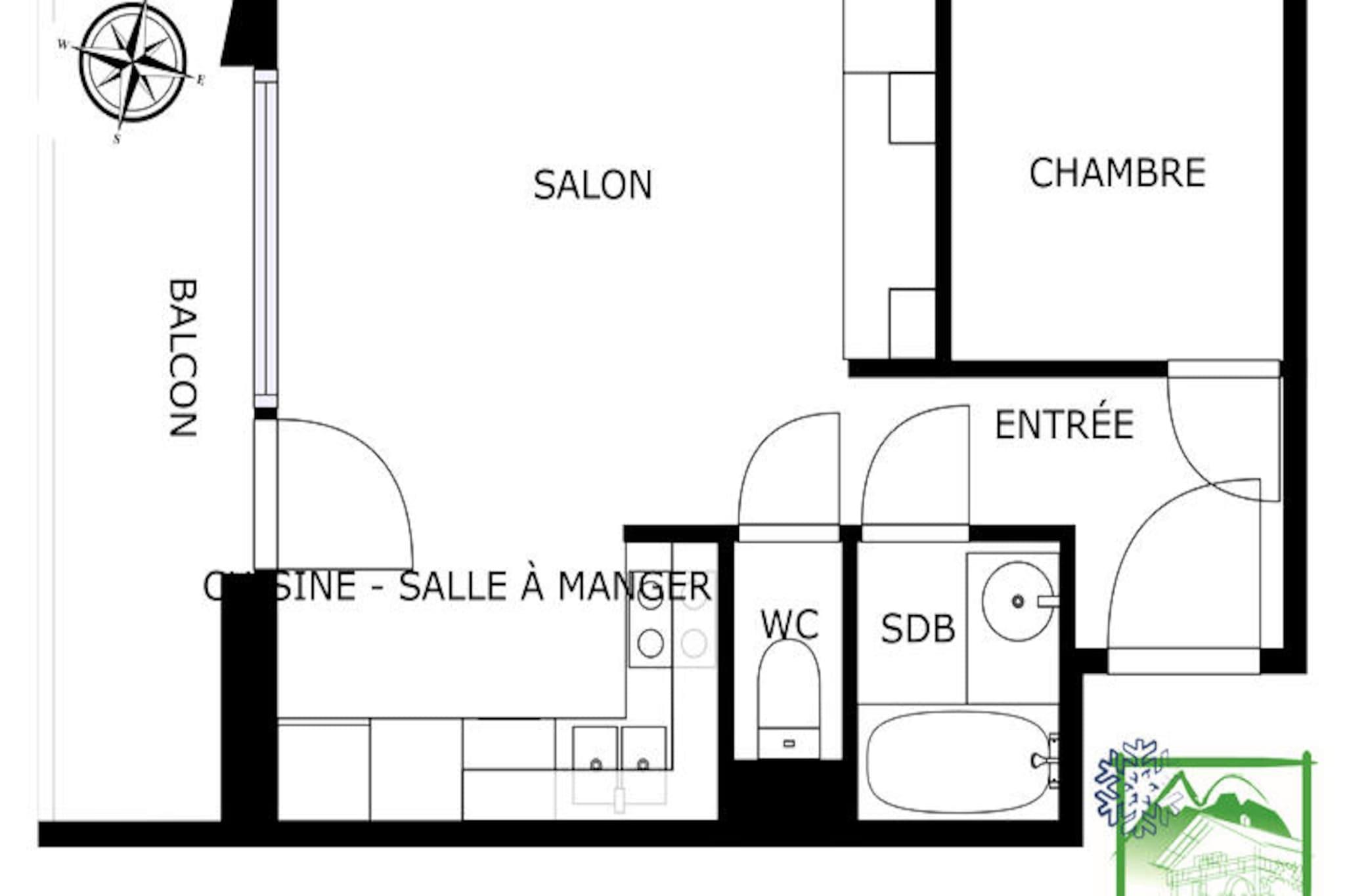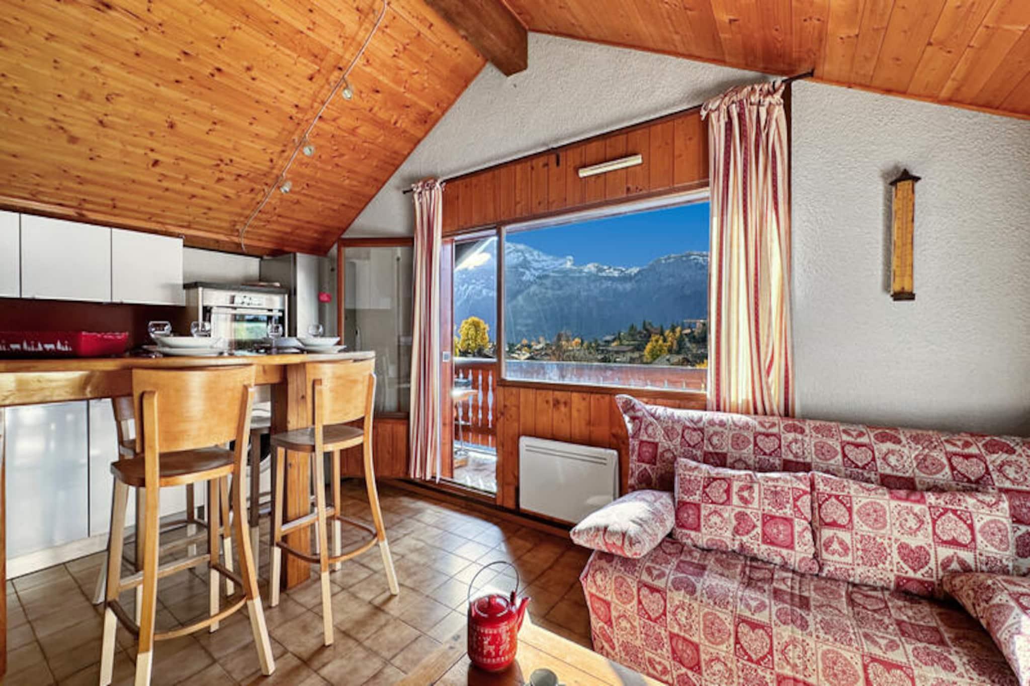 Højt over den travle landsbymidte ligger denne dejlige 2-værelses lejlighed på 4. sal i 'Le Mont Blanc A'-residensen, der tilbyder et roligt tilflugtssted med en betagende vestvendt udsigt over bjergene. Forestil dig at nippe til din morgenkaffe på balkonen, mens solen går ned over bjergtoppene, eller slappe af efter en dag med alpine eventyr i den hyggelige stue. Denne charmerende ejendom er perfekt placeret for at balancere komfort og ro og inviterer dig til at opleve det bedste af bjerglivet. \n\nLejligheden er designet til at rumme op til fem gæster og har et komfortabelt soveværelse med en dobbeltseng og en enkeltseng samt en stue med en dobbelt sovesofa. Det åbne køkken er fuldt udstyret med en multifunktionsovn, induktionskogeplade, køleskab, vaskemaskine og tørretumbler, hvilket sikrer, at du har alt, hvad du behøver for et behageligt ophold. Badeværelset har rigelig opbevaringsplads og en håndklædetørrer, mens et separat toilet bidrager til det praktiske. For ekstra bekvemmelighed er der et privat skirum og en individuel garage til rådighed, hvilket gør det til et ideelt valg for vintersportsentusiaster. \n\nBeliggende kun få skridt fra skibusstoppestedet har du nem adgang til pisterne og landsbyens livlige faciliteter. Udforsk den nærliggende skøjtebane, nyd familievenlige aktiviteter på 'La Souris Verte', eller slentre blot gennem de charmerende gader fyldt med butikker og restauranter. Uanset om du er her for at stå på ski, vandre eller bare slappe af, placerer denne lejlighed dig i hjertet af det hele. \n\nMed sin blanding af komfort, beliggenhed og fantastiske udsigt er denne ejendom den perfekte base for at skabe uforglemmelige minder i de franske alper.
