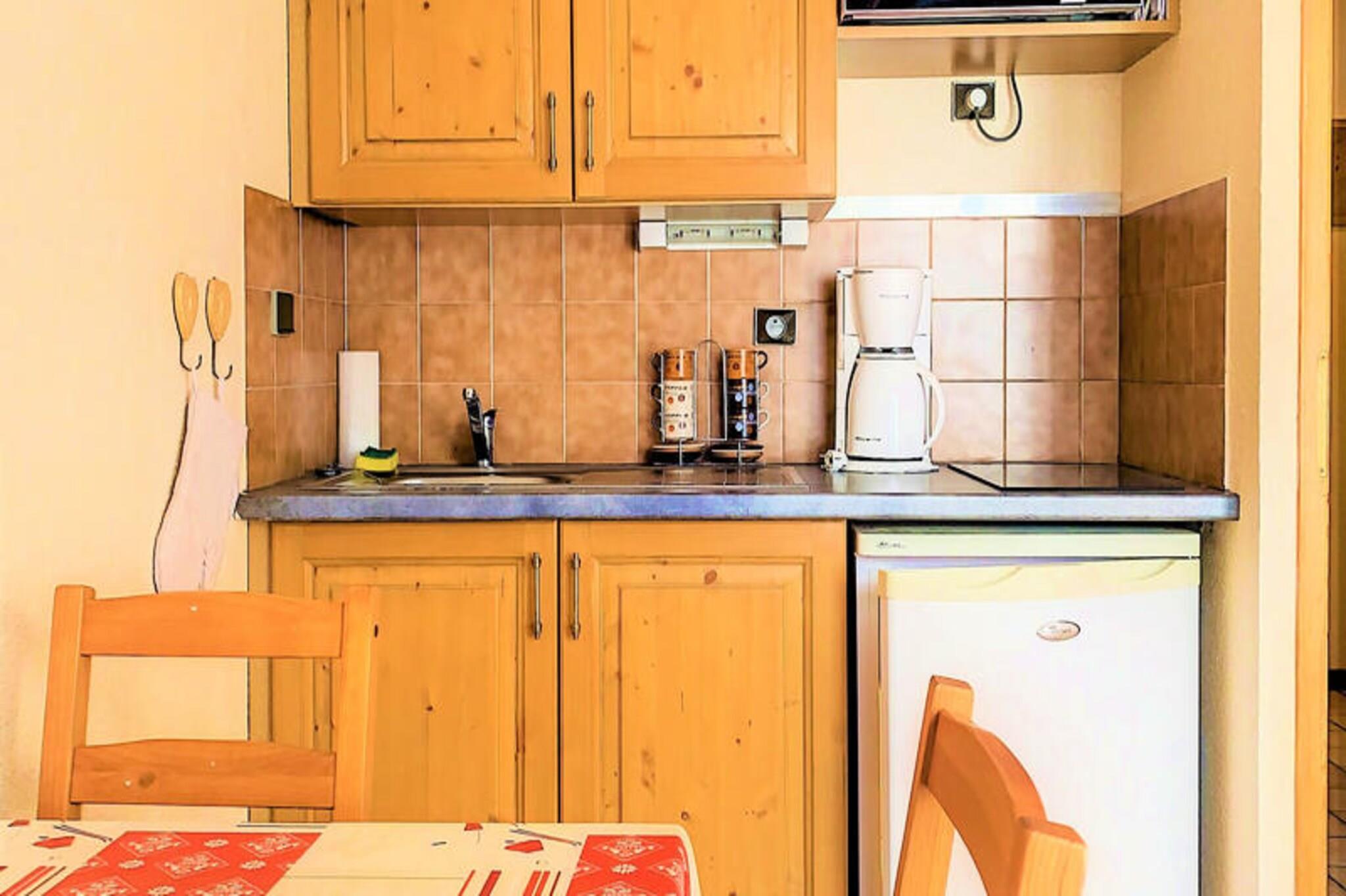 Denne charmerende studielejlighed har plads til op til 4 gæster, og byder på et hyggeligt soveområde med 2 køjesenge og en stue med en sovesofa til 2. Lejligheden er beliggende på 1. sal i en velholdt bolig med nem adgang via elevator . Det er kæledyrsfrit og ikke-ryger, hvilket sikrer et rent og behageligt miljø for alle gæster. Beliggende i centrum af landsbyen tilbyder lejligheden nem adgang til lokale faciliteter, med skibusstoppestedet kun 50 meter væk for hurtig transport til gondolen. Landsbyens centrum, kun 100 meter væk, er hjemsted for charmerende caféer, butikker og restauranter, der tilbyder en række aktiviteter og spisemuligheder. Du kan udforske det pulserende lokale marked, hvor du finder friske råvarer og regionale produkter, alt sammen inden for gåafstand. Lejligheden er udstyret med et tekøkken, herunder en multifunktionsovn, 2 vitro kogeplader og et køleskab. Det har også et brusebad og et separat toilet for ekstra bekvemmelighed. Gæsterne kan opbevare deres skiudstyr i det fælles skiskab i bygningen. Ejendommens gennemtænkte layout sikrer komfort og tilgængelighed under dit ophold.
