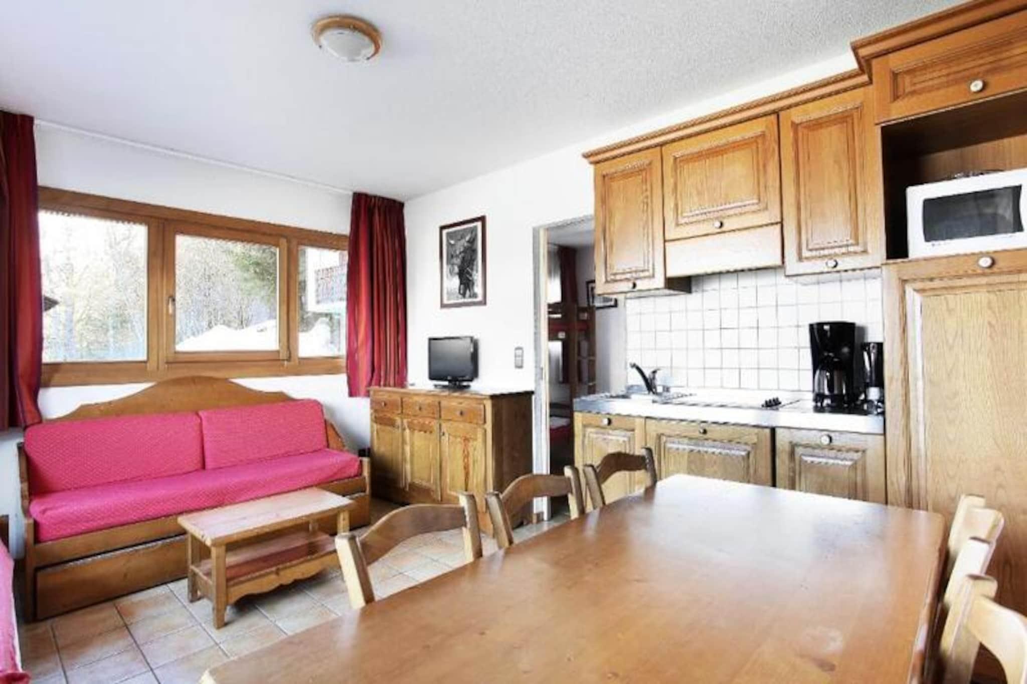 Denne hyggelige lejlighed, beliggende i hjertet af Les Carroz d'Arâches, tilbyder komfortabel indkvartering for op til 5 personer. Den har en stue med en udtræksseng til 2 og en sovesofa til 1. Et separat soveværelse indeholder en dobbeltseng (140 cm), mens et kabineområde med to enkeltkøjesenge er adskilt fra stuen med en dør. Lejligheden er kæledyrsvenlig og tillader et kæledyr pr. ophold mod et ekstra gebyr og inkluderer gratis sengetøj. Der opkræves et depositum og tillægsgebyrer for håndklæder og Wi-Fi. Les Carroz d'Arâches er et spændende feriested med aktiviteter for alle aldre. Om sommeren tilbyder boligen gratis guidede vandreture for at udforske områdets fantastiske naturlige skønhed. Resortet kan også prale af en skatepark, mountainbikestier, paragliding, swimmingpool, vandreture, ridning, klatring og white-water sport. Landsbyens centrum er tæt på, med butikker, caféer og restauranter, der tilbyder lokale retter og forfriskende drikkevarer for at forbedre dit ophold. Lejligheden er udstyret med tekøkken, perfekt til at tilberede dine måltider. Brusebadet har et toilet, og nogle lejligheder har separate toiletfaciliteter for ekstra bekvemmelighed. Et babysæt, inklusive en seng, badekar og høj stol, er tilgængeligt mod et ekstra gebyr. Boligen tilbyder også overdækket parkering mod et gebyr, hvilket sikrer et problemfrit ophold. Nyd de naturskønne omgivelser og alle de faciliteter, denne lejlighed har at byde på for en uforglemmelig ferie.