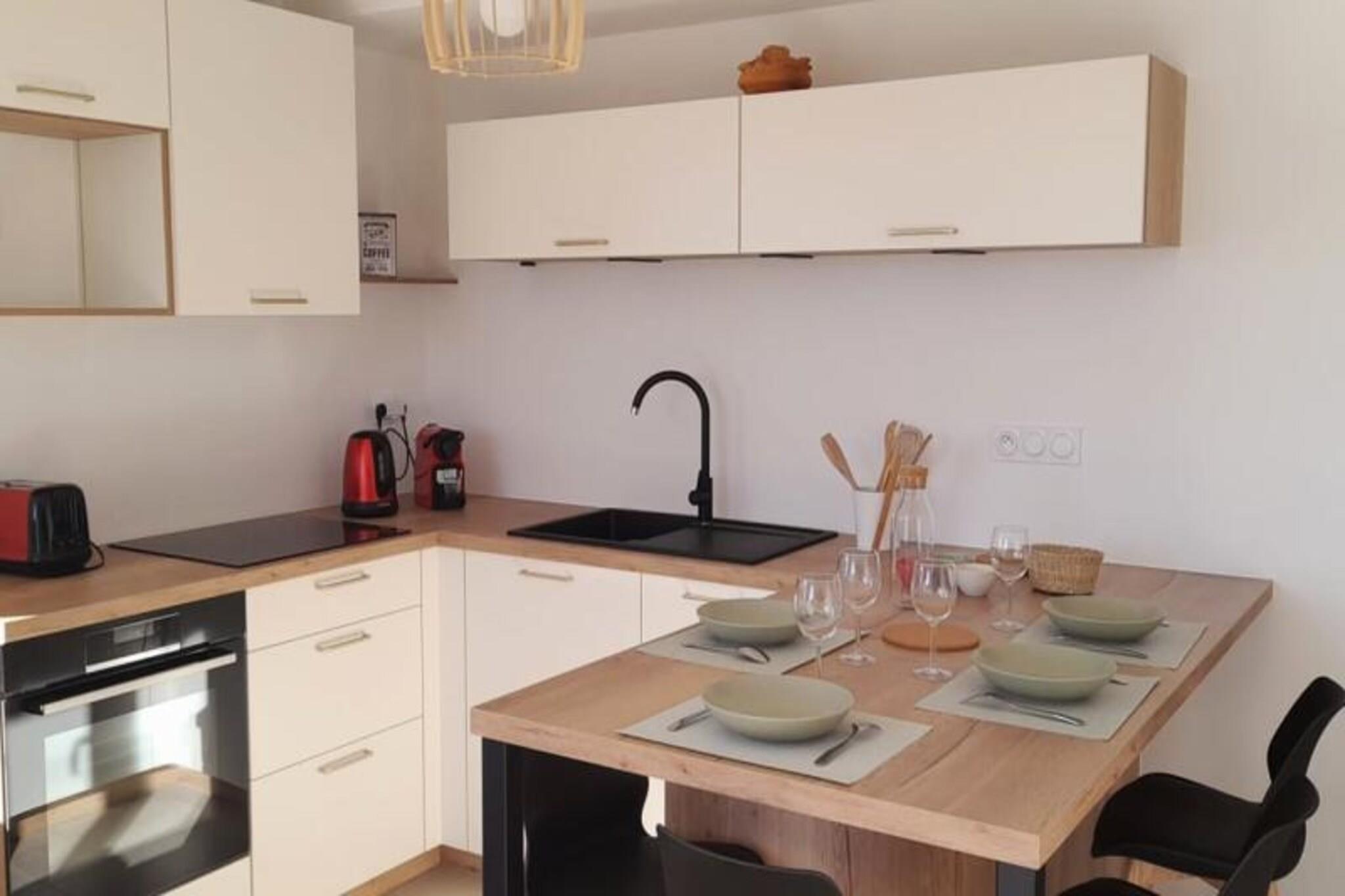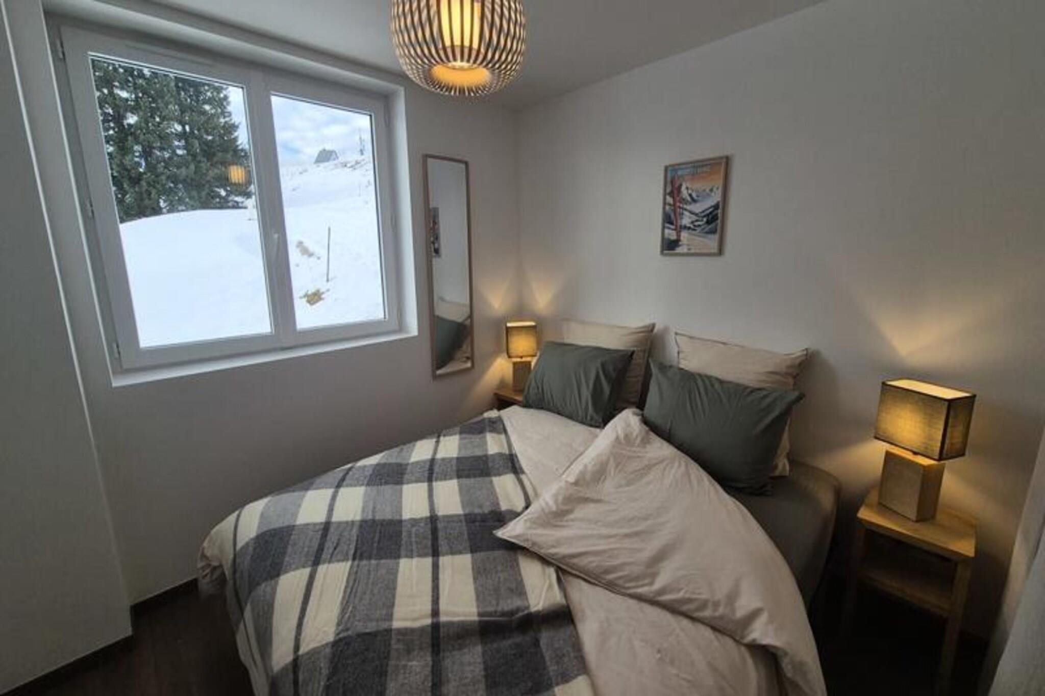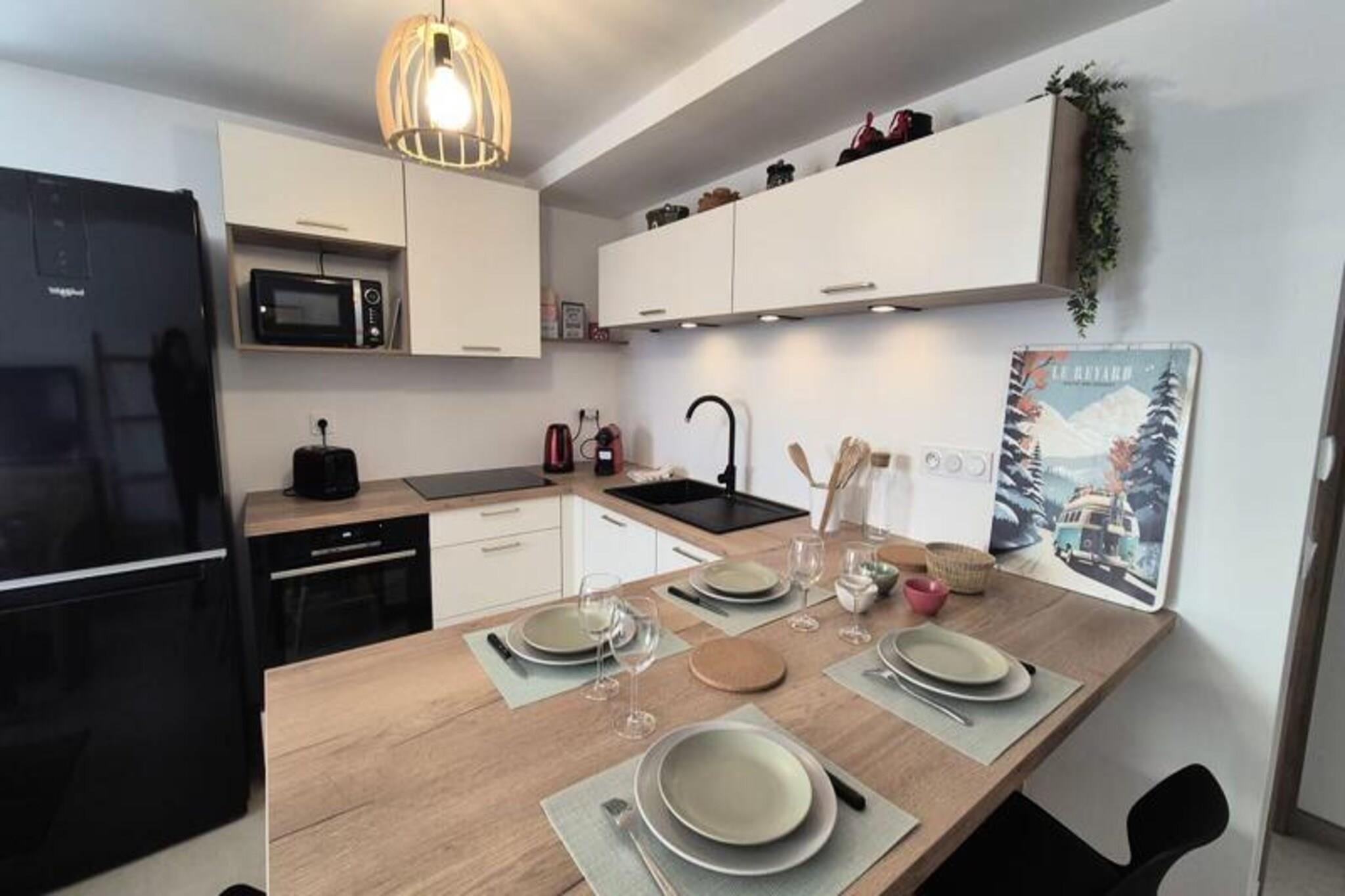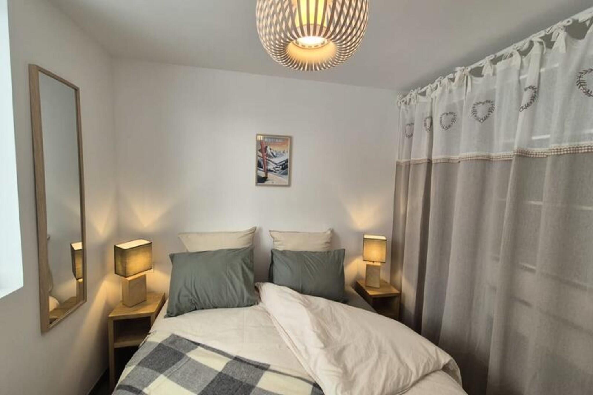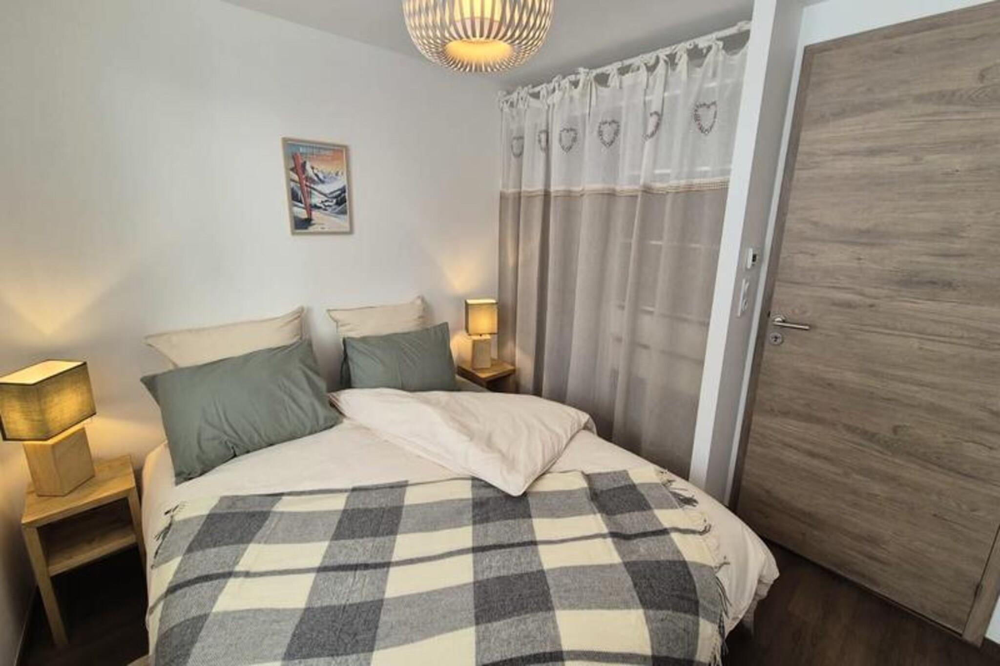 Denne hyggelige, nybyggede lejlighed tilbyder moderne bekvemmeligheder i en varm, indbydende atmosfære, perfekt til din ferie i bjergene. Den rummelige stue har masser af naturligt lys og suppleres af et fuldt udstyret køkken, ideelt til at tilberede et lækkert måltid efter en dag med eventyr. Soveværelset har en komfortabel queen-size seng, mens et separat bjerghjørne med køjesenge henvender sig til familier. Det spa-lignende badeværelse er udstyret med en italiensk bruser, hvilket sikrer afslapning efter udendørs aktiviteter. Denne kæledyrsvenlige lejlighed byder dine lodne venner velkommen til at deltage i det sjove. Denne lejlighed ligger kun 500 meter fra pisterne og tilbyder nem adgang til udendørs aktiviteter året rundt. Det pulserende lokale marked ligger kun 5 minutters gang derfra, og tilbyder friske råvarer og regionale specialiteter. Du kan også udforske nærliggende caféer og restauranter, perfekt til at slappe af eller nyde en varm drink efter at stå på ski. For dem, der ønsker at nyde skønheden i Mont Blanc, er panoramaudsigten fra lejlighedens terrasse et absolut must-see. Yderligere faciliteter inkluderer et privat, velholdt vaskerum og nem parkering ved foden af ??boligen, hvilket sikrer problemfri adgang. Med alt hvad du behøver for et behageligt ophold, giver denne lejlighed både afslapning og eventyr, hvilket gør den til en ideel base for dit bjergretræte. Uanset om du tilbereder dine yndlingsretter eller blot nyder udsigten, tilbyder det en perfekt blanding af bekvemmelighed og charme.