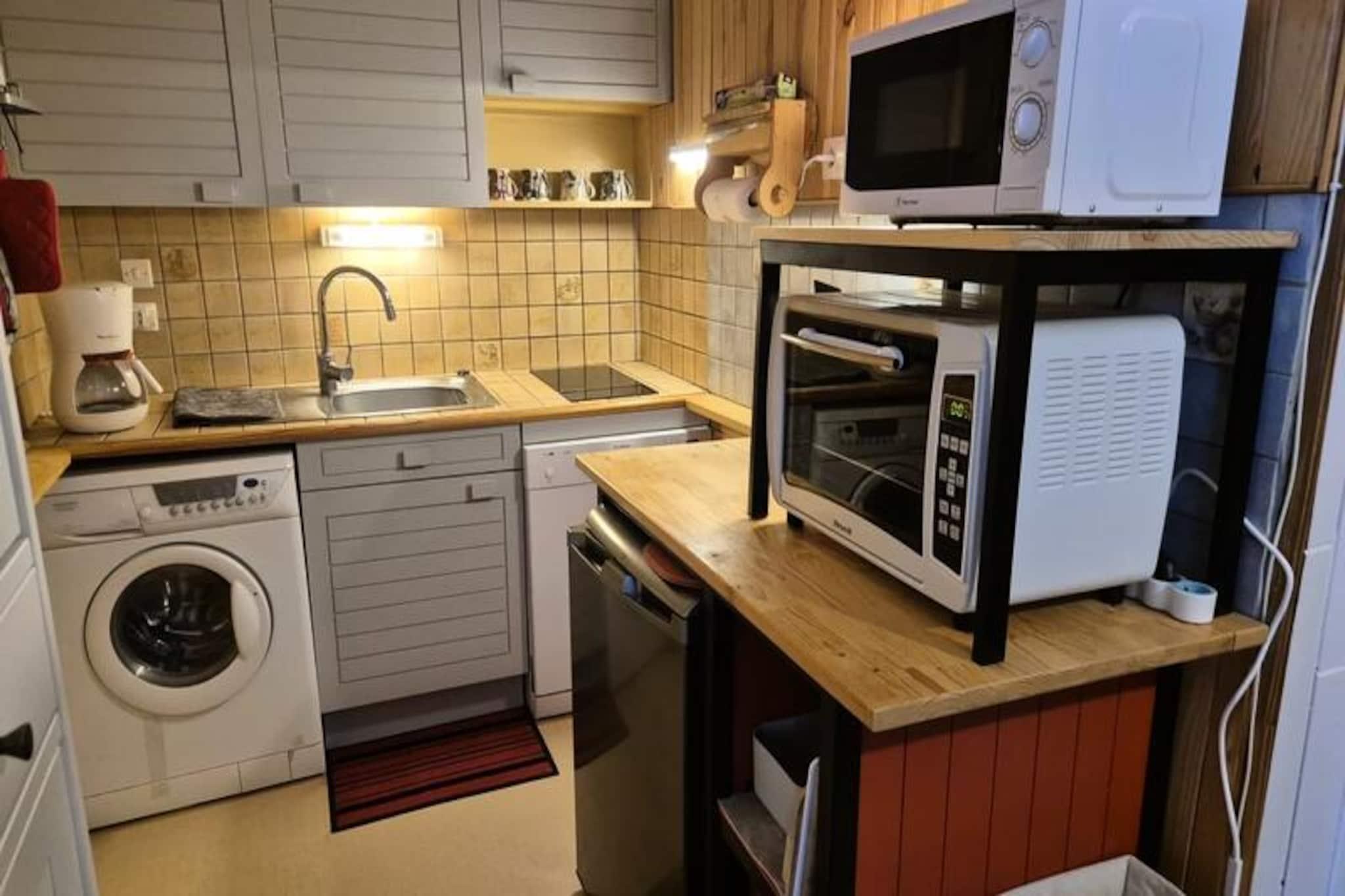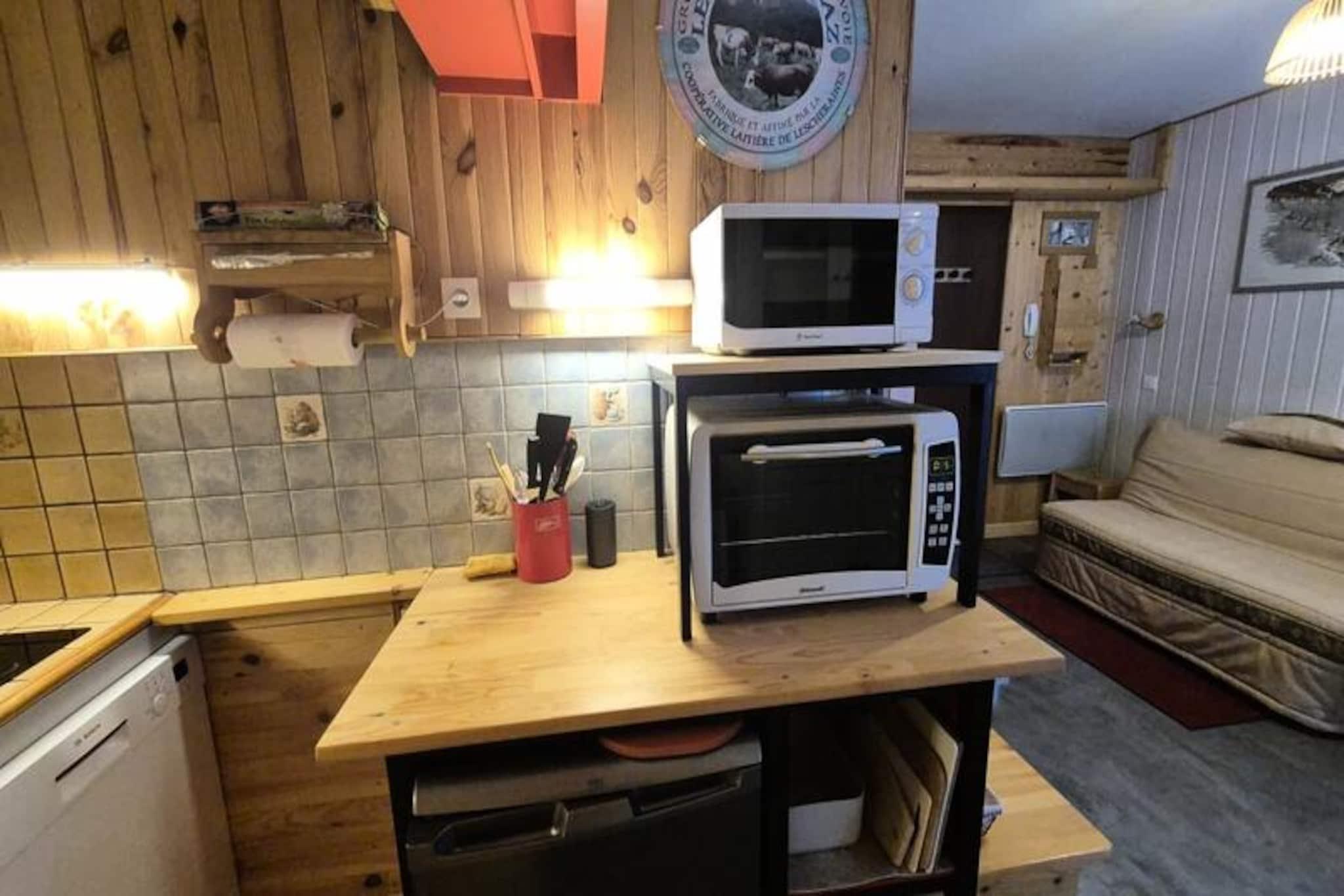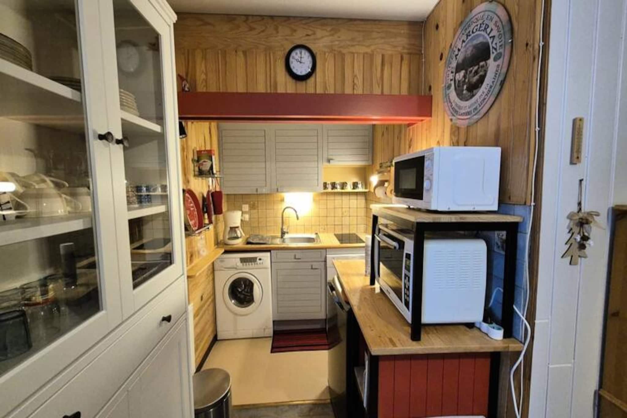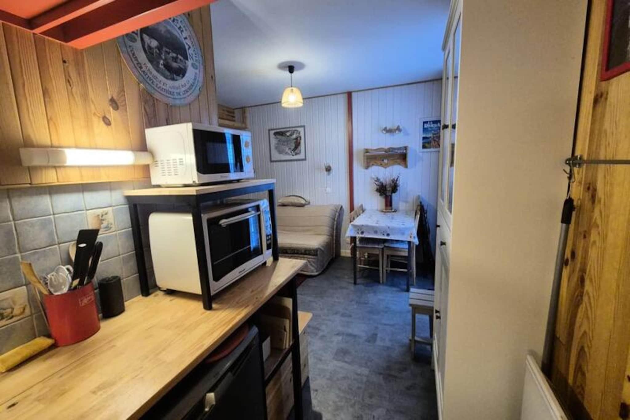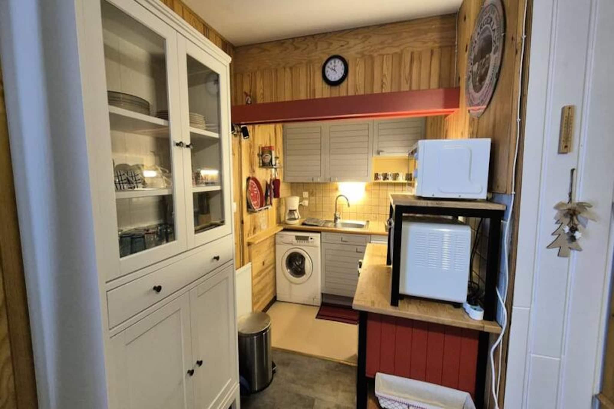 Denne hyggelige etværelses lejlighed er perfekt til familier eller små grupper, og tilbyder et behageligt opholdsrum. I stuen er der en sovesofa til to, mens soveværelset er udstyret med en udtræksseng til to og en enkelt køjeseng. Et lille kontorområde er inkluderet for ekstra bekvemmelighed. Lejligheden er kæledyrsvenlig, så du kan tage dine lodne ledsagere med på dit ophold. Lejligheden er ideelt beliggende ved foden af ??pisterne, kun et stenkast fra skiskolen, børnehaven, sportsforretningen og en lille købmand. Det er et fremragende valg for dem, der ønsker hurtig adgang til skiløb uden besværet med lange gåture. Nærheden til cafeer, butikker og andre faciliteter gør det nemt at nyde alt, hvad området har at byde på. Indvendigt har lejligheden et fuldt udstyret køkken med vigtige apparater såsom kogeplader, mikroovn, køleskab og kaffemaskine. Det lyse og funktionelle design sikrer et behageligt ophold med alle de nødvendige faciliteter til madlavning og afslapning.