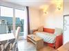 Åbent køkken(elkedel, kaffemaskine, mikrobølgeovn, opvaskemaskine , køleskab, fryser, ), stue / spisestue(dobbeltsovesofa, Fjernsyn, spisebord), soveværelse(enkeltseng, enkeltseng), sovekabine(køjeseng), badeværelse(badekar, håndvask, toilet), Havemøbler, balkon, swimmingpool(deles med andre gæster), føntørrer