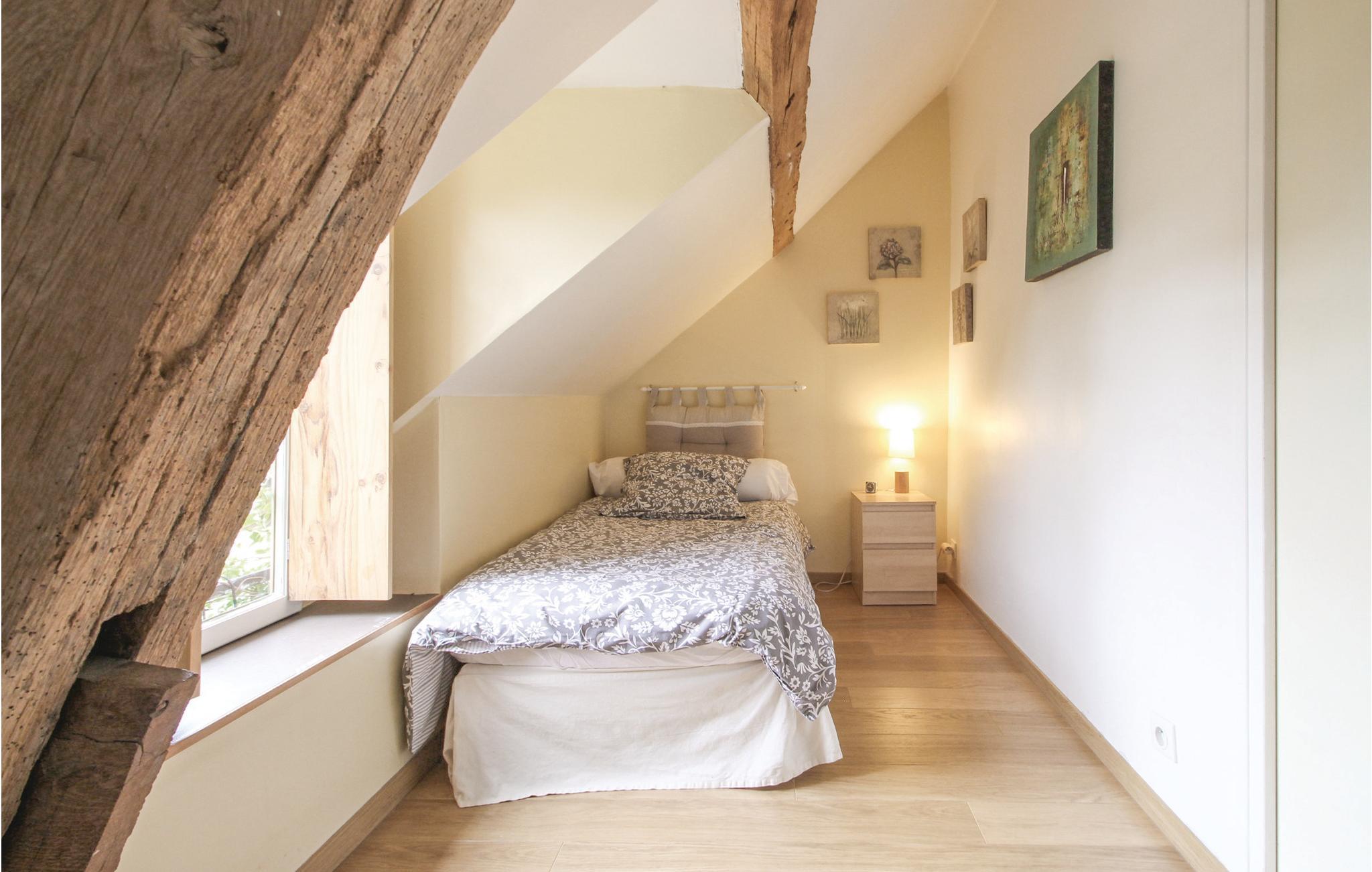 Dette feriehus ligger ved bredden af Eure, og er perfekt til en familieferie i en region, der byder på lidt af hvert. Huset har en rolig beliggenhed på en stor, velholdt havegrund, der deles med husejeren, 15 km syd for Rouen. Hvert soveværelse i huset har eget bad. Slap af på den dejlige terrasse eller i haven. Lystfiskere kan glæde sig over den korte afstand til floden Eure. Der er ganske kort afstand til en skov, hvor I kan gå skønne spadsereture, og 1,7 km væk ligger et dejligt rekreativt område, hvor I kan tage på picnic og dyrke forskellige former for vandsport.
