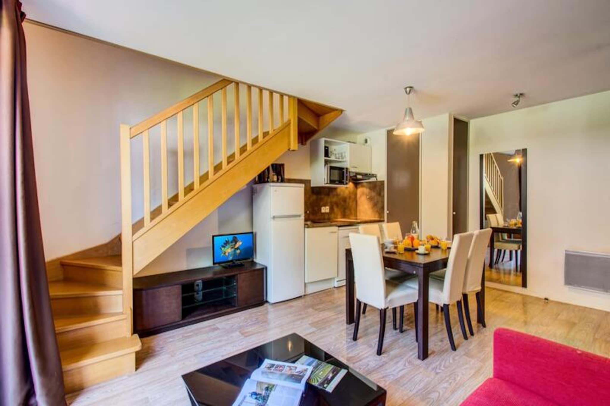 Omgivet af den fredfyldte skønhed i La Féclaz, ofte omtalt som 'Lille Savoyard Canada', tilbyder denne charmerende residens et roligt tilflugtssted kun 200 meter fra feriestedets centrum. Uanset om du søger eventyr på pisterne eller en fredelig flugt i bjergene, kombinerer denne destination det bedste fra begge verdener med betagende alpine landskaber og en indbydende familievenlig atmosfære. Vågn op til frisk bjergluft og løftet om uforglemmelige dage med at udforske Grand Revard-skiområdet, der kan prale af næsten 200 km pister til både alpint og langrend. Perfekt til at opdage glæderne ved vintersport, herunder den unikke oplevelse af langrend.\n\nVacancéole Les Balcons d'Aix-residensen er omhyggeligt designet til komfort og afslapning. Rummelige lejligheder har plads til op til syv gæster og omfatter en hyggelig stue med sovesofa, et tekøkken, et soveværelse med dobbeltseng, en alkove med køjesenge og en balkon, hvor man kan nyde udsigten. Efter en dag med eventyr kan du slappe af i den opvarmede indendørs swimmingpool eller forkæle dig selv med wellness-området med sauna og hammam. Familier vil sætte pris på morgenmadsservicen, der sikrer, at alle starter dagen med energi, med gratis morgenmad til børn under fire år.\n\nBeliggende kun få skridt fra feriestedets centrum finder du nem adgang til skilifte, lokale butikker og spisesteder. Om sommeren forvandles området til et paradis for vandreture og mountainbiking, med stier, der viser Savoies fantastiske naturlige skønhed. Uanset om du er her for vinterspænding eller sommerro, lover La Féclaz en uforglemmelig alpin flugt for alle aldre. Skab minder i dette idylliske bjergparadis, hvor hver eneste detalje er udformet til din komfort og nydelse.
