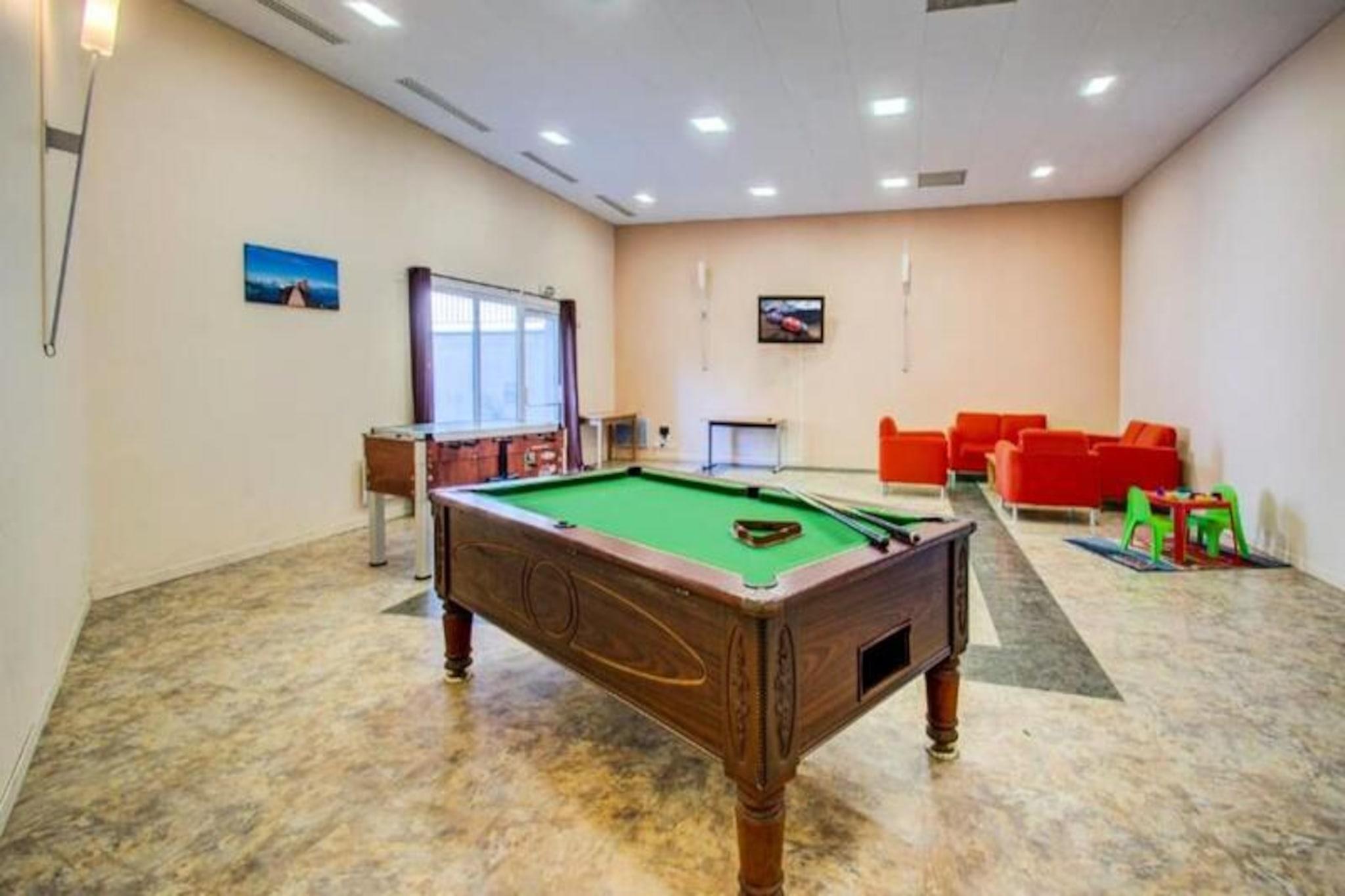 Denne charmerende studiolejlighed er perfekt til to personer og byder på en hyggelig og indbydende atmosfære. Det inkluderer en sovesofa med en komfortabel madras, et fjernsyn og en babyseng, hvilket gør den ideel til par med et lille barn. Lejligheden er fri for kæledyr og tilbyder væsentlige faciliteter såsom sengetøj og håndklæder, klar ved ankomsten. Beliggende i hjertet af feriestedet La Féclaz tilbyder lejligheden nem adgang til både nordiske og alpine skiløjper, ideel for vintersportsentusiaster. Resortet har også en række vandrestier, hvilket gør det til en fantastisk destination året rundt. Ud over at stå på ski kan du nyde lokale butikker, caféer og en pulserende bjergatmosfære. Lejligheden er udstyret med et lille køkken, herunder kogeplader, mikroovn, kedel, kaffemaskine og alle nødvendige redskaber til selvforplejning. Badeværelset har et badekar til din afslapning. Boligen tilbyder yderligere faciliteter såsom en opvarmet indendørs swimmingpool (sæsonåben), et wellness-område med sauna og hammam (mod betaling) og et spillelokale med billard og bordfodbold for ekstra underholdning.