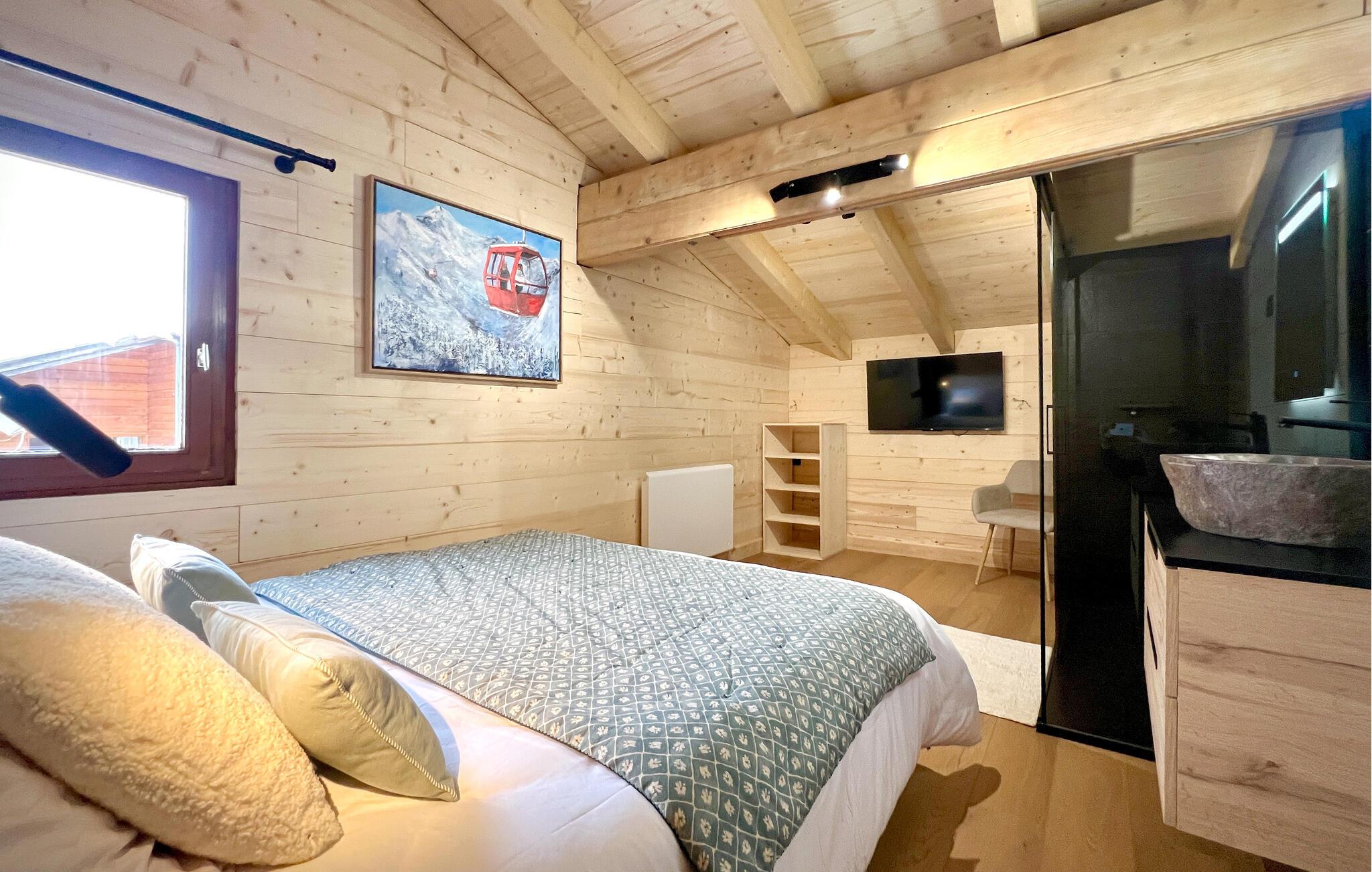 Dette rummelige feriehus kombinerer rustik charme med elegante møbler og omhyggeligt udvalgte detaljer, hvilket skaber en atmosfære af fred, stil og velvære. Den hyggelige opholdsstue, en varm pejs og det moderne, fuldt udstyrede køkken gør huset til et sted, hvor I vil føle jer helt hjemme. Uanset om I læser, tilbereder lækre måltider eller samles til en spilleaften - kan I designe jeres fritid præcis, som I vil.