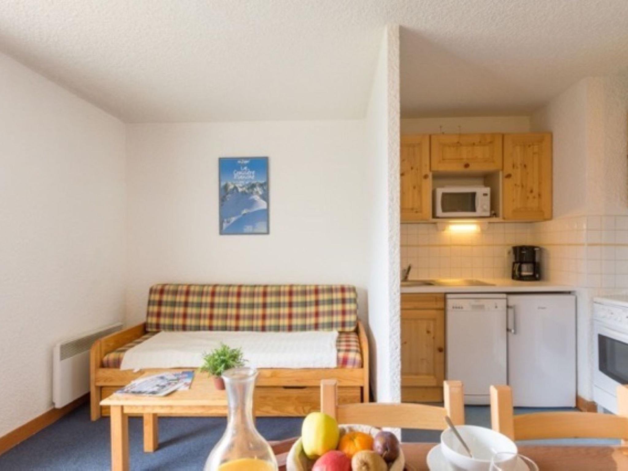 "Cote Brune 5", 1-room studio 30 m2 on 4th floor. Object suitable for 4 adults. Living room with 2 sofabeds and 1 x 2 bunk beds, TV. Kitchen (2 hot plates, oven, dishwasher, microwave, electric coffee machine). Bath/WC. Balcony. View of the mountains. Parking (roofed, 1 car). Please note: non-smokers only. 1 pet/ dog allowed. Smoke alarm. Offer by a commercial proprietor according to Art. 155, IV, CGI 38253003379DP