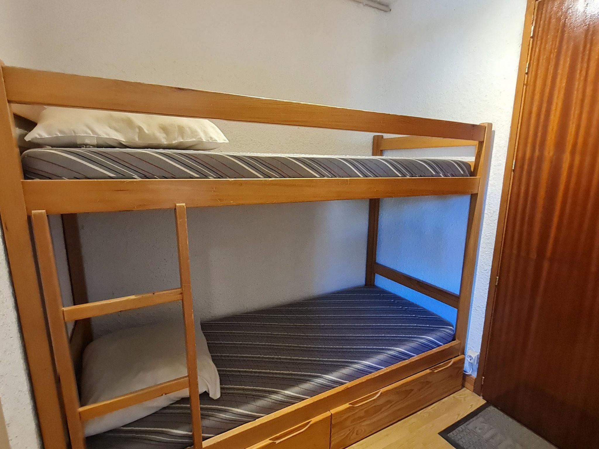 "St Christophe", 1-room studio 18 m2 on 2nd floor. Object suitable for 4 adults. Living room with 1 sofabed and 1 x 2 bunk beds, 1 pull-out bed and TV. Kitchen (2 hot plates, toaster, kettle, microwave, electric coffee machine). Shower/WC, sep. WC. Please note: non-smokers only. Offer by a commercial proprietor according to Art. 155, IV, CGI 38253003804AK