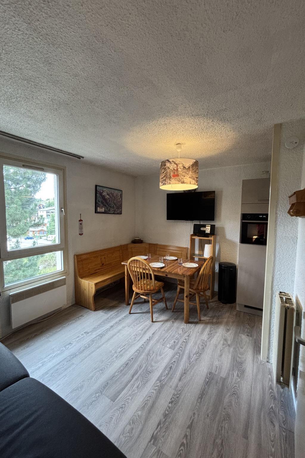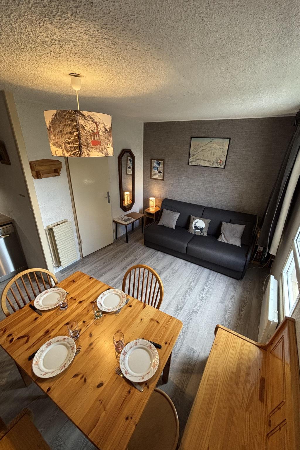 "Champamé", 1-room studio 23 m2 on 4th floor. Object suitable for 4 adults. Living room with 1 sofabed and 1 x 2 bunk beds, 1 pull-out bed and TV. Kitchen (2 hot plates, oven, toaster, kettle, microwave, electric coffee machine). Shower/WC. Please note: non-smokers only. Smoke alarm. Offer by a commercial proprietor according to Art. 155, IV, CGI 38253003489MX