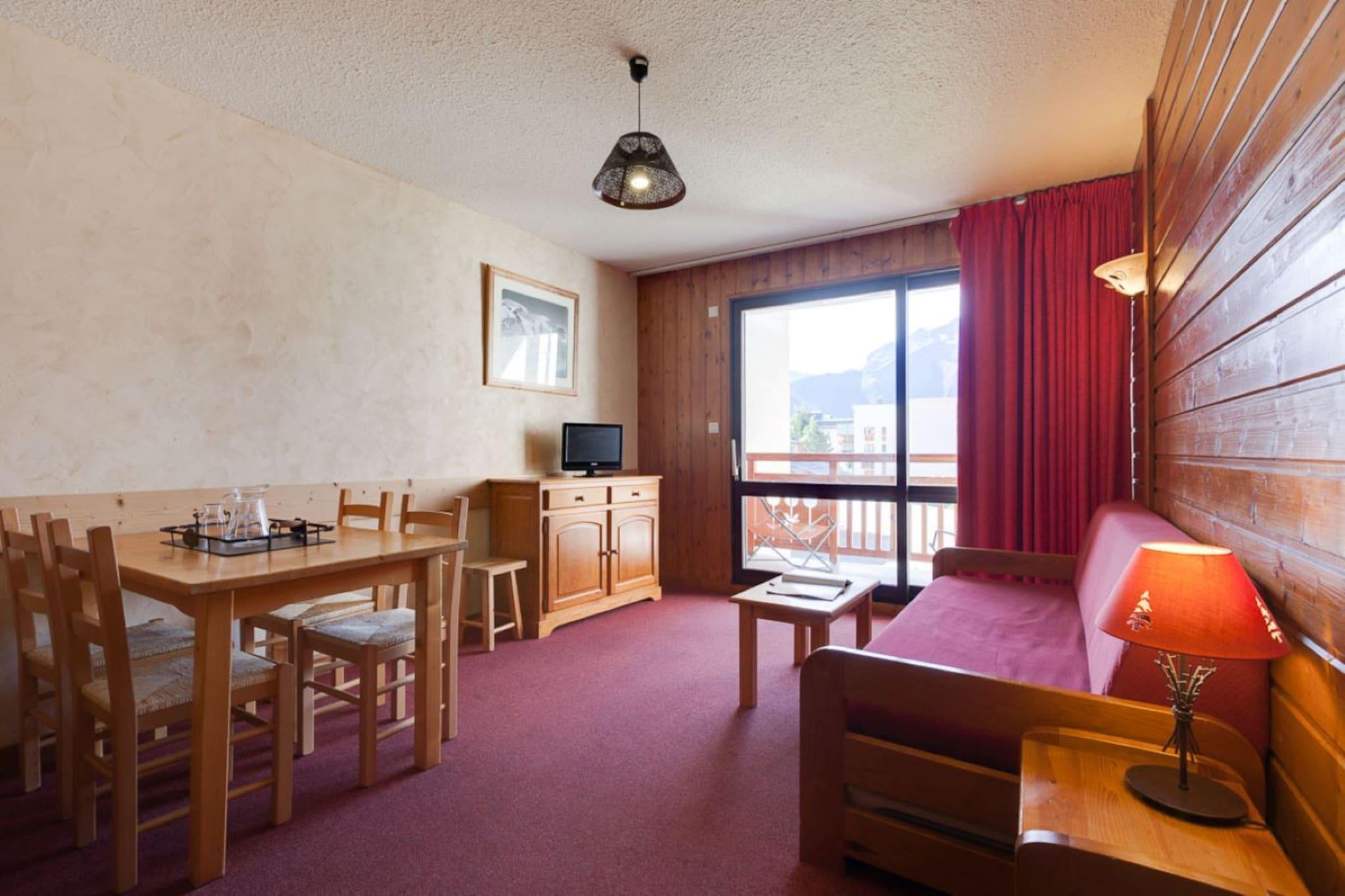 Velkommen til din perfekte alpine ferie! Denne rummelige studio på 33 m² kan komfortabelt rumme op til fire gæster og er beliggende i en fredfyldt, familievenlig bjergzone. Uanset om du er her for eventyr eller ro, finder du begge lige uden for din dør. Betagende udsigt og førsteklasses beliggenhed Nyd din morgenkaffe eller aftenvin på den private balkon, hvor panoramaudsigt over bjergene sætter tonen for et afslappende ophold. Beliggende kun 50 meter fra skisportsstedet, har du ubesværet adgang til skiløb og snowboard i verdensklasse. Komfort møder bekvemmelighed Studiets varme og indbydende interiør er gennemtænkt designet til komfort og funktionalitet. Det fuldt udstyrede elektriske køkken omfatter køleskab, mikroovn, ovn, opvaskemaskine, kaffemaskine og alt det nødvendige til hjemmelavede måltider. Ideel til par og familier Uanset om I er et par, der søger et romantisk tilflugtssted eller en lille familie klar til sneklædte eventyr, tilbyder dette studie den perfekte blanding af hyggeligt ophold og udendørs spænding.