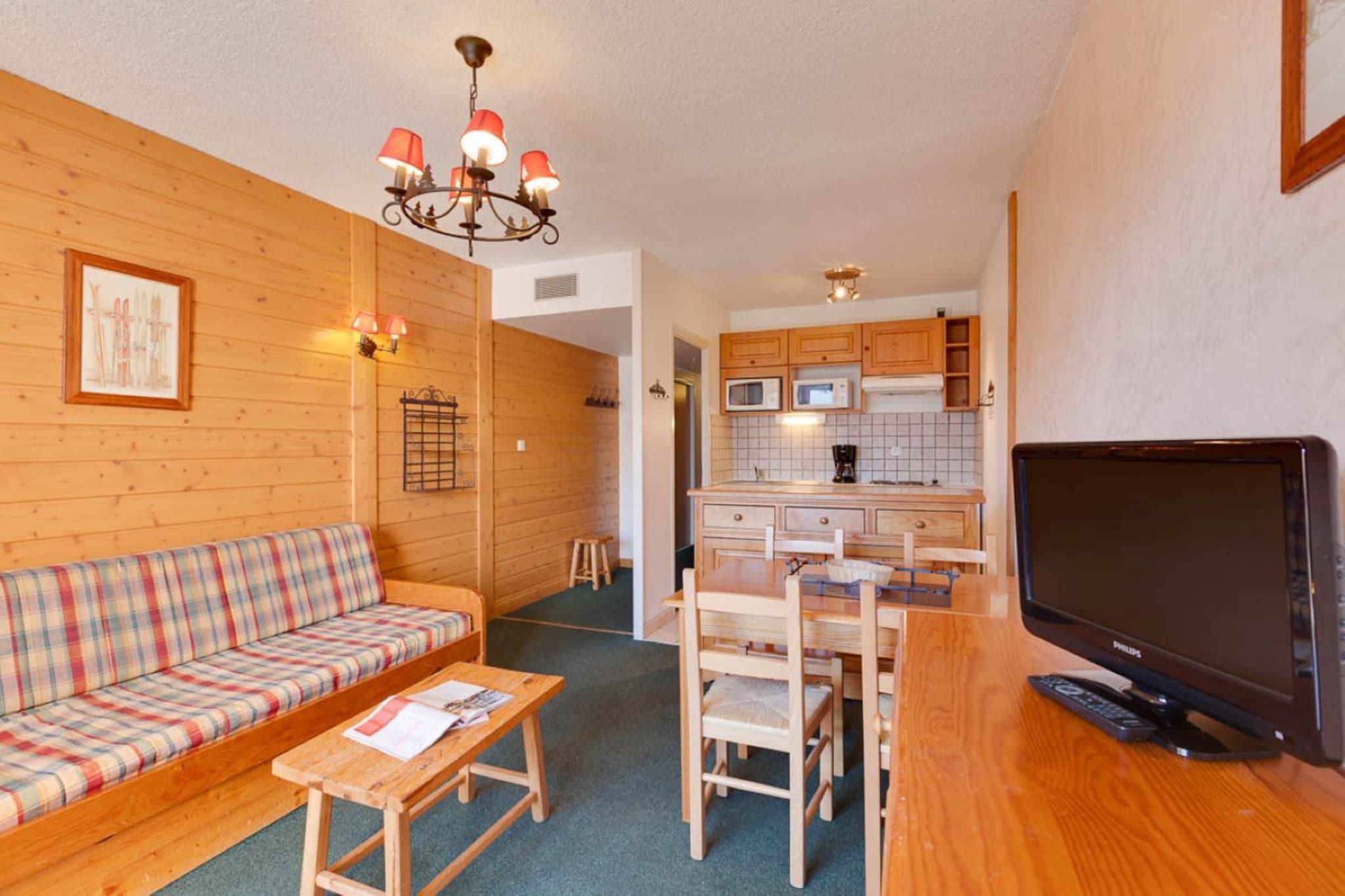 Denne komfortable og lyse studio tilbyder 33 m² velindrettet boligareal, perfekt til op til fire gæster. Med en fantastisk udsigt over bjergene er studiet beliggende i en familievenlig zone i et malerisk bjergområde, hvilket gør det til et ideelt valg for dem, der søger både afslapning og eventyr. Studiet har en privat balkon, hvor du kan nyde den friske bjergluft og naturskønne omgivelser. Beliggende kun 50 meter fra skisportsstedet giver studiet nem adgang til skiløb og snowboarding, hvilket gør det perfekt til vintersportsentusiaster. Dens førsteklasses beliggenhed tilbyder også et fredeligt og familievenligt miljø, ideelt til at slappe af efter en dag med udendørs aktiviteter. Det elektriske køkken i åbent plan er fuldt udstyret med køleskab, mikroovn, ovn, opvaskemaskine, kaffemaskine og væsentligt køkkenudstyr, hvilket sikrer at du har alt hvad du behøver for at tilberede måltider under dit ophold. Studiet har også et tv og en elevator for ekstra bekvemmelighed. Med sine moderne bekvemmeligheder, fantastiske beliggenhed og hyggelige atmosfære er denne studio den perfekte base for dit bjergtilflugtssted.