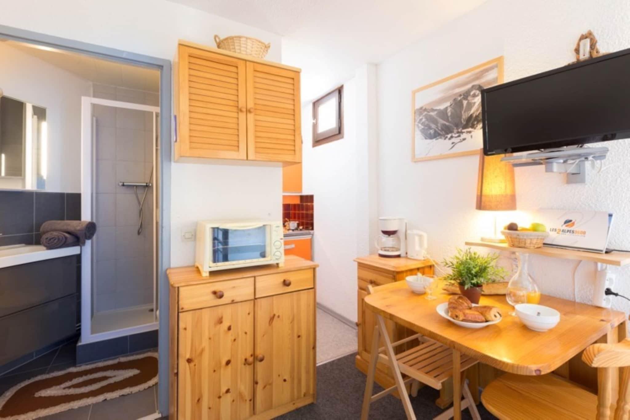 Beliggende 300 meter fra skiområdet og kun 500 meter fra det nærmeste supermarked, tilbyder denne femte sals lejlighed ved Rue des Sagnes – Entrée B et hyggeligt og veludstyret oase for par eller små familier. Med elevatoradgang og en privat balkon er det perfekt til gæster, der søger både bekvemmelighed og komfort i hjertet af Les Deux Alpes. Stuen har en dobbelt sovesofa og et tv, mens køkkenet har en brødrister, kaffemaskine, mikroovn, køleskab og alt nødvendigt service og bestik - ideel til at tilberede måltider efter en dag på pisterne. Et brusebad på badeværelset giver en forfriskende afslutning på dine alpine eventyr. Denne lejlighed er også kæledyrsvenlig, hvilket gør den til et godt valg for rejsende, der medbringer deres lodne ledsagere. Uanset om du er her for at stå på ski, snowboarde eller blot nyde bjergluften, tilbyder Apartment 1501 en indbydende og velbeliggende base.