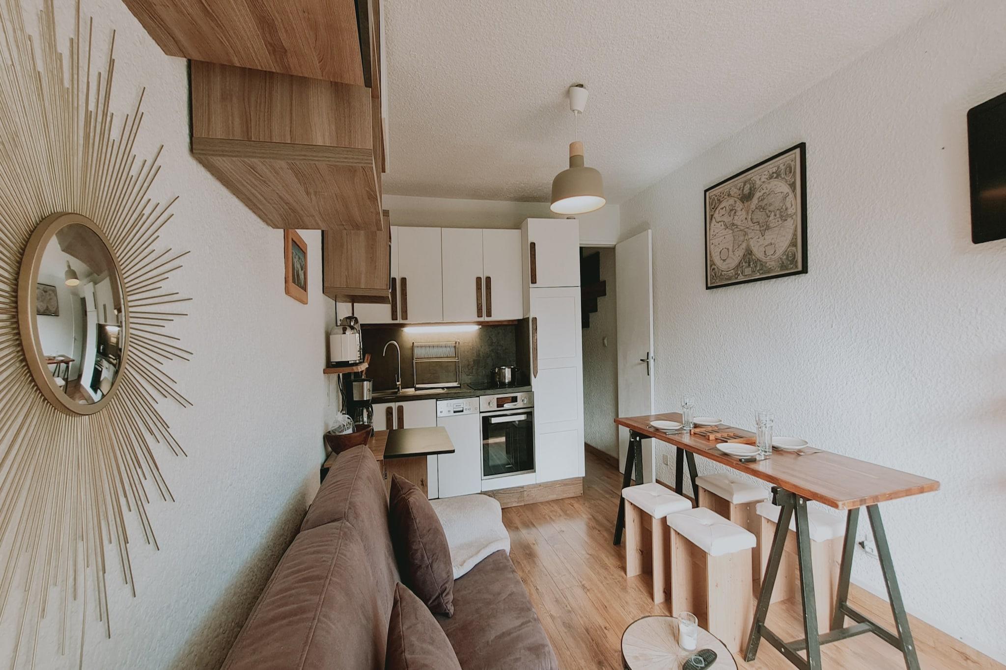 Denne lejlighed på 2 Place des Alpes i Résidence Meijotel ligger kun 20 meter fra skiområdet og 100 meter fra både byens centrum og supermarkedet og tilbyder uovertruffen bekvemmelighed for gæster, der ønsker at maksimere deres tid på pisterne og nyde det pulserende hjerte af Les Deux Alpes. Med elevatoradgang og en privat balkon er den ideel til par, familier eller små grupper, der søger komfort og tilgængelighed. Stuen har en dobbeltseng, en dobbelt sovesofa og et tv, mens køkkenet er fuldt udstyret med en elkedel, brødrister, kaffemaskine, ovn, mikroovn, køleskab, fryser og alt nødvendigt service og bestik - perfekt til selvforplejning. En vaskemaskine tilføjer ekstra bekvemmelighed ved længere besøg. Gæsterne kan slappe af i badeværelsets badekar, nyde frisk bjergluft fra balkonen og gøre brug af den medfølgende hårtørrer. Uanset om du er her for at stå på ski, vandre eller blot slappe af i alpine omgivelser, tilbyder denne lejlighed et stilfuldt og funktionelt tilflugtssted.