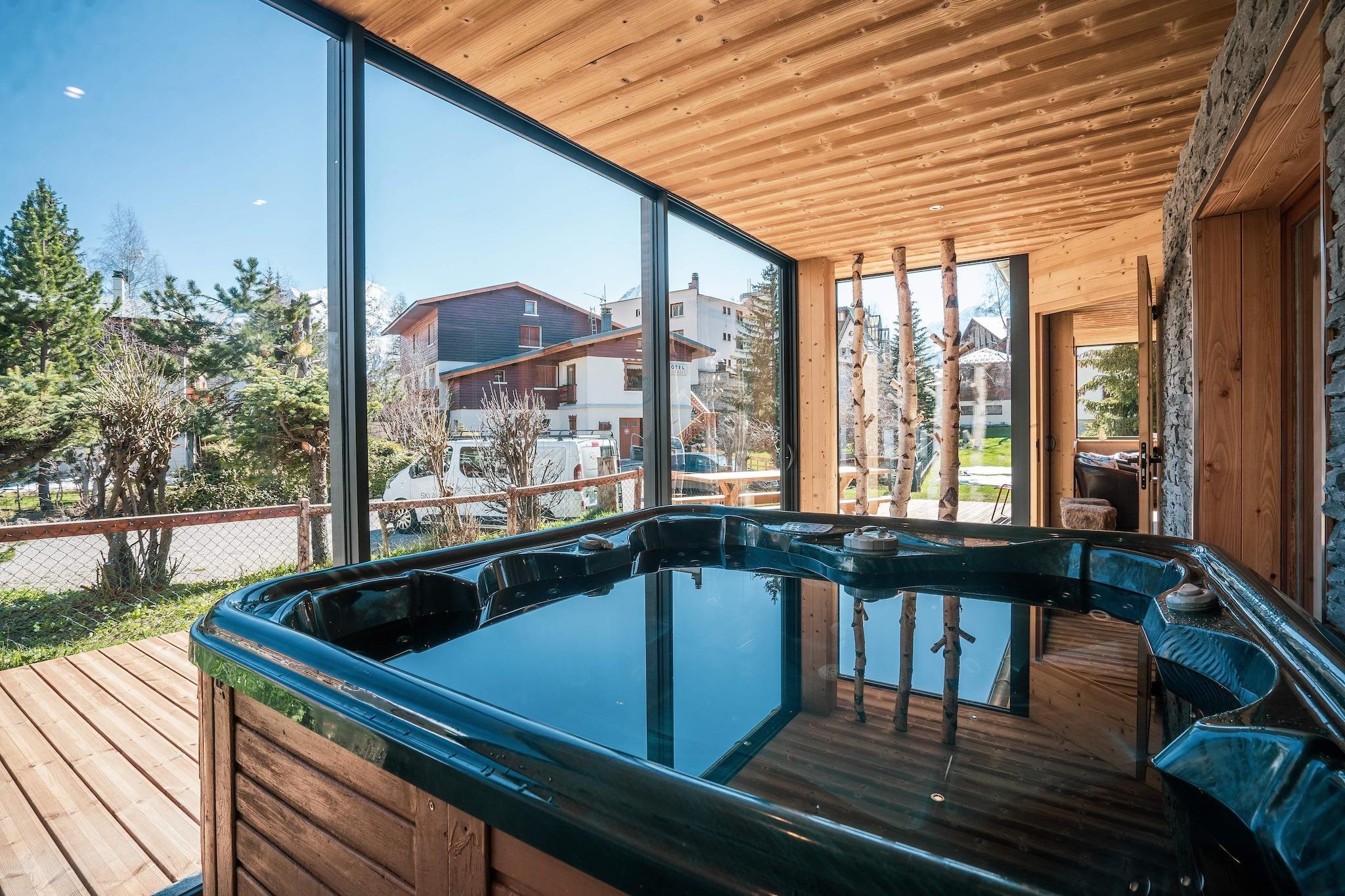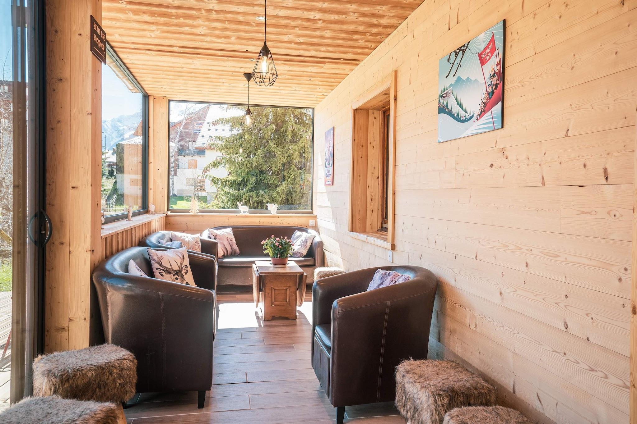 Chalet Le Sabot de Venus er en rummelig hytte, centralt beliggende i vintersportsmekkaet Les Deux Alpes. Der er forarbejdet meget træ både ude og inde, hvilket skaber en masse stemning. Spabadet på terrassen garanterer et afslappende ophold.Den nærmeste Grand Viking (slæbebåd) lift starter næsten ved siden af hytten. Skibakken ligger ca. 80 m fra hytten. Vil du helst ikke gå? Bussen til pisterne kører ca. 20 m fra hytten. Adskillige restauranter, barer og butikker ligger også inden for gåafstand fra hytten (ca. 200 m). Det store skiområde i Les Deux Alpes byder på mange muligheder for vintersportsentusiaster på alle niveauer. Der er i alt 229 km pister og mere end 50 skilifter for alle niveauer. Det har en høj snegaranti og byder på mange solskinstimer på grund af sin sydlige beliggenhed.Chalet Le Sabot de Venus har tre etager og er omgivet af en stor have (600 m2). I stueetagen finder du to soveværelser med en 2-pers. seng og badeværelse med bruser eller badekar og toilet. På første sal har hytten en stue med opholdsstue og tv samt spiseplads. Køkkenet er udstyret med ovn, mikroovn, opvaskemaskine, kaffemaskine, køleskab, fryser, raclettegrill, brødrister og elkedel. Derudover finder du tre soveværelser med en 2-pers. seng og badeværelse med bruser og toilet. Fra nogle soveværelser er der udgang til altan. Du kan også vaske tøj i vaskerummet. På anden sal har Chalet Le Sabot de Venus yderligere tre soveværelser med en 2-pers. seng og badeværelse med bruser og toilet. Der er plads til tre biler på de private parkeringspladser ved hytten, du kan nemt opbevare dine ski i skiopbevaringsrummet.