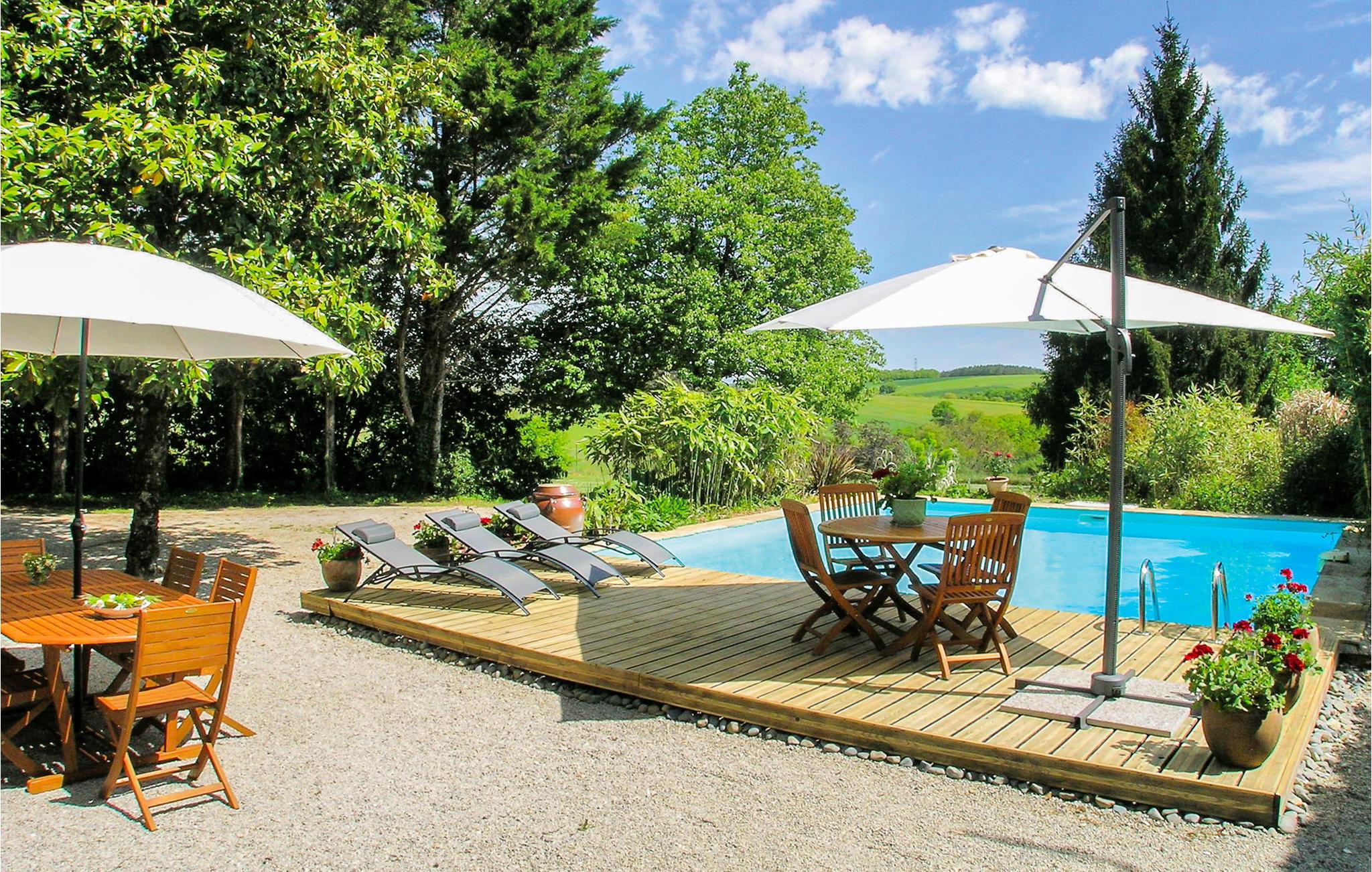 Dette skønne feriehus af sten har sin helt private pool og have og ligger på ejers vidtstrakte grund. Da den ligger højt, er der en skøn vid udsigt ud over den skovbeklædte dal helt til Montignac, som er kendt for hulerne i Lascaux, der uanset årstid er en betagende oplevelse. Huset er indbydende indrettet med en harmonisk blanding af det traditionelle stenhus og det moderne interiør med brug af glas og sten. I bor i hjertet af Périgord Noir ikke langt fra Sarlat med middelaldercharme og en dejligt ugemarked hvor I kan købe produkter og souvenirs fra Dordogne. Her er aktivitetsmuligheder for alt og alle: kano- og cykeludlejning, vandre, ride og et væld af gode restauranter langs Vézère, fx i Montignac eller i Saint-Léon-sur-Vézère, der er med på den officielle liste over Frankrigs skønneste byer. Besøg Les Eyzies-de-Tayac med Nationalmuseum og Font de Gaumehulerne, Château de Losse og det skønne Château de Hautefort. Et must i denne region er bestemt Roque Saint-Christophe, med sine lejligheder hugget ind i kalkstensklipper. Nyd også floden Dordogne og byerne La Roque-Gageac og Domme. Regionen er kendt for sine mange interessante borge og slotte, pittoreske stenhuse og de store majs- og solsikkemarker.