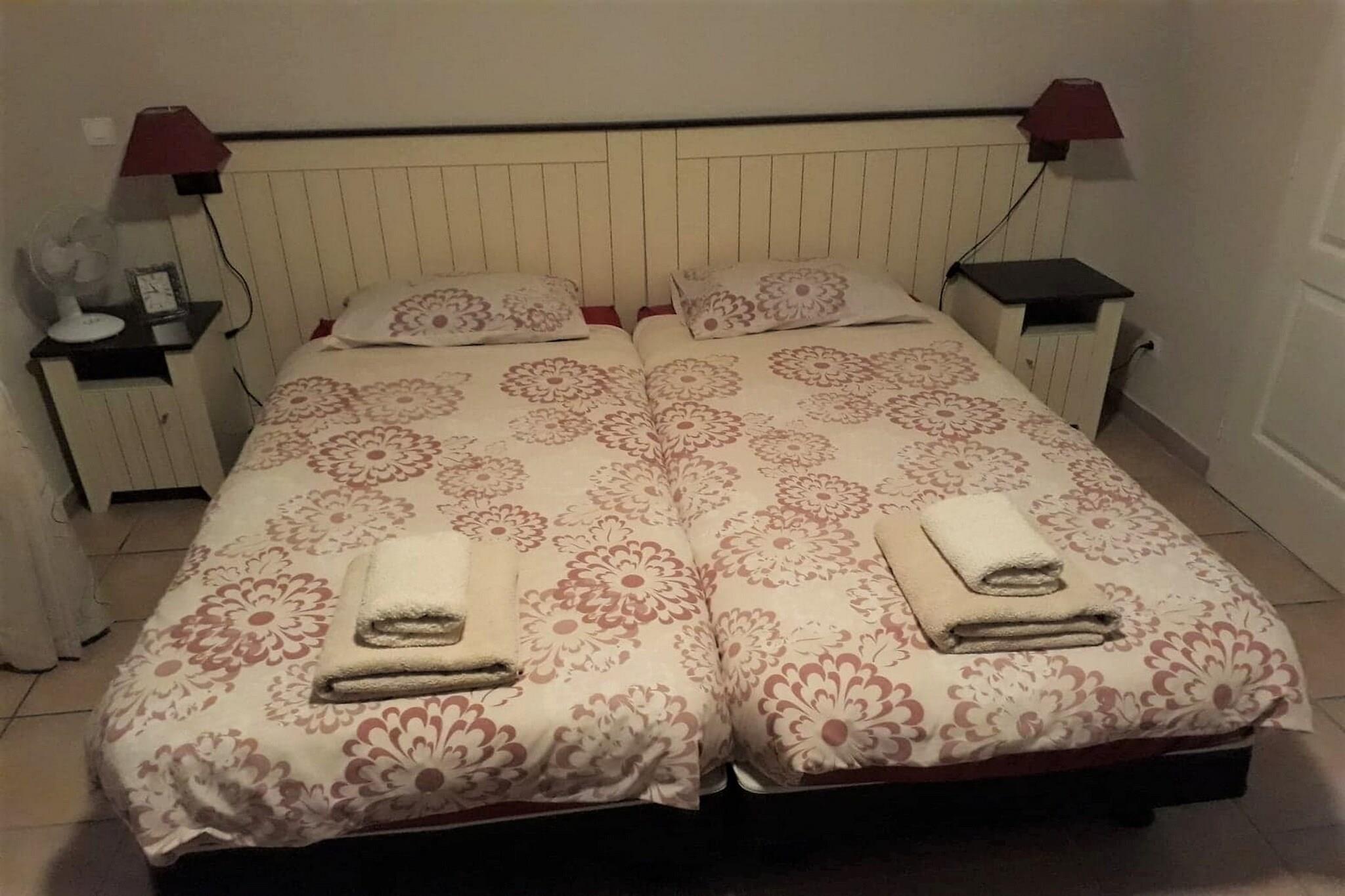 Stueetage: (Indgang , køkken-alrum(kogeplade, brødrister, kaffemaskine, ovn, combi-mikroovn, opvaskemaskine , køle-fryseskab), stue / spisestue(Fjernsyn(Hollandske TV-kanaler, Internationale TV-kanaler), spisebord, pejs, sofahjørne(6 personer), DVD-afspiller, radio), soveværelse(dobbeltseng eller 2 enkeltsenge Senge(90 x 200 cm)), Soveværelse med badeværelse(dobbeltseng eller 2 enkeltsenge Senge(90 x 200 cm), badekar med bruser, håndvask, toilet), badeværelse(bruser, håndvask, toilet), vaskerum (vaskemaskine)) mikrobølgeovn, balkon eller terrasse, balkon eller terrasse, have(privat, indhegnet), havemøbler(6 personer), solstole, grill, Parasol, swimmingpool(deles med andre gæster, opvarmet, indhegnet, vand alarm, inkl. separat børne swimmingpool (maks. dybde 50 cm), 20 x 9 m., opened from May upto and including Sep), petanquebane, bordfodbold, cykler til rådighed, barneseng, strygebræt