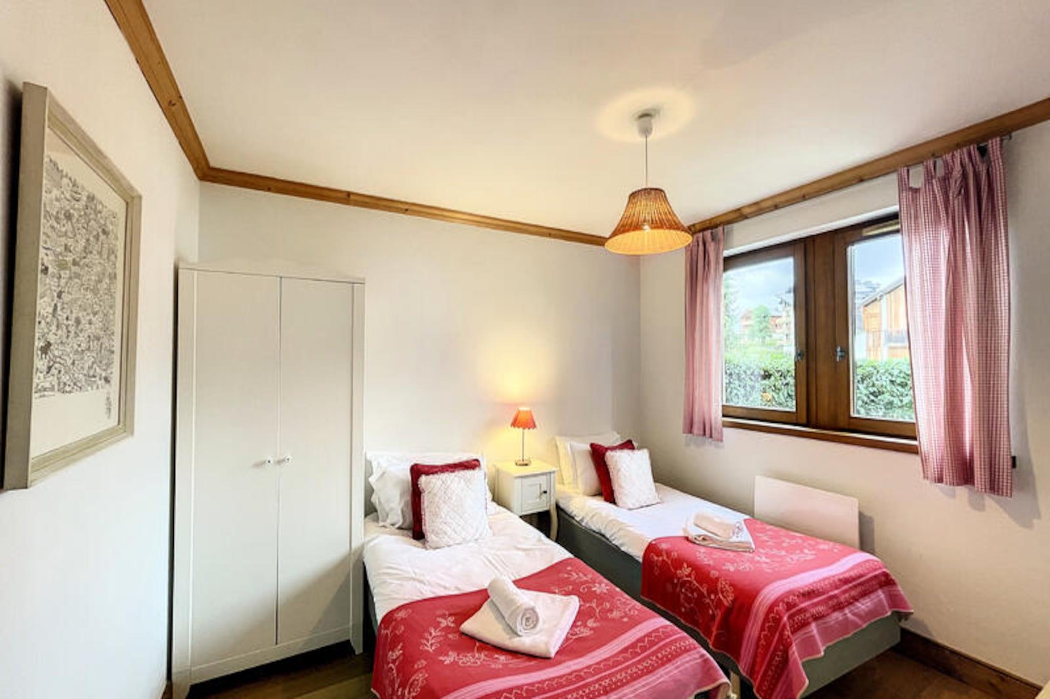 I hjertet af de fortryllende Les Gets-bjerge inviterer denne charmerende etplanslejlighed dig til at fordybe dig i de franske alpers fredfyldte skønhed. Omgivet af frodige landskaber og alpin charme er dette hyggelige tilflugtssted perfekt til at skabe uforglemmelige øjeblikke med dine kære. Forestil dig at vågne op til det bløde sollys, der strømmer ind gennem store vinduer og tilbyder malerisk udsigt over haven, der sætter tonen for en dag med eventyr eller afslapning. Lejligheden har komfortabel plads til op til seks gæster med tre indbydende soveværelser og to moderne badeværelser. Den lyse og luftige stue, kombineret med et fuldt udstyret åbent køkken, skaber et indbydende rum til at slappe af og dele måltider efter en dag med udforskning. Gå ud på den private terrasse for at indånde den friske bjergluft, uanset om du nipper til din morgenkaffe eller nyder en stille aften under stjernerne. Med direkte adgang til ski og Wi-Fi er hver eneste detalje omhyggeligt designet til din bekvemmelighed og komfort. Les Gets tilbyder et væld af aktiviteter til enhver sæson. Om vinteren er pisterne kun få øjeblikke væk og lover spændende dage med skiløb og snowboarding. I de varmere måneder snor vandre- og cykelstier sig gennem betagende landskaber, mens lokale markeder og restauranter fremviser regionens rige kulinariske arv. Uanset om du søger ro eller eventyr, er denne lejlighed din port til det bedste af Alperne. Book dit ophold nu, og oplev den perfekte blanding af komfort, natur og alpin charme. Lad denne dejlige ejendom være dit hjem væk fra hjemmet i hjertet af bjergene.