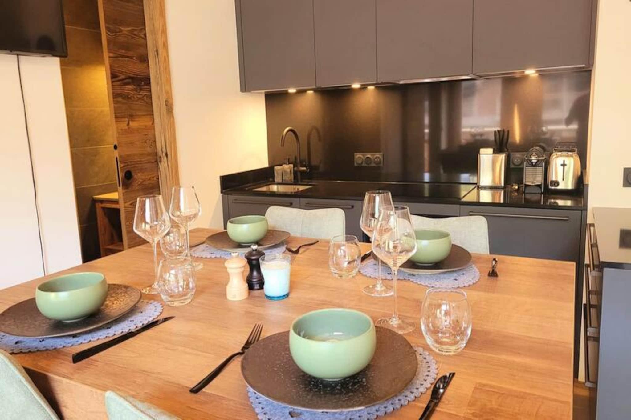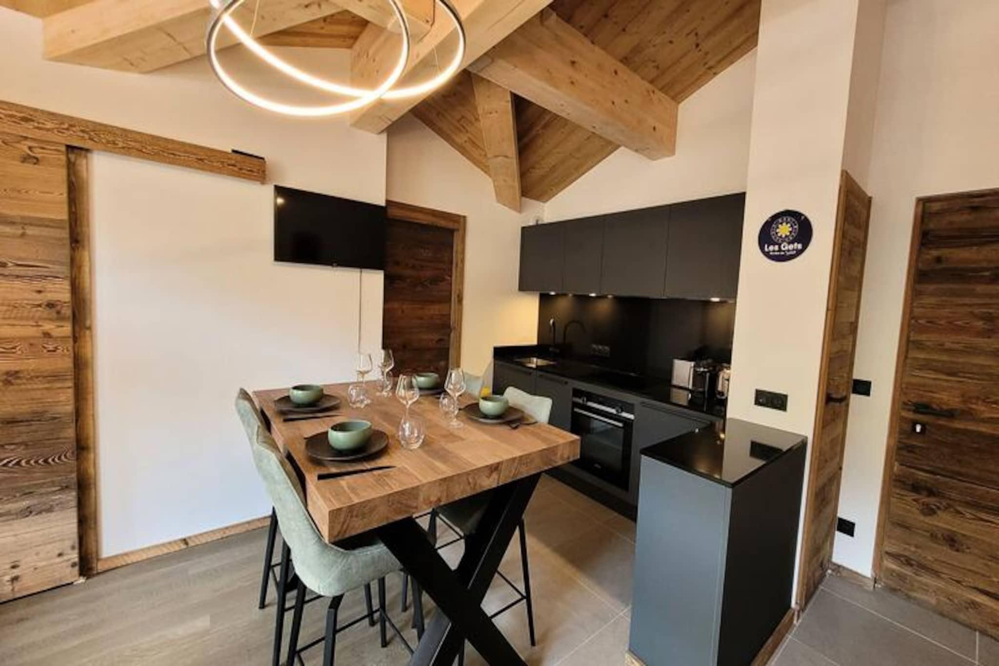 Højt over de charmerende gader i Le Grand-Bornand tilbyder denne lejlighed på øverste etage et hyggeligt tilflugtssted med betagende udsigt over det omkringliggende alpine landskab. Med sine varme træbjælker og stendetaljer udstråler boligen en indbydende bjergcharme, perfekt til par eller små grupper, der søger en rolig flugt. Uanset om du er her for at stå på ski på de uberørte pister eller udforske det pulserende landsbyliv, tilbyder denne ejendom den perfekte balance mellem komfort og bekvemmelighed. Forestil dig at nippe til kaffe på den private balkon, mens morgensolen oplyser bjergtoppene, eller slappe af efter en dag med eventyr i den moderne, men rustikke opholdsstue. \n\nLejligheden er designet til op til fire gæster og har en rummelig stue med et fuldt udstyret køkken, en komfortabel sovesofa og direkte adgang til balkonen. Soveværelset kan prale af en luksuriøs dobbeltseng med opbevaringsplads og en madras af høj kvalitet, der sikrer afslappende nætter. Badeværelset er omhyggeligt udstyret med en håndklædetørrer, bruseniche og elegant finish. Yderligere faciliteter inkluderer Wi-Fi, en Nespresso-kaffemaskine og et raclette-sæt til hyggelige aftener derhjemme. Boligen tilbyder også praktiske detaljer som et skirum, fælles cykelopbevaring og en privat parkeringsplads, hvilket gør den ideel til en bilfri ferie.\n\nBeliggende kun 350 meter fra de nærmeste skiløjper og den franske skiskole, og en kort 200 meter gåtur fra butikker og landsbyens centrum, er alt hvad du behøver inden for rækkevidde. Om vinteren kan du nyde skiløb og afterskiing i verdensklasse, mens sommeren forvandler området til et paradis for vandreture, cykling og udendørsfestivaler. Det nærliggende shuttle-stoppested sikrer ubesværet adgang til lokale attraktioner, og lægens kontor er bekvemt tæt på for ro i sindet.\n\nUanset om du jagter puddersne eller nyder den alpine ro, tilbyder denne bolig et uforglemmeligt ophold i hjertet af de franske alper. Lad charmen ved Le Grand-Bornand og komforten i denne gennemtænkte lejlighed inspirere din næste bjergferie.