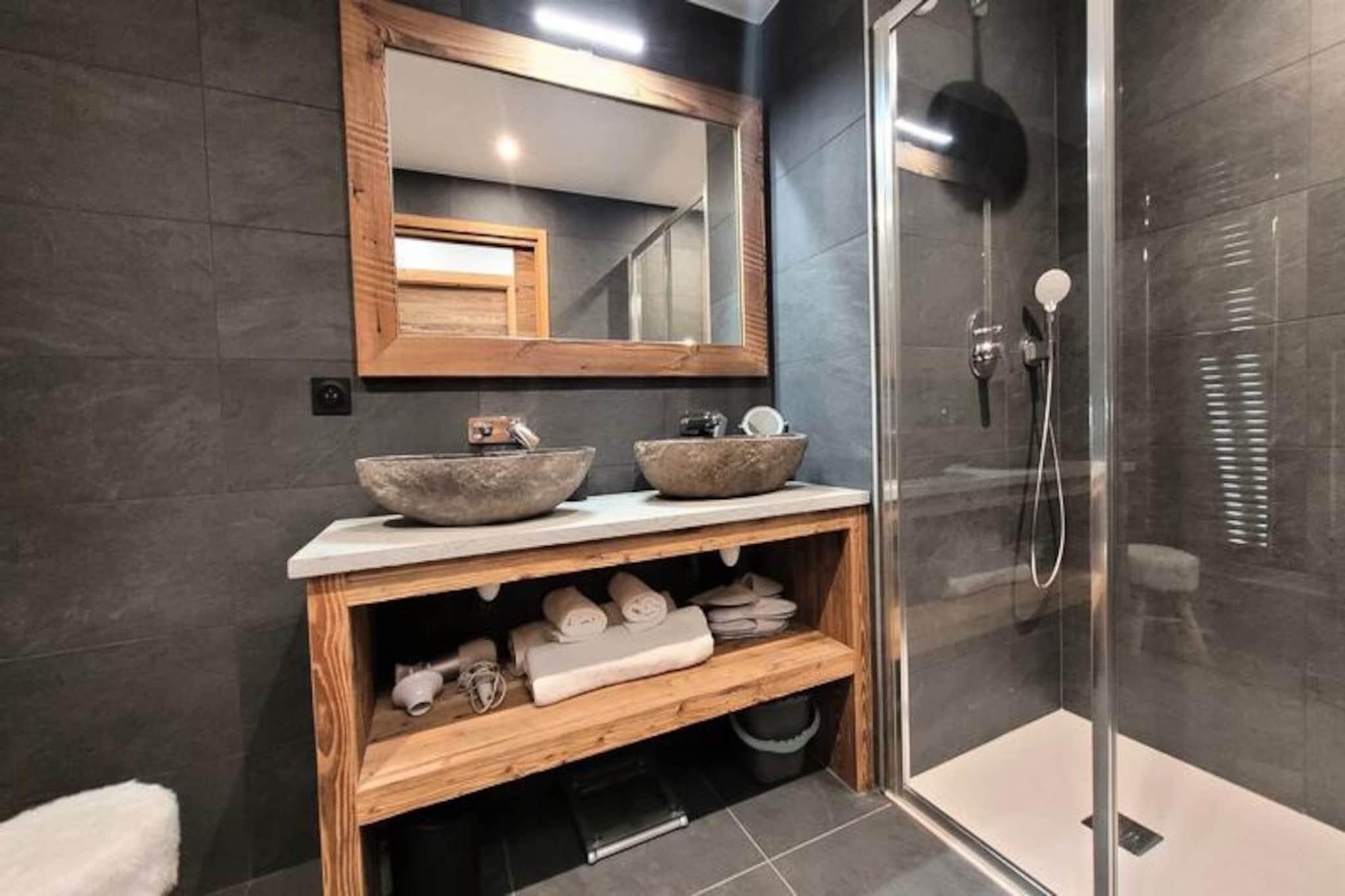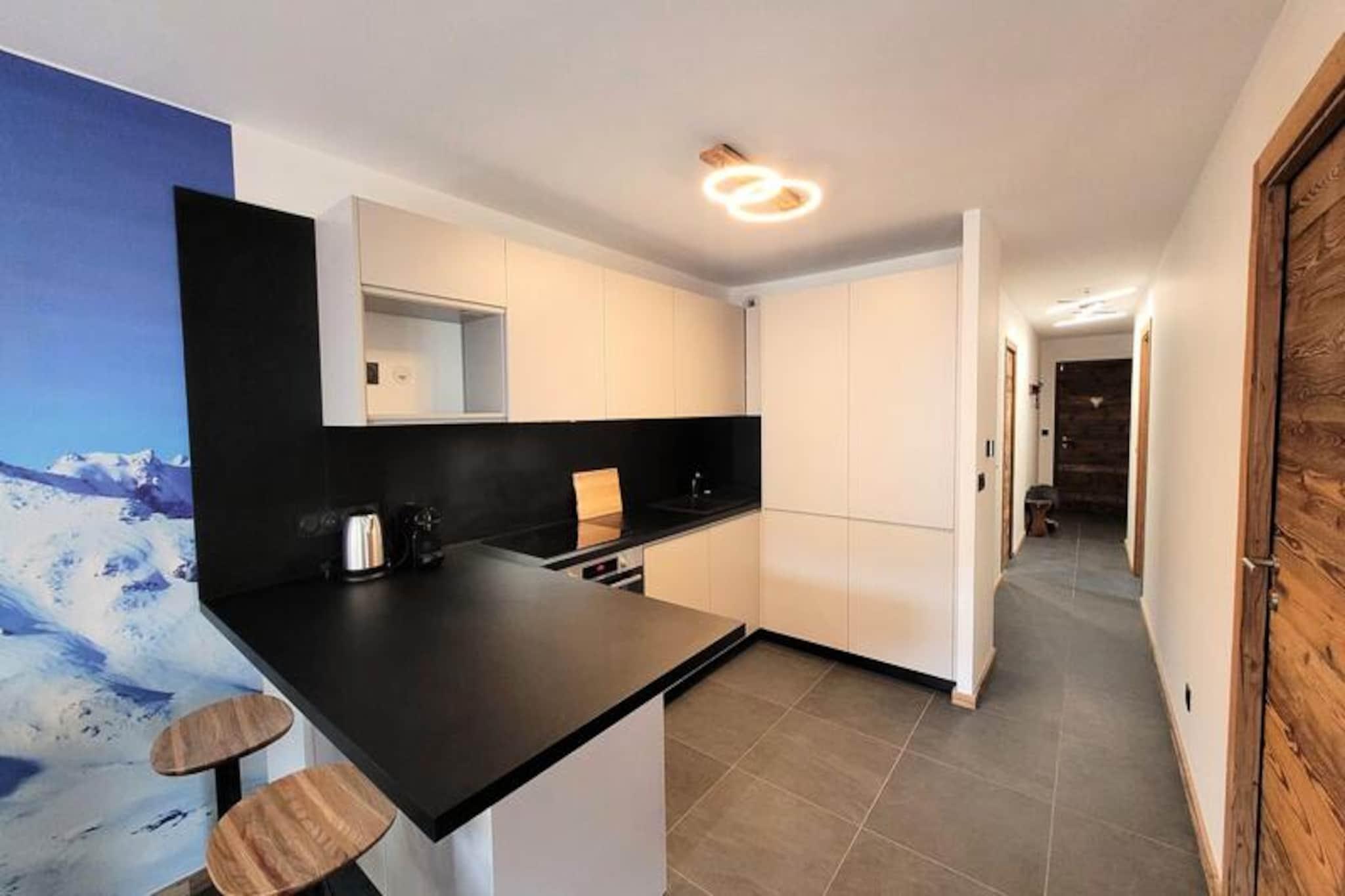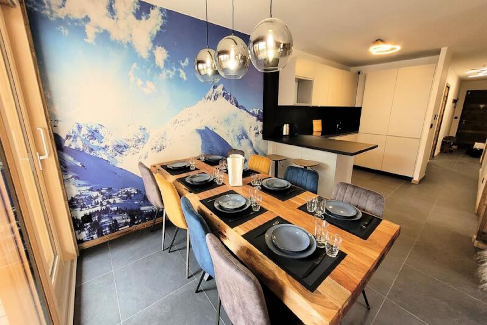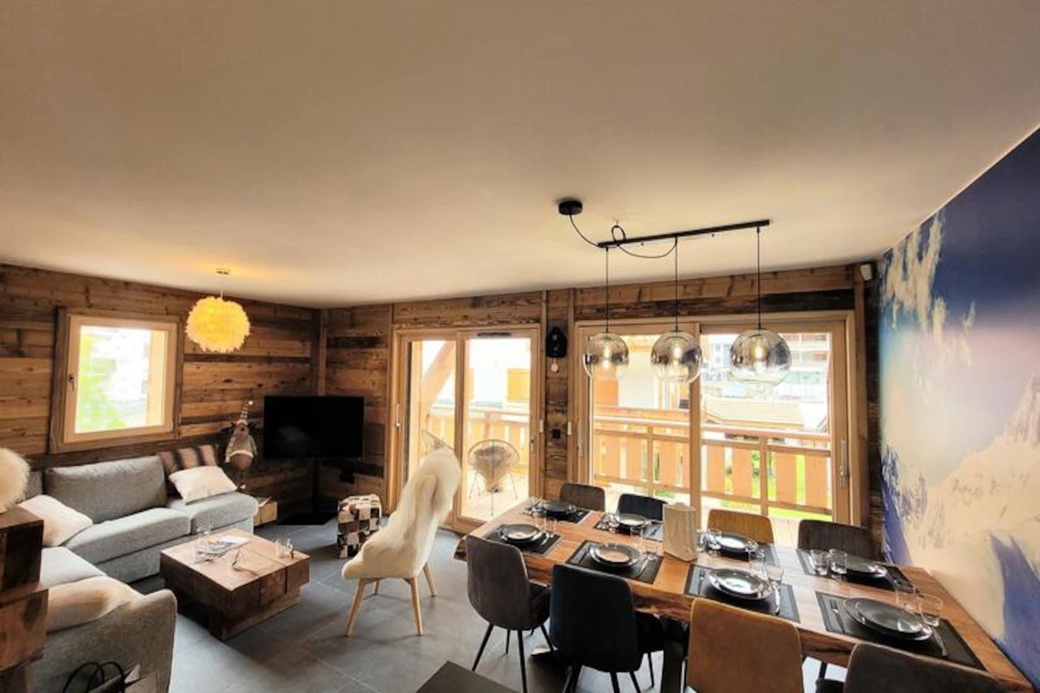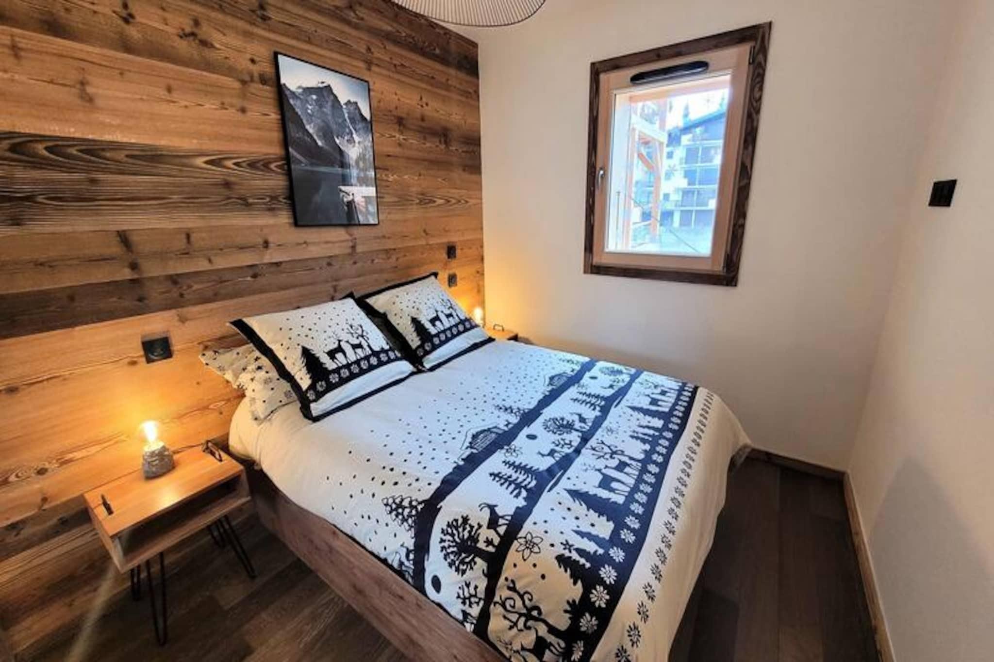Midt i den charmerende alpine landsbyatmosfære i Le Confidential tilbyder denne hyggelige, men elegante bolig en perfekt blanding af rustik varme og moderne komfort. Arkitekturen er fremstillet af træ og sten og harmonerer smukt med det omkringliggende bjerglandskab og inviterer dig til at fordybe dig i de franske alpers fredfyldte skønhed. Uanset om du planlægger en vinterferie eller et sommerophold, lover denne ejendom et uforglemmeligt ophold for både familier og venner. Lejligheden, der ligger på første sal i en 3-stjernet bolig, har plads til op til otte gæster med en gennemtænkt indretning designet til komfort og bekvemmelighed. Soveværelset med dobbeltseng og eget badeværelse har en blød 140 cm seng, mens et andet dobbeltværelse og et køjesengsværelse med fire enkeltsenge sikrer rigelig plads til alle. Opholdsstuen kan prale af et fuldt udstyret køkken, en hyggelig stue med sovesofa og tv samt en spiseplads, der åbner ud til en overdækket terrasse - perfekt til at nyde udsigten over bjergene med din morgenkaffe. Moderne bekvemmeligheder såsom Wi-Fi, en Nespresso-kaffemaskine og en raclettegrill bidrager til den hjemlige atmosfære. Beliggende kun 200 meter fra landsbyens centrum og butikker, og blot 350 meter fra skiløjperne og den franske skiskole (ESF), er beliggenheden ideel til både bekvemmelighed og eventyr. Der er et shuttle-stoppested kun 30 meter væk, hvilket gør det nemt at udforske området. Efter en dag på pisterne eller vandrestierne kan du slappe af med de inkluderede luksusservices: slutrengøring, sengetøj og håndklæder. Yderligere muligheder som leje af badekåber og morgenmadskurve er tilgængelige for at forbedre din oplevelse. Med sin førsteklasses beliggenhed, gennemtænkte faciliteter og varme alpine charme er denne bolig den perfekte base for at skabe dyrebare minder i hjertet af de franske alper. Uanset om du står på ski, vandrer eller bare slapper af, tilbyder Le Confidential et stykke bjergparadis.