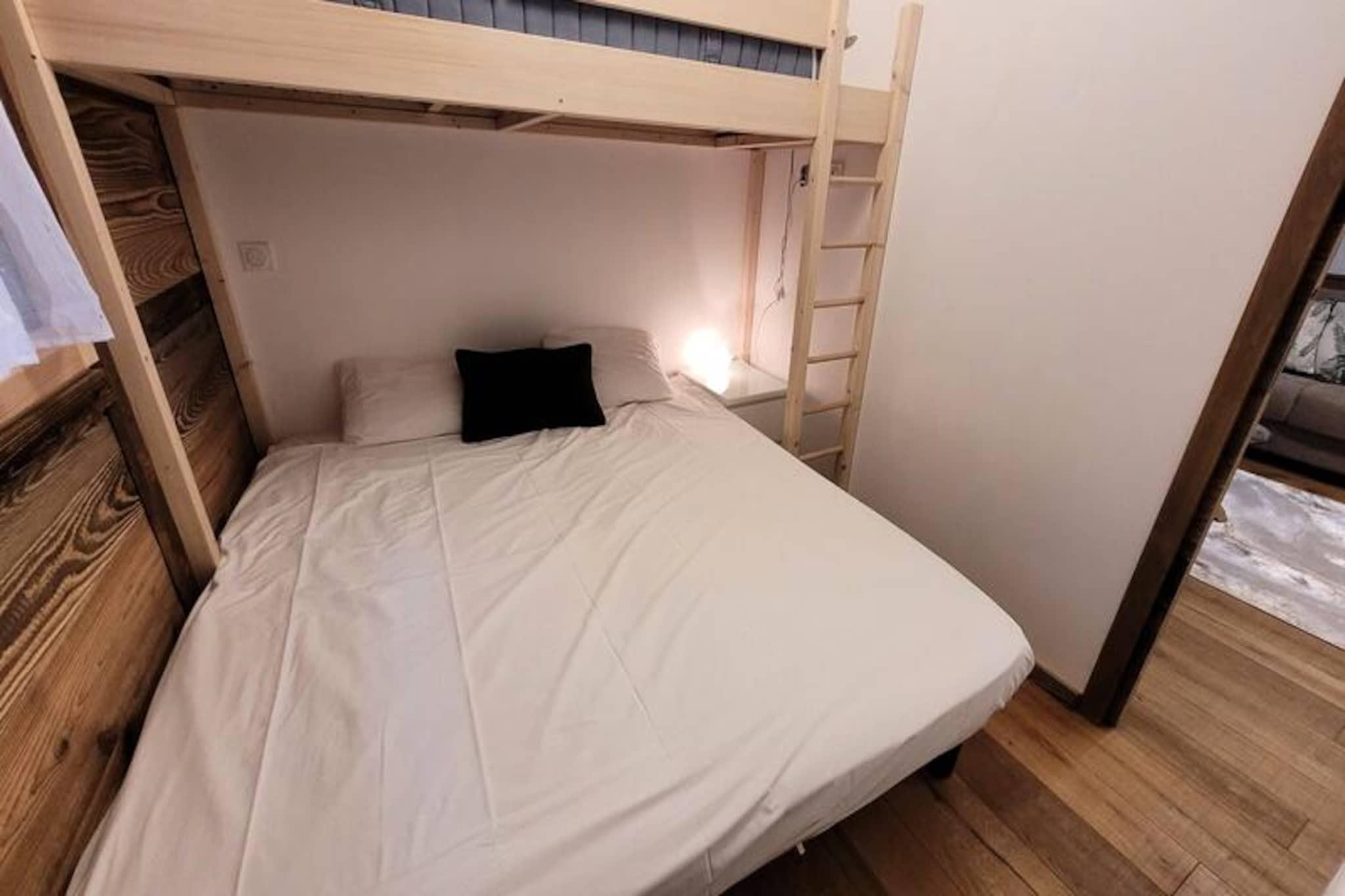 I hjertet af de charmerende franske alper tilbyder denne dejlige lejlighed en perfekt blanding af moderne komfort og alpin charme. Beliggende på første sal i en nybygget bolig med varm træ- og stenarkitektur, er den et indbydende tilflugtssted for dem, der søger både afslapning og eventyr. Med sin førsteklasses beliggenhed kun 200 meter fra landsbyens centrum og en kort gåtur til butikker, restauranter og skilifte, sikrer denne ejendom, at du altid er tæt på begivenhederne, mens du nyder en fredelig oase. \n\nTræd indenfor og oplev en hyggelig opholds- og spisestue med et fuldt udstyret køkken, en Rapido-sovesofa og adgang til en privat balkon, hvor du kan nyde den friske bjergluft. Soveværelset har to enkeltsenge, der kan sættes sammen til en dobbeltseng, samt rigelig opbevaringsplads. Et moderne badeværelse med håndklædetørrer og vaskemaskine bidrager til bekvemmeligheden og er et ideelt valg for par eller små familier. Yderligere faciliteter inkluderer Wi-Fi, privat parkering, et skiskab og fælles cykelopbevaring, hvilket sikrer et problemfrit ophold. \n\nUd over boligen venter det pulserende landsbyliv. Uanset om du begiver dig ud på pisterne blot 350 meter væk, tager skitimer på den nærliggende franske skiskole eller nyder et måltid på en lokal restaurant, er alt inden for rækkevidde. Om sommeren forvandles området til et paradis for vandrere og cyklister med betagende stier og fantastiske alpine udsigter. \n\nDenne lejlighed er mere end bare et sted at bo - det er en indgangsport til uforglemmelige bjergeventyr. Med slutrengøring, sengelinned og håndklæder inkluderet, skal du blot ankomme og slappe af. Oplev det bedste af alpinlivet i dette hyggelige, veludstyrede tilflugtssted.