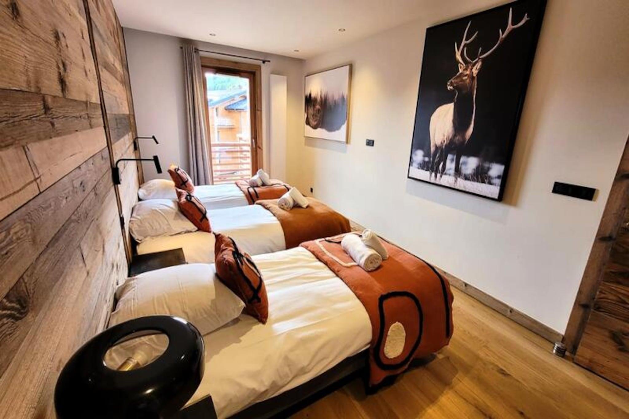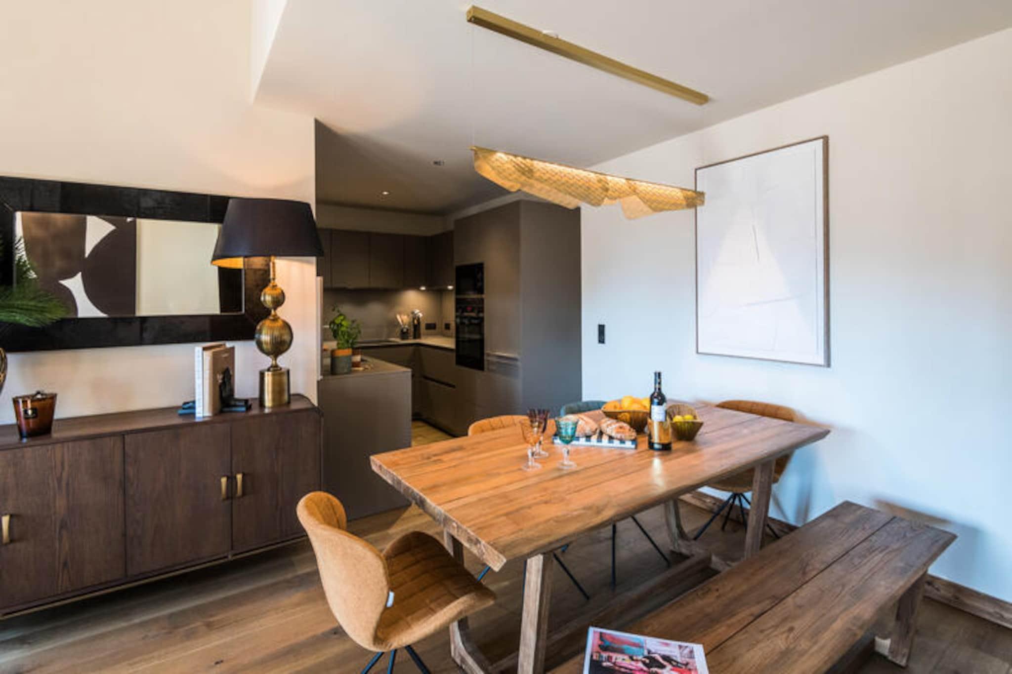 I hjertet af den charmerende alpelandsby tilbyder denne luksuriøse 4-stjernede lejlighed en blanding af elegance, komfort og bekvemmelighed. Beliggende på fjerde sal i en prestigefyldt ny bolig, kan den prale af en fantastisk udsigt over de omkringliggende bjerge og skråninger. De pulserende shoppingarkader i stueetagen og nærheden til vigtige faciliteter gør det til et perfekt tilflugtssted for familier og grupper, der søger en mindeværdig alpeferie. Træd indenfor og oplev et smukt designet rum på 103 m² med højt til loftet og en varm og indbydende atmosfære. Lejligheden har tre rummelige soveværelser, hver med eget badeværelse, hvilket sikrer privatliv og komfort for op til syv gæster. Den åbne stue med en hyggelig pejs flyder problemfrit over i et fuldt udstyret Bulthaup-køkken, hvilket gør det ideelt til fælles måltider og afslappede aftener. Den sydvestvendte terrasse på 16 m² inviterer dig til at nyde solen og beundre det betagende alpine landskab. Efter en dag på pisterne kan du slappe af i boligens eksklusive wellnessfaciliteter, herunder sauna, hammam og fitnesscenter. Chavannes-stoleliften ligger kun 250 meter væk og tilbyder nem adgang til skiløb i verdensklasse, mens ESF-skiskolen ligger en kort gåtur på 350 meter. Med butikker, restauranter og et shuttle-stoppested kun få skridt væk, er alt hvad du behøver lige ved hånden. Denne exceptionelle ejendom kombinerer det bedste af alpin luksus med uovertruffen bekvemmelighed, hvilket gør den til det perfekte valg til din næste bjergferie. Uanset om du er her for at stå på ski, vandre eller blot slappe af, lover denne lejlighed en uforglemmelig oplevelse.
