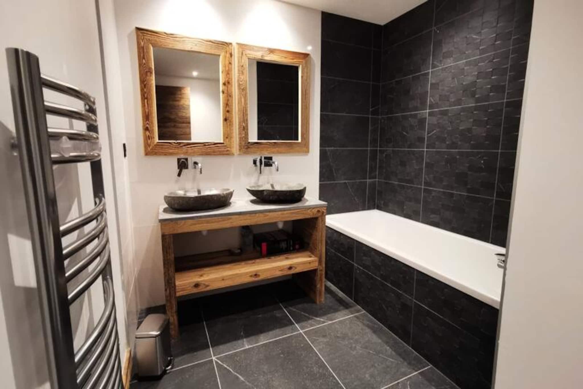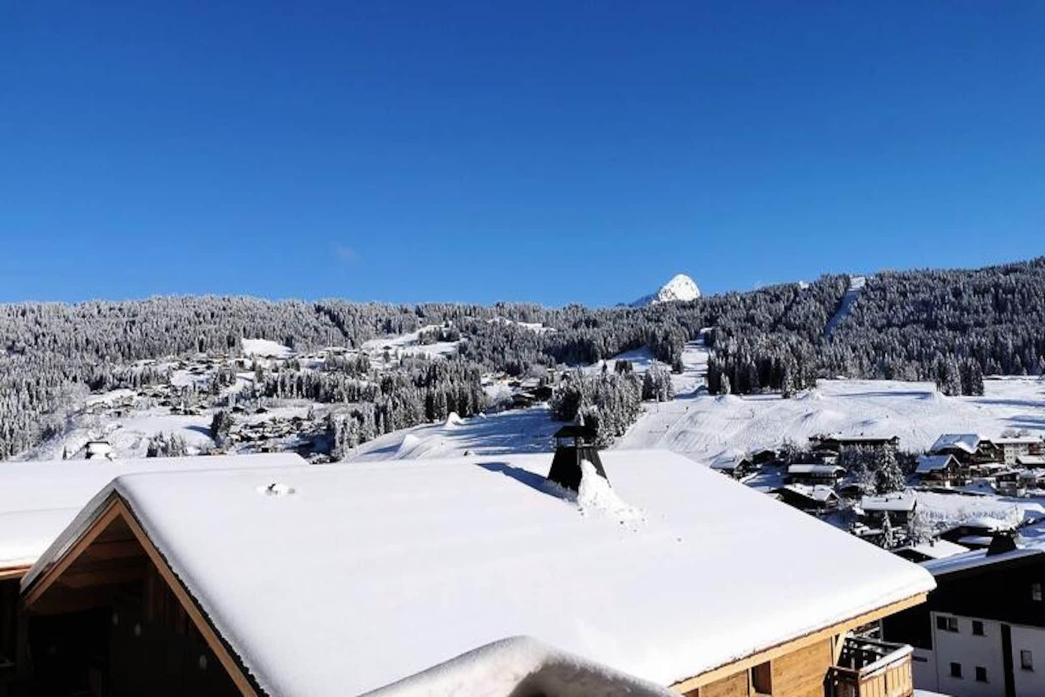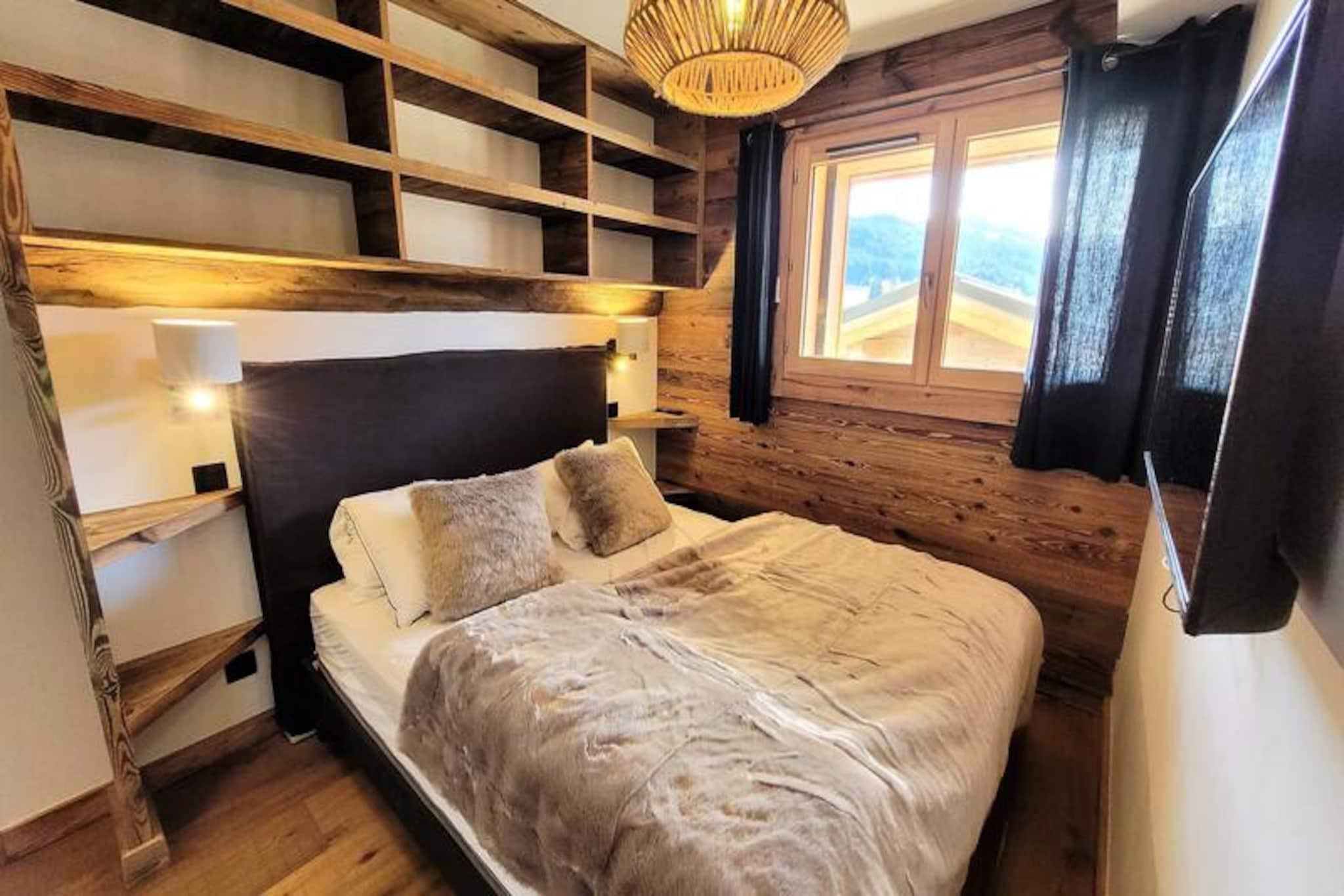 Højt over det charmerende feriested Les Gets tilbyder denne fantastiske duplexlejlighed et roligt tilflugtssted med betagende panoramaudsigt over Chavannes skiområde og de omkringliggende bjergtoppe. Badet i sollys takket være dens sydøstlige beliggenhed og store karnapvinduer inviterer ejendommen dig til at slappe af i rolige omgivelser, mens du stadig kun er en kort gåtur fra landsbyens centrum og essentielle faciliteter. Uanset om du søger et vintereventyrland eller en sommerferie, lover denne bolig en uforglemmelig alpin oplevelse. \n\nLejligheden er designet med omhyggelig sans for detaljer og kombinerer moderne komfort med traditionel alpin charme. Den strækker sig over to etager og har plads til op til otte gæster i hyggelige, men rummelige omgivelser. Den øverste etage har en lys opholdsstue, der åbner ud til en solbeskinnet terrasse, perfekt til morgenkaffe eller aftenafslapning. Det fuldt udstyrede køkken inkluderer high-end apparater såsom en vinkælder, induktionskogeplade og Nespresso-maskine, hvilket sikrer bekvemmelighed og luksus. På den nederste etage tilbyder to dobbeltværelser med eget badeværelse og en sovesal i hyttestil fleksible sovearrangementer, mens gulvvarme og gennemtænkte faciliteter som en raclettegrill og vaskemaskine/tørretumbler forbedrer dit ophold. \n\nEjendommen ligger kun 450 meter fra landsbyens centrum og 650 meter fra skiløjperne og tilbyder nem adgang til Les Gets' livlige butikker, restauranter og aktiviteter. Det nærliggende shuttle-stoppested sikrer problemfri forbindelser til pisterne og videre, mens ESF-skiskolen og den lokale læge ligger inden for gåafstand. Om sommeren kan du udforske naturskønne vandrestier, mountainbikeruter og de frodige alpine landskaber, der gør denne region til et paradis for friluftsentusiaster. \n\nMed sin blanding af komfort, stil og uovertruffen beliggenhed er denne duplexlejlighed det perfekte valg for familier og grupper, der søger en luksuriøs, men autentisk bjergferie. Lad Alpernes skønhed inspirere dit næste eventyr i Les Gets.