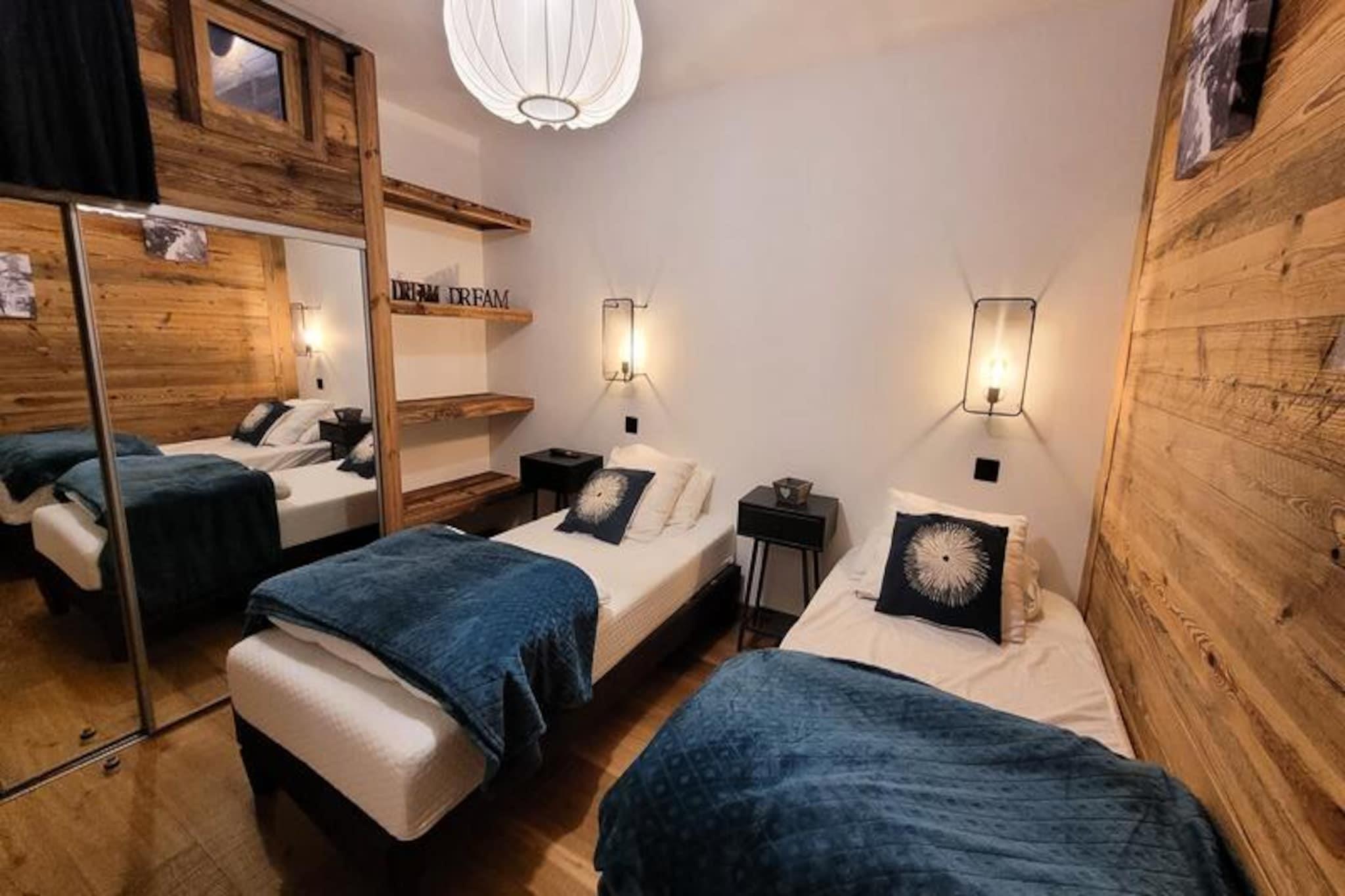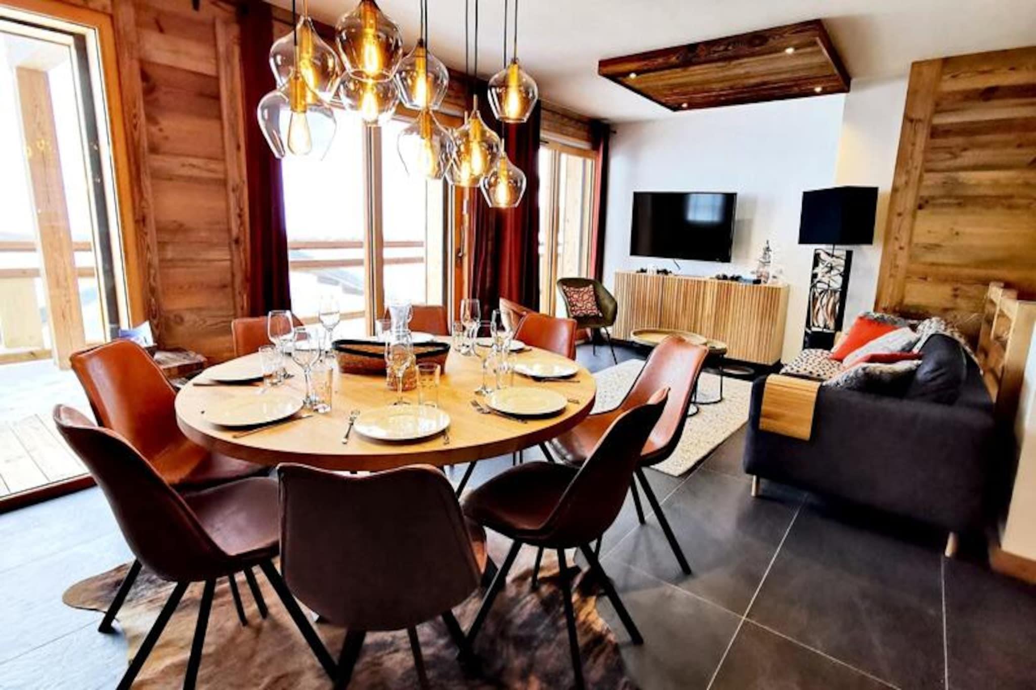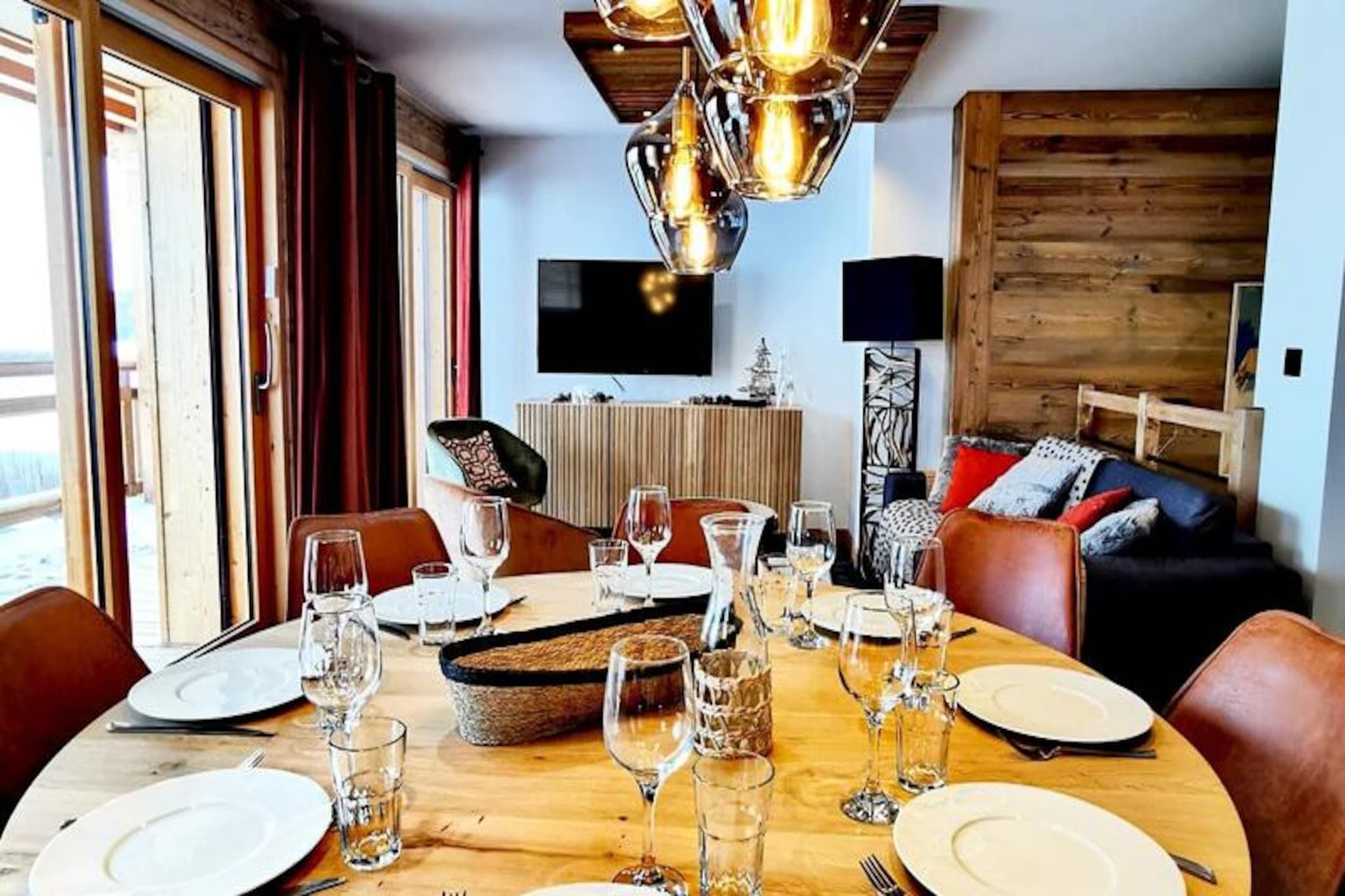 Højt over det charmerende feriested Les Gets tilbyder denne fantastiske duplexlejlighed et roligt tilflugtssted med betagende panoramaudsigt over Chavannes skiområde og de omkringliggende bjergtoppe. Badet i sollys takket være dens sydøstlige beliggenhed og store karnapvinduer inviterer ejendommen dig til at slappe af i rolige omgivelser, mens du stadig kun er en kort gåtur fra landsbyens centrum og essentielle faciliteter. Uanset om du søger et vintereventyrland eller en sommerferie, lover denne bolig en uforglemmelig alpin oplevelse. \n\nLejligheden er designet med omhyggelig sans for detaljer og kombinerer moderne komfort med traditionel alpin charme. Den strækker sig over to etager og har plads til op til otte gæster i hyggelige, men rummelige omgivelser. Den øverste etage har en lys opholdsstue, der åbner ud til en solbeskinnet terrasse, perfekt til morgenkaffe eller aftenafslapning. Det fuldt udstyrede køkken inkluderer high-end apparater såsom en vinkælder, induktionskogeplade og Nespresso-maskine, hvilket sikrer bekvemmelighed og luksus. På den nederste etage tilbyder to dobbeltværelser med eget badeværelse og en sovesal i hyttestil fleksible sovearrangementer, mens gulvvarme og gennemtænkte faciliteter som en raclettegrill og vaskemaskine/tørretumbler forbedrer dit ophold. \n\nEjendommen ligger kun 450 meter fra landsbyens centrum og 650 meter fra skiløjperne og tilbyder nem adgang til Les Gets' livlige butikker, restauranter og aktiviteter. Det nærliggende shuttle-stoppested sikrer problemfri forbindelser til pisterne og videre, mens ESF-skiskolen og den lokale læge ligger inden for gåafstand. Om sommeren kan du udforske naturskønne vandrestier, mountainbikeruter og de frodige alpine landskaber, der gør denne region til et paradis for friluftsentusiaster. \n\nMed sin blanding af komfort, stil og uovertruffen beliggenhed er denne duplexlejlighed det perfekte valg for familier og grupper, der søger en luksuriøs, men autentisk bjergferie. Lad Alpernes skønhed inspirere dit næste eventyr i Les Gets.