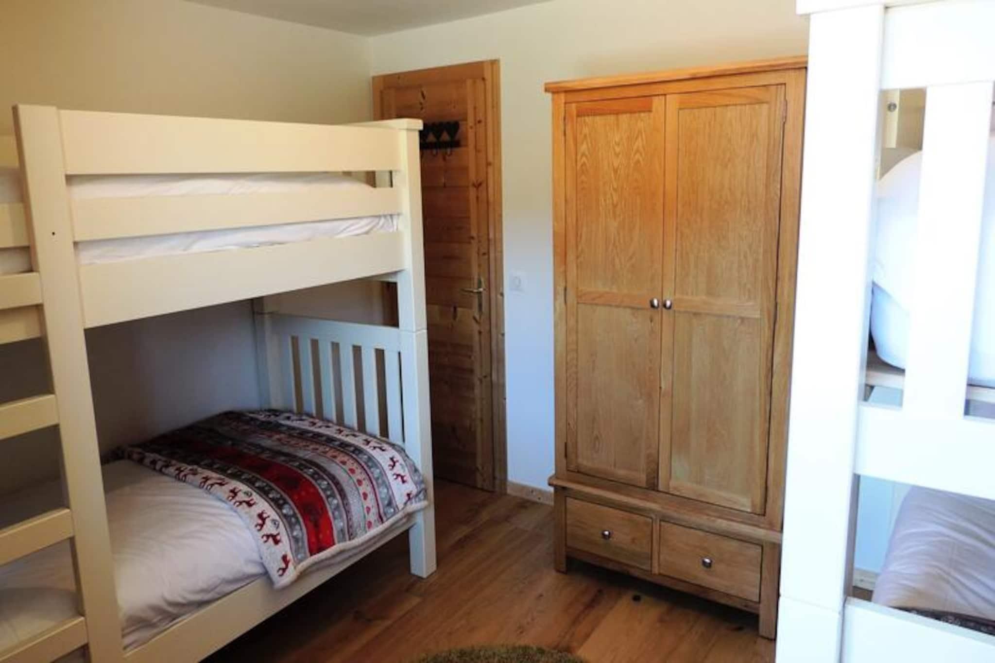 I de franske alpers fredfyldte omfavnelse tilbyder denne udsøgte hytte et luksuriøst tilflugtssted kun 1 km fra den charmerende landsbymidte. Omgivet af betagende udsigt over bjergene og beliggende i en rolig beliggenhed, er det det perfekte paradis for dem, der søger både eventyr og ro. Med sin sydøstlige beliggenhed er hytten badet i naturligt lys og tilbyder glimt af skiområdet og det majestætiske alpine landskab. Træd indenfor i denne smukt designede lejlighed på 91,30 m², omhyggeligt møbleret for at blande alpin charme med moderne komfort. Den rummelige stue, udstyret med et tv og Sonos-højttaler, åbner ud til en spiseplads og en terrasse gennem store karnapvinduer, der inviterer dig til at nyde den friske bjergluft. Det fuldt udstyrede køkken, komplet med opvaskemaskine, ovn og kapselkaffemaskine, sikrer ubesværet madlavning. Hytten har plads til op til 8 gæster og har tre hyggelige soveværelser, herunder et køjesengsværelse til fire, et dobbeltværelse med sovesofaer og et soveværelse med en dobbeltseng. To badeværelser, det ene med badekar og det andet med bruser, giver ekstra bekvemmelighed, mens faciliteter som vaskemaskine/tørretumbler og elektrisk skopvask forbedrer dit ophold. Beliggende kun 550 meter fra Les Perrieres-skiløjperne og 400 meter fra den nærmeste shuttlebus, tilbyder denne hytte uovertruffen adgang til vintersport. Den franske skiskole (ESF) ligger kun 1 km væk, hvilket gør den til et ideelt valg for familier og begyndere. I landsbyen finder du butikker, restauranter og essentielle tjenester som en lægeklinik, alt sammen inden for kort afstand. Uanset om du er her for at sno dig gennem uberørte pister, udforske alpine stier eller blot slappe af i fredelige omgivelser, lover denne hytte en uforglemmelig oplevelse. Med slutrengøring, sengetøj og håndklæder inkluderet, skal du blot ankomme og fordybe dig i bjergenes magi.