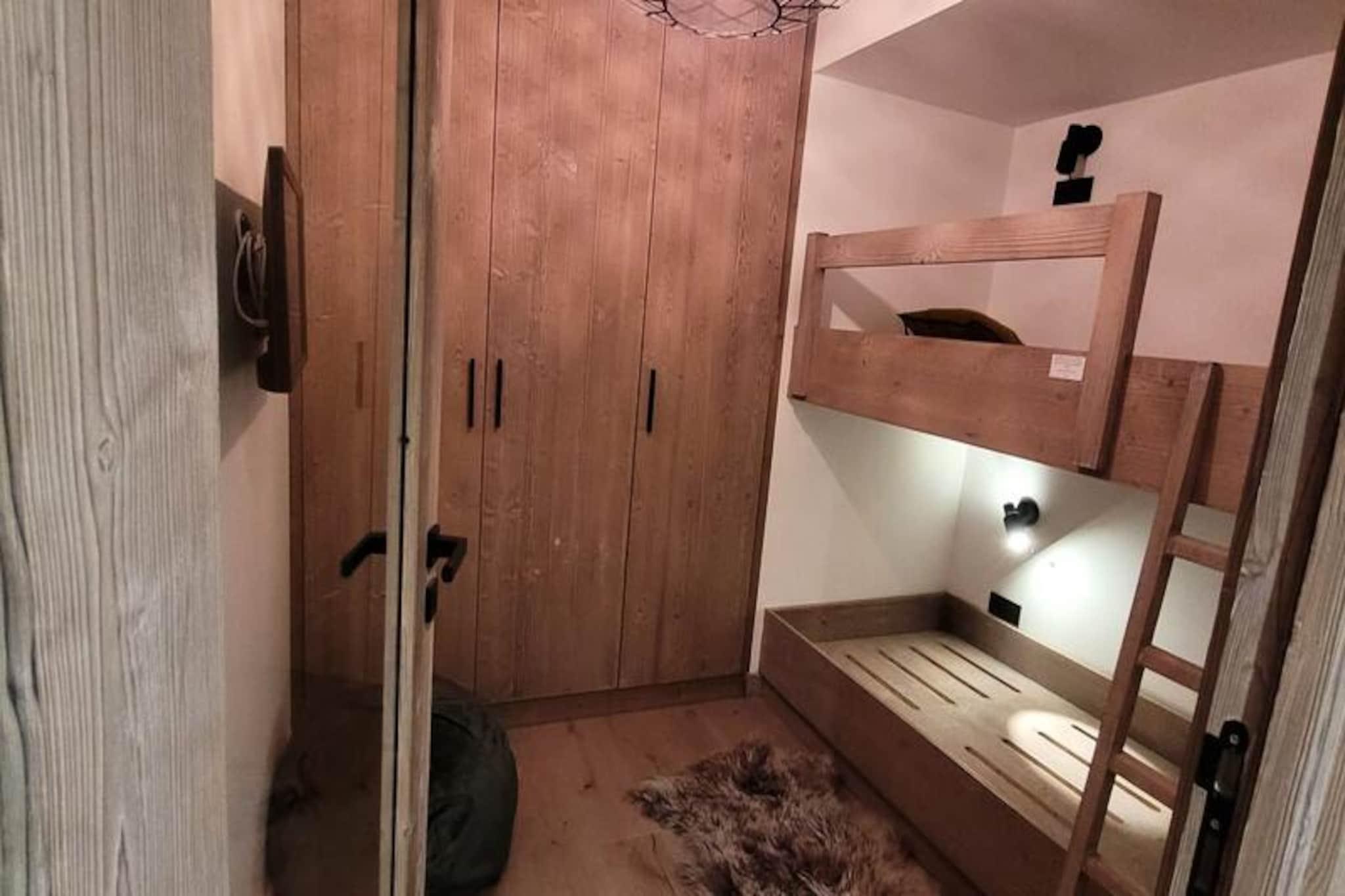 I hjertet af den charmerende landsby Les Gets tilbyder denne raffinerede lejlighed en perfekt blanding af moderne komfort og alpin charme. Med sin centrale beliggenhed befinder du dig kun få skridt fra de pulserende butikker, hyggelige restauranter og de spændende skiløjper, hvilket gør den til et ideelt tilflugtssted for familier eller grupper, der søger komfort og stil. Uanset om du er her for vintereventyr eller sommerferier, tilbyder denne bolig en indbydende oase omgivet af de franske alpers skønhed. \n\nLejligheden er omhyggeligt designet til at rumme op til seks gæster og har en rummelig stue, der åbner ud til et fuldt udstyret køkken og spiseplads. To elegante dobbeltværelser, det ene med eget badeværelse, sikrer afslappende nætter, mens en hyggelig hytte med køjesenge tilføjer et legende præg til yngre rejsende. Moderne faciliteter såsom Wi-Fi, flere tv'er, vaskemaskine, tørretumbler og et raclette-sæt til traditionel alpin mad forbedrer dit ophold. Den nordøstvendte terrasse inviterer dig til at slappe af og nyde den friske bjergluft. \n\nLes Gets er kendt for sin charme året rundt. Om vinteren kan du nyde direkte adgang til skiløjperne blot 100 meter væk, eller tage skitimer på den nærliggende franske skiskole. Om sommeren kan du udforske naturskønne vandrestier, mountainbikeruter og den pulserende landsbyatmosfære. De nærliggende butikker, en lægeklinik og shuttle-service sikrer et stressfrit ophold. \n\nMed sin blanding af praktisk anvendelighed, komfort og stil er denne lejlighed mere end bare et sted at bo - det er din port til uforglemmelige alpine minder.